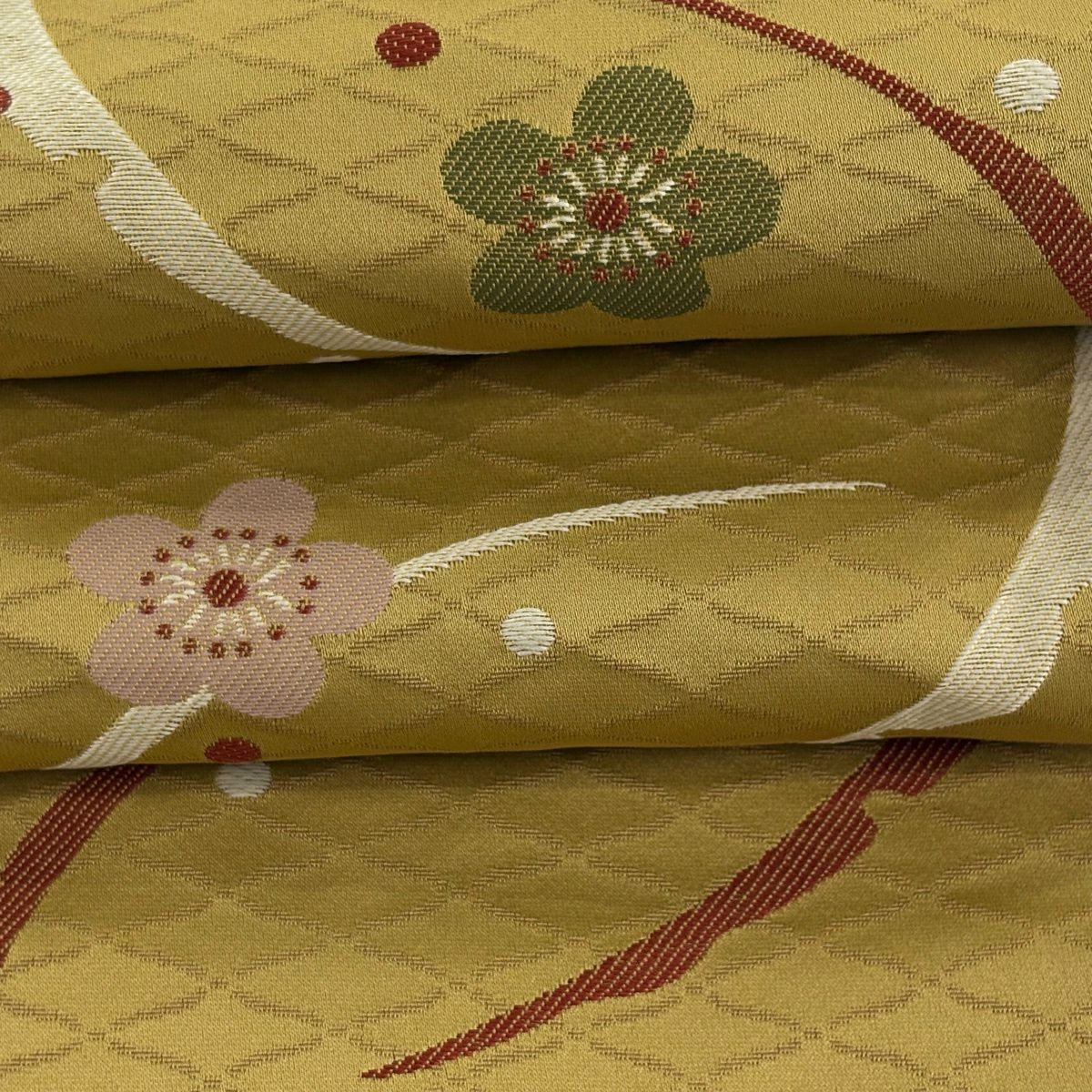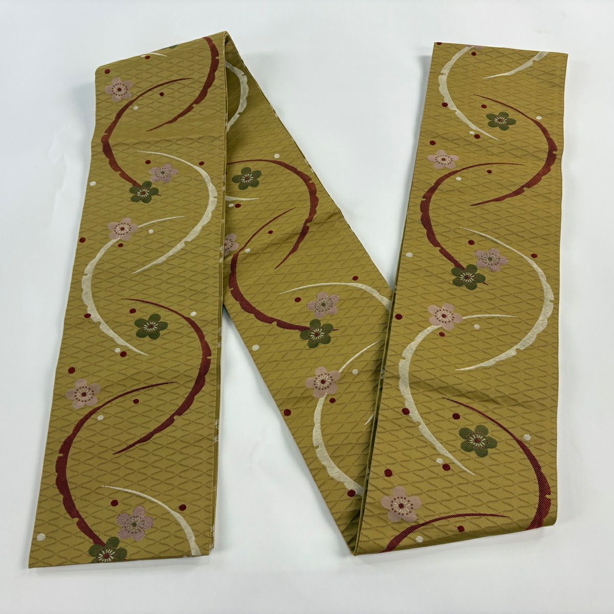 名古屋帯 優品 枝花 金彩 薄黄 正絹