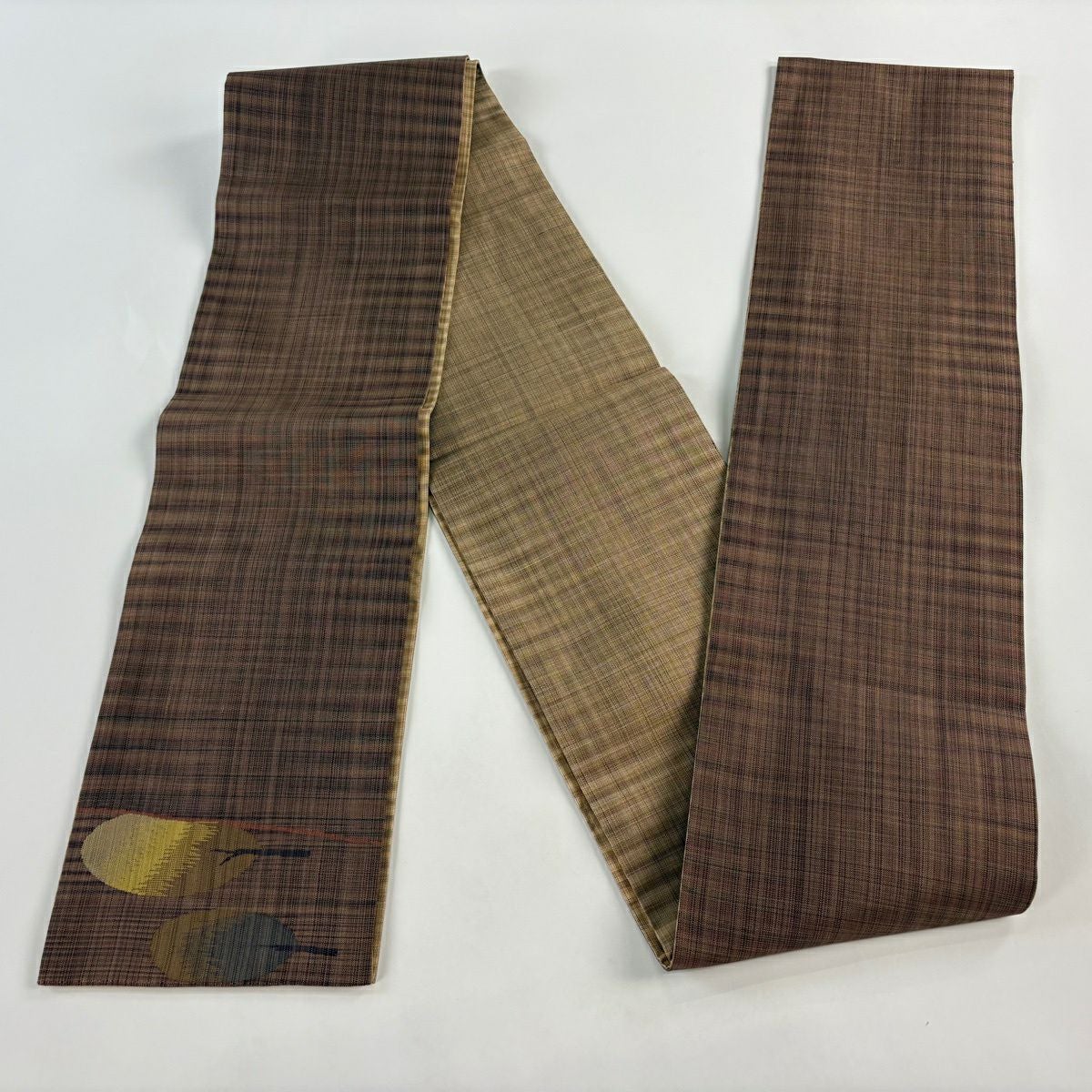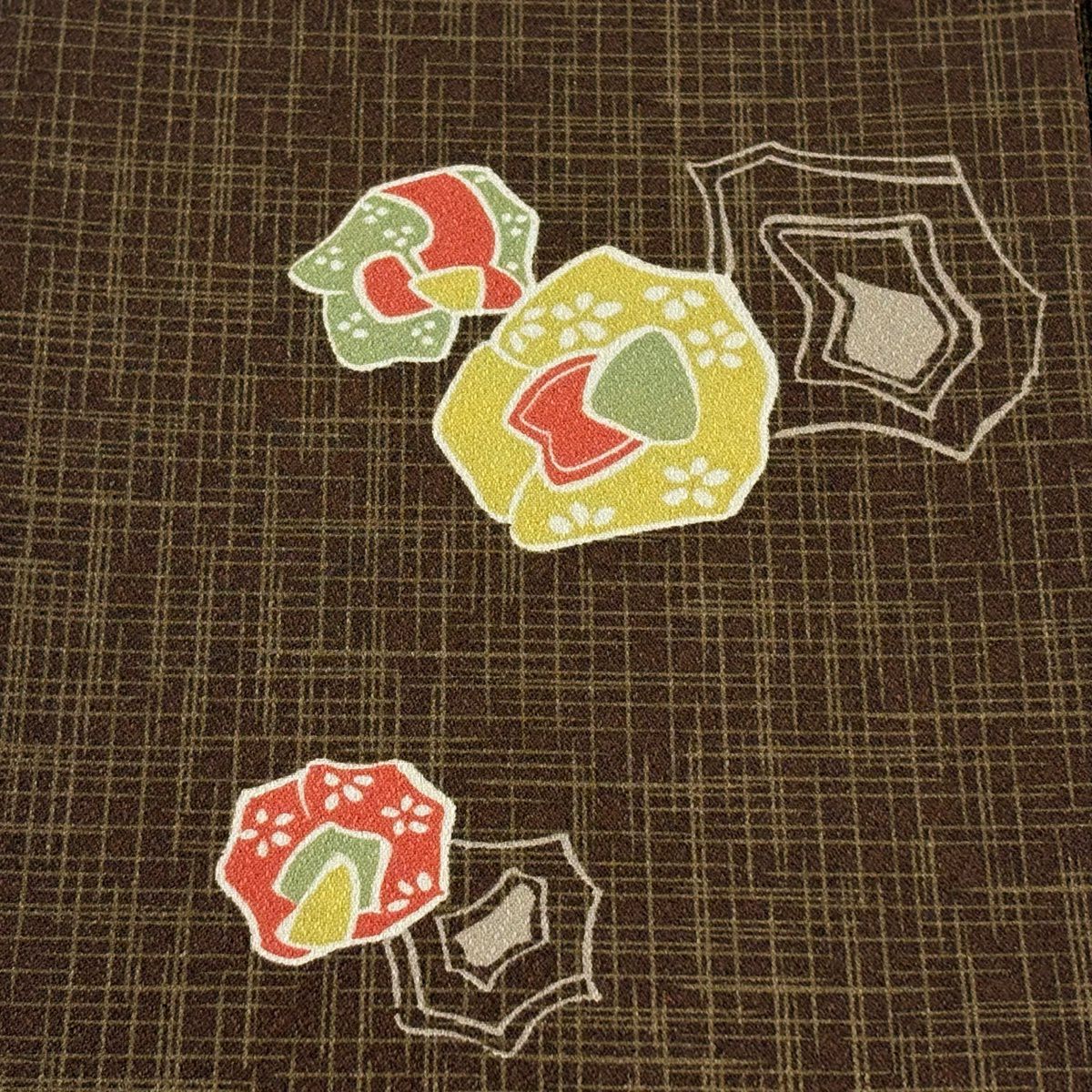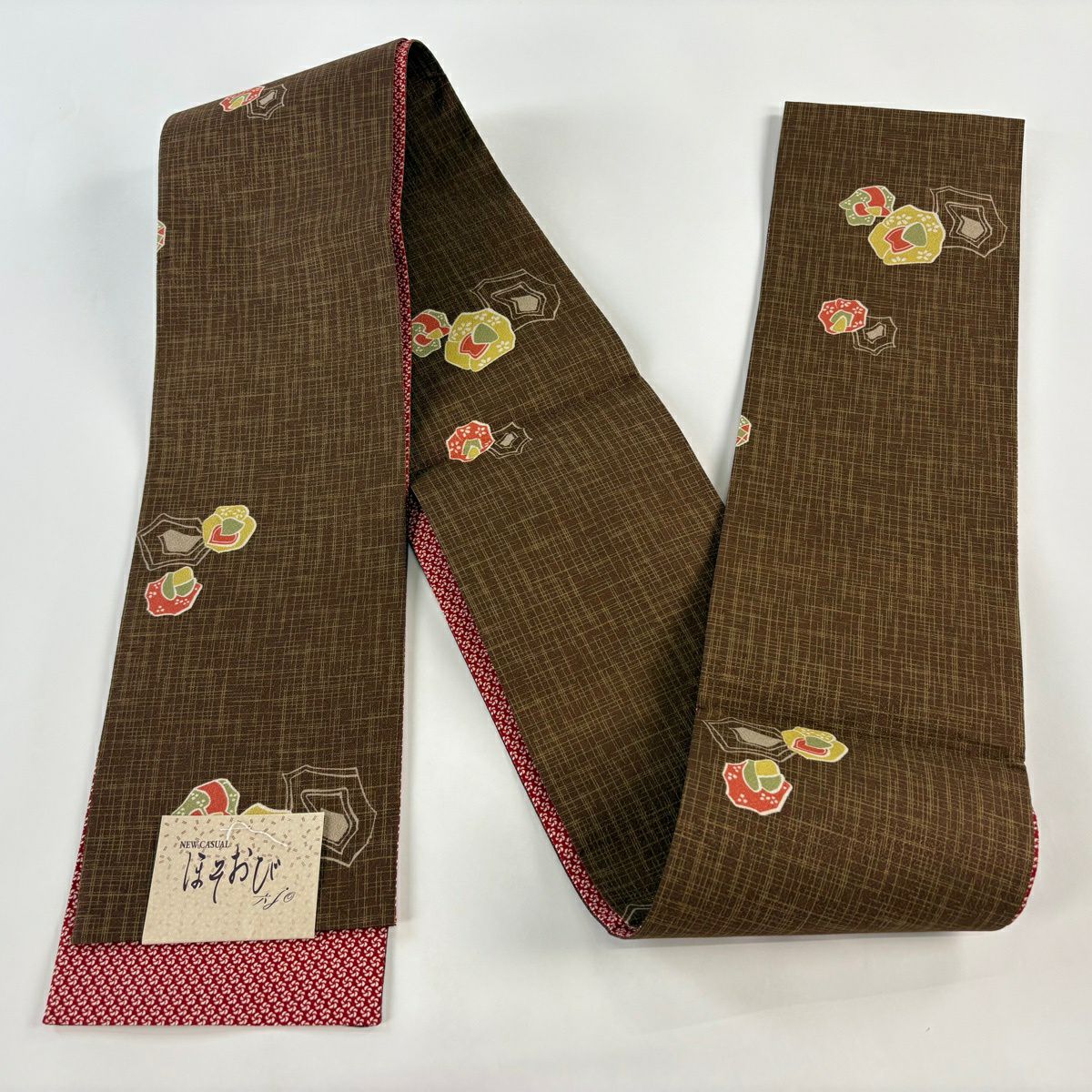 【美品】半幅帯 優品 花柄 茶色 化繊