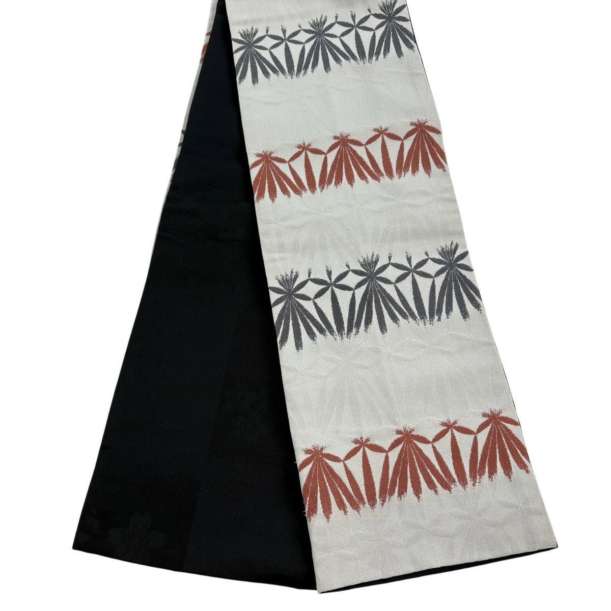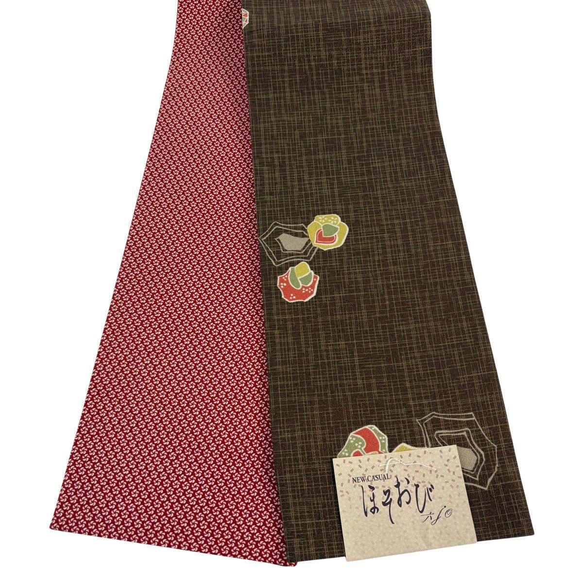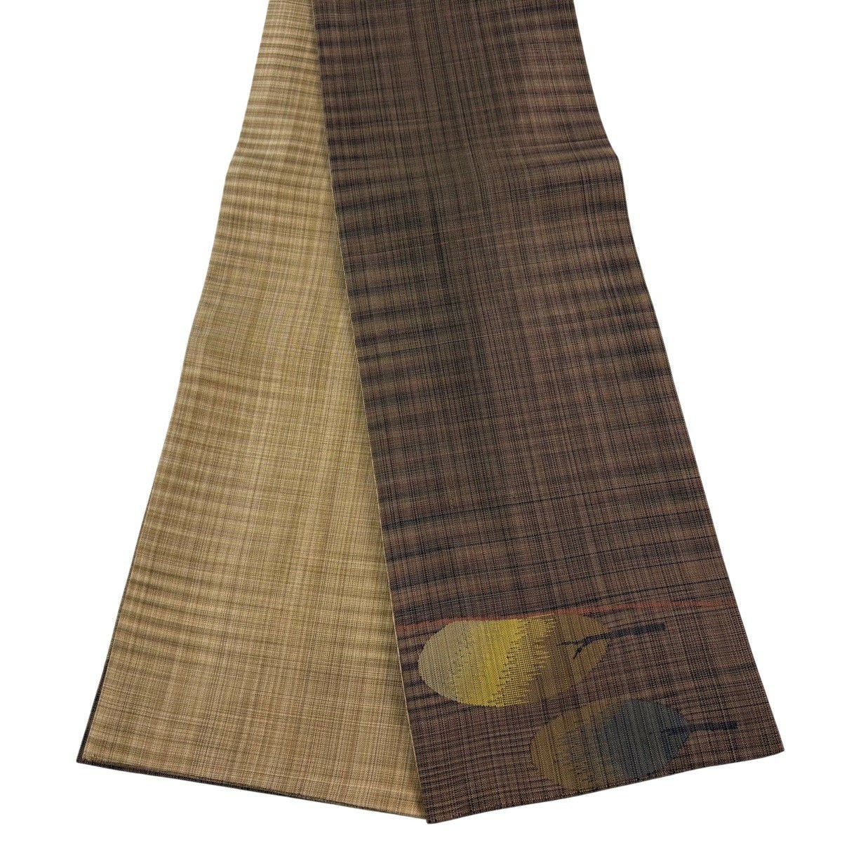 【美品】半幅帯 優品 花柄 茶色 化繊