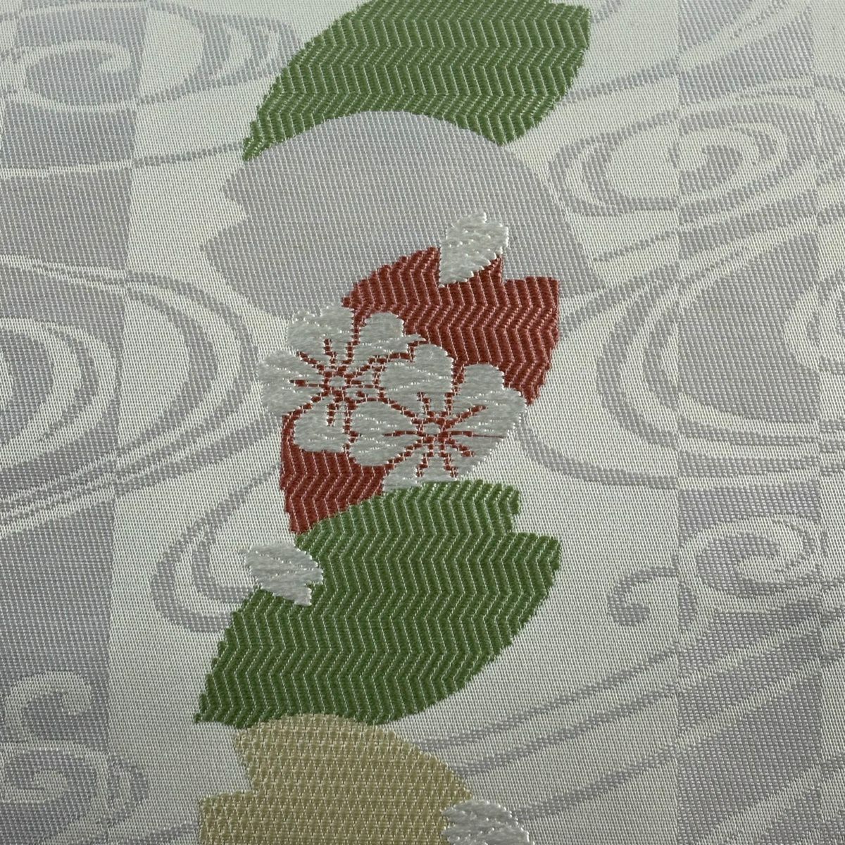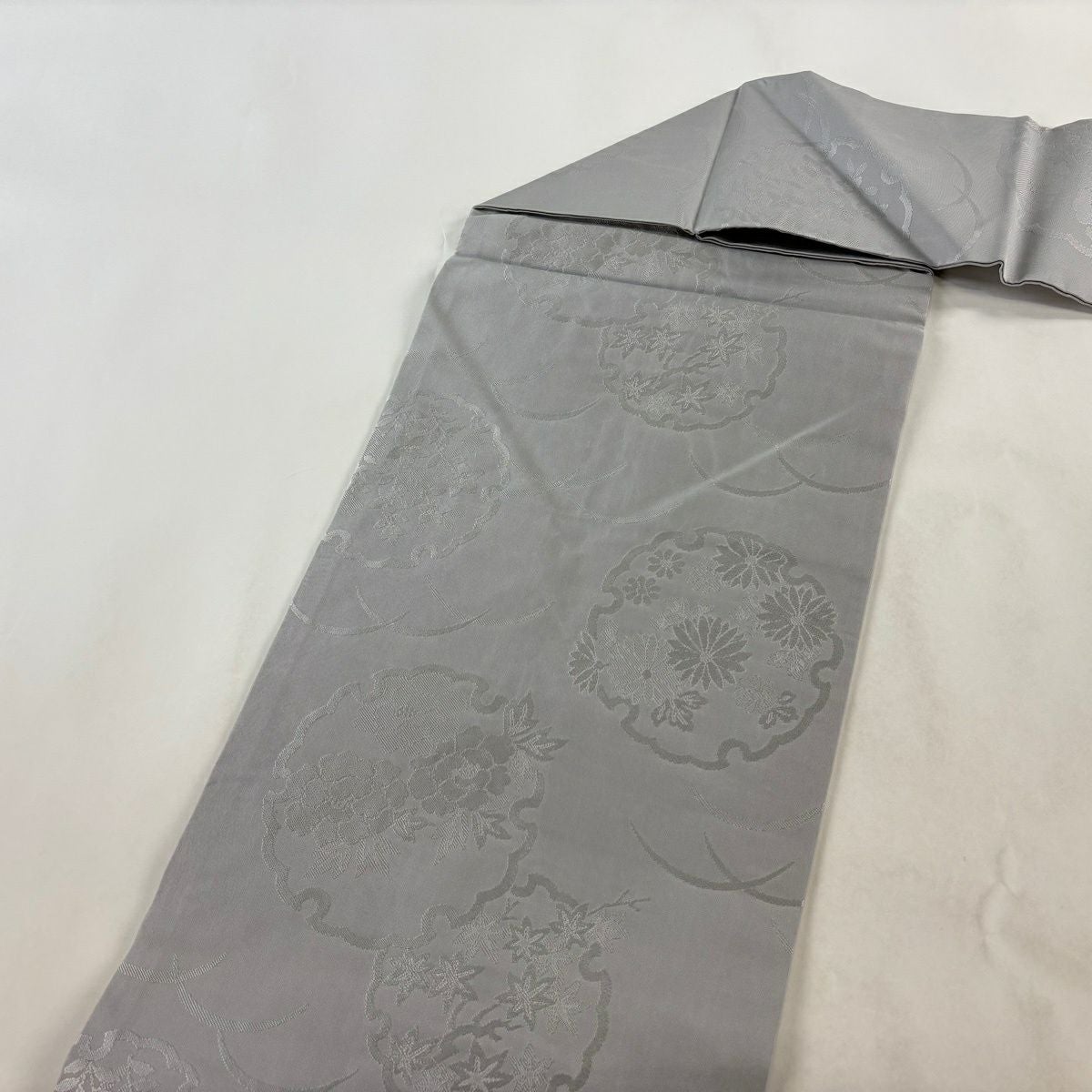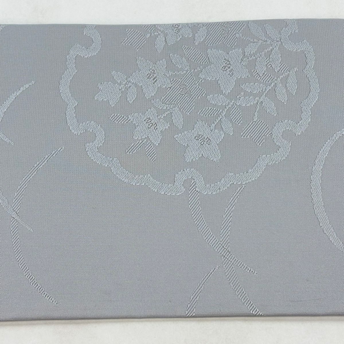 名古屋帯 優品 雪輪 草花 灰色 正絹