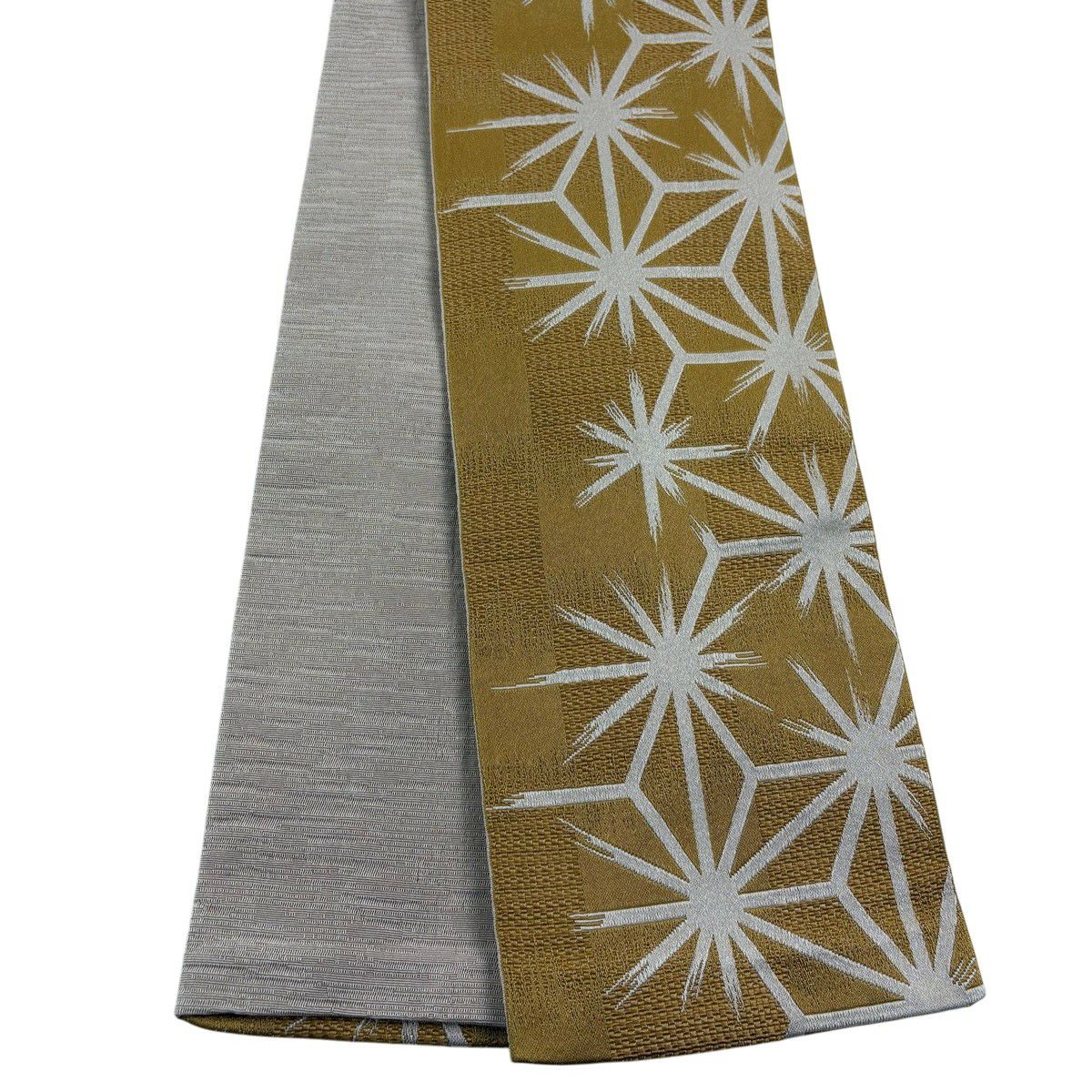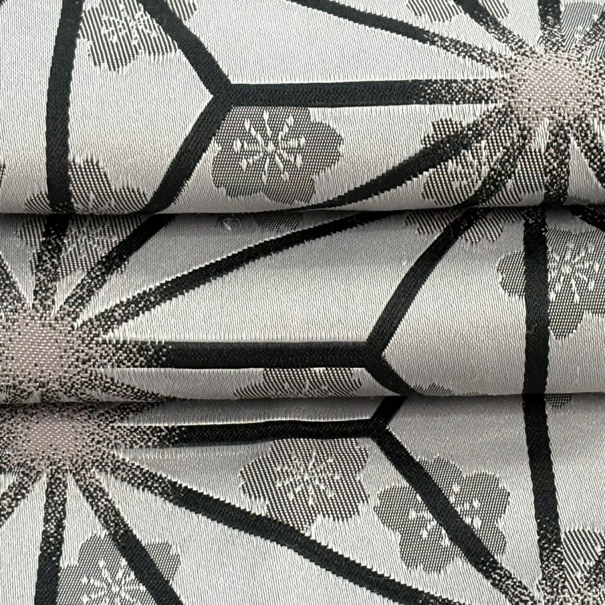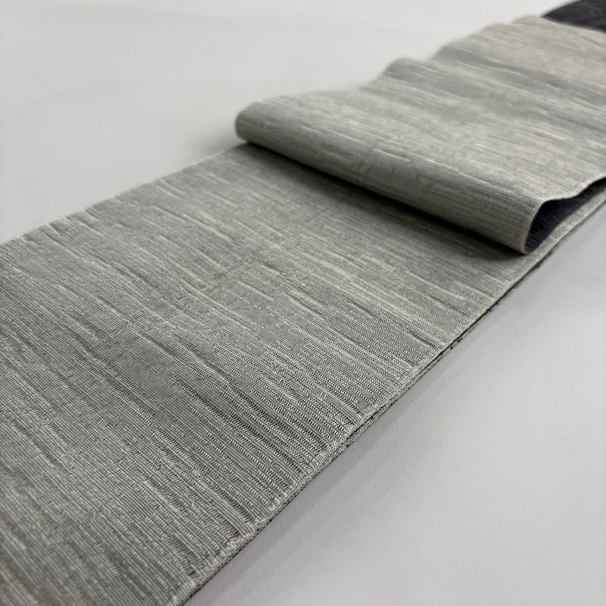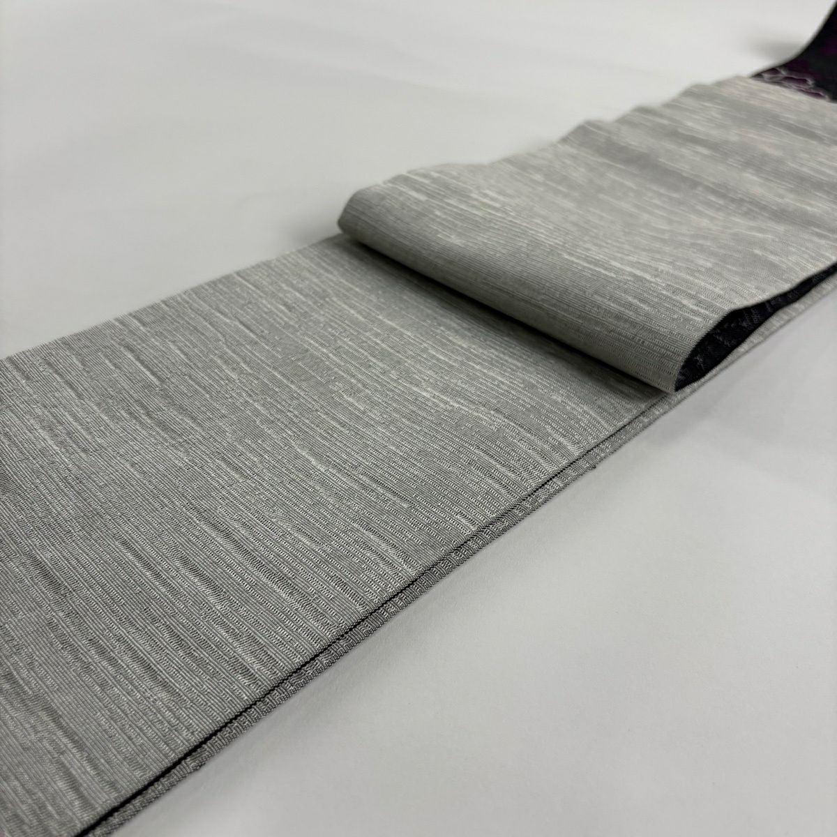 名古屋帯 優品 雪輪 草花 灰色 正絹
