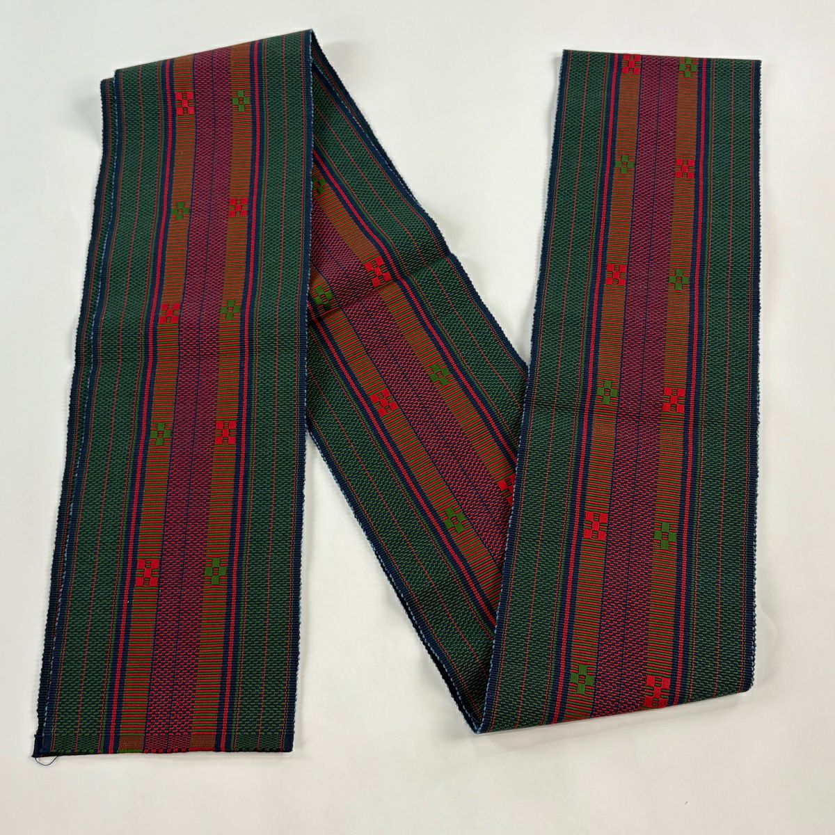 【美品】半幅帯 優品 縞 絣柄 緑 綿