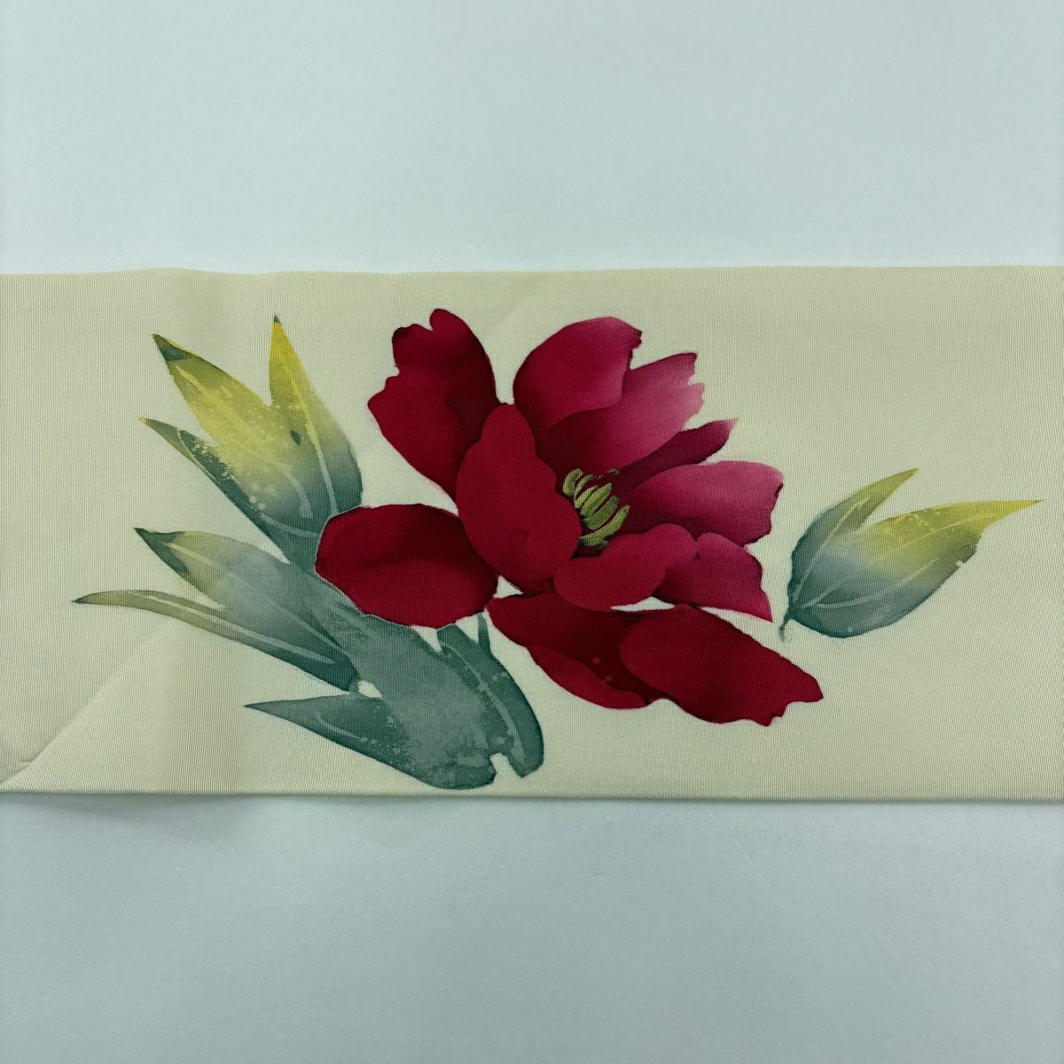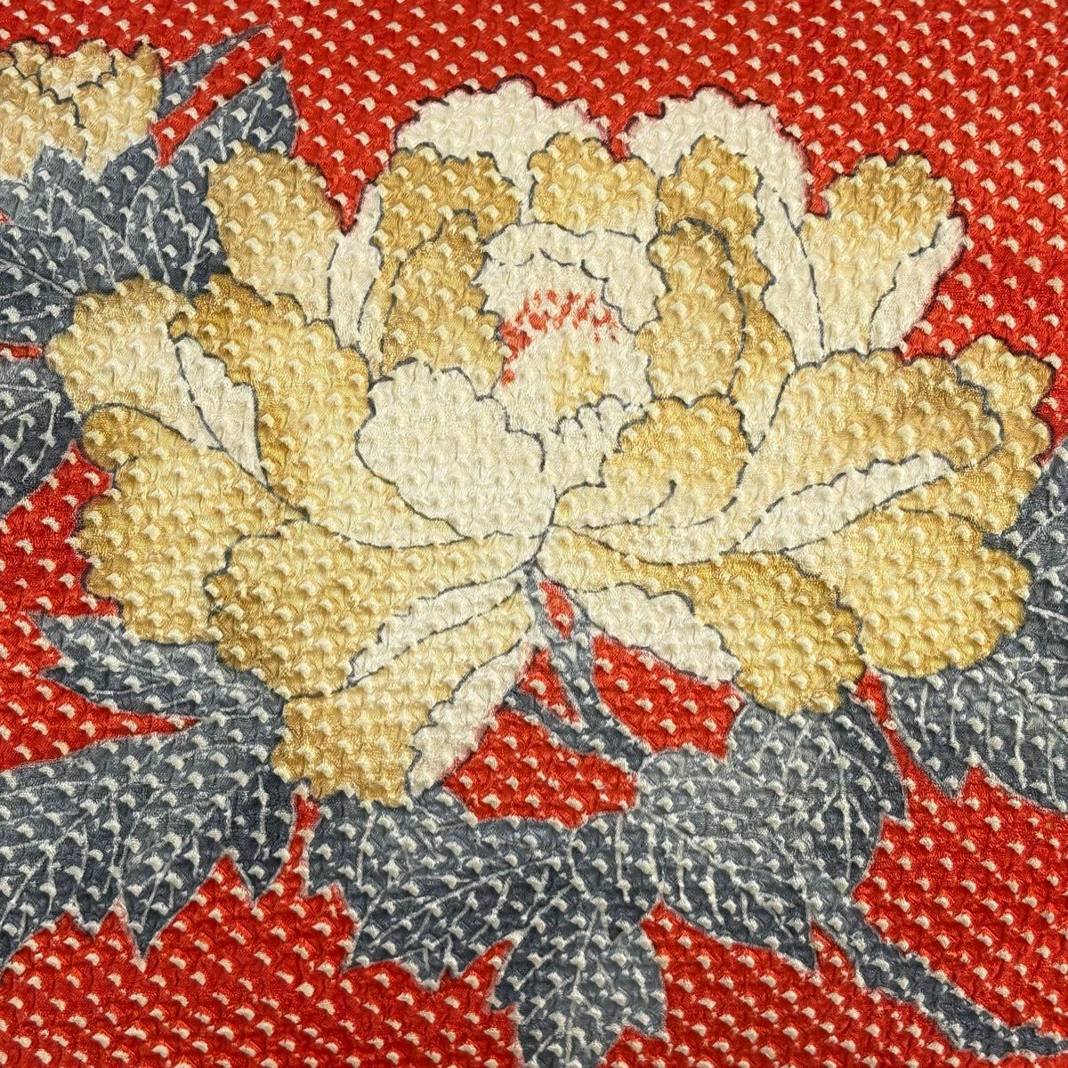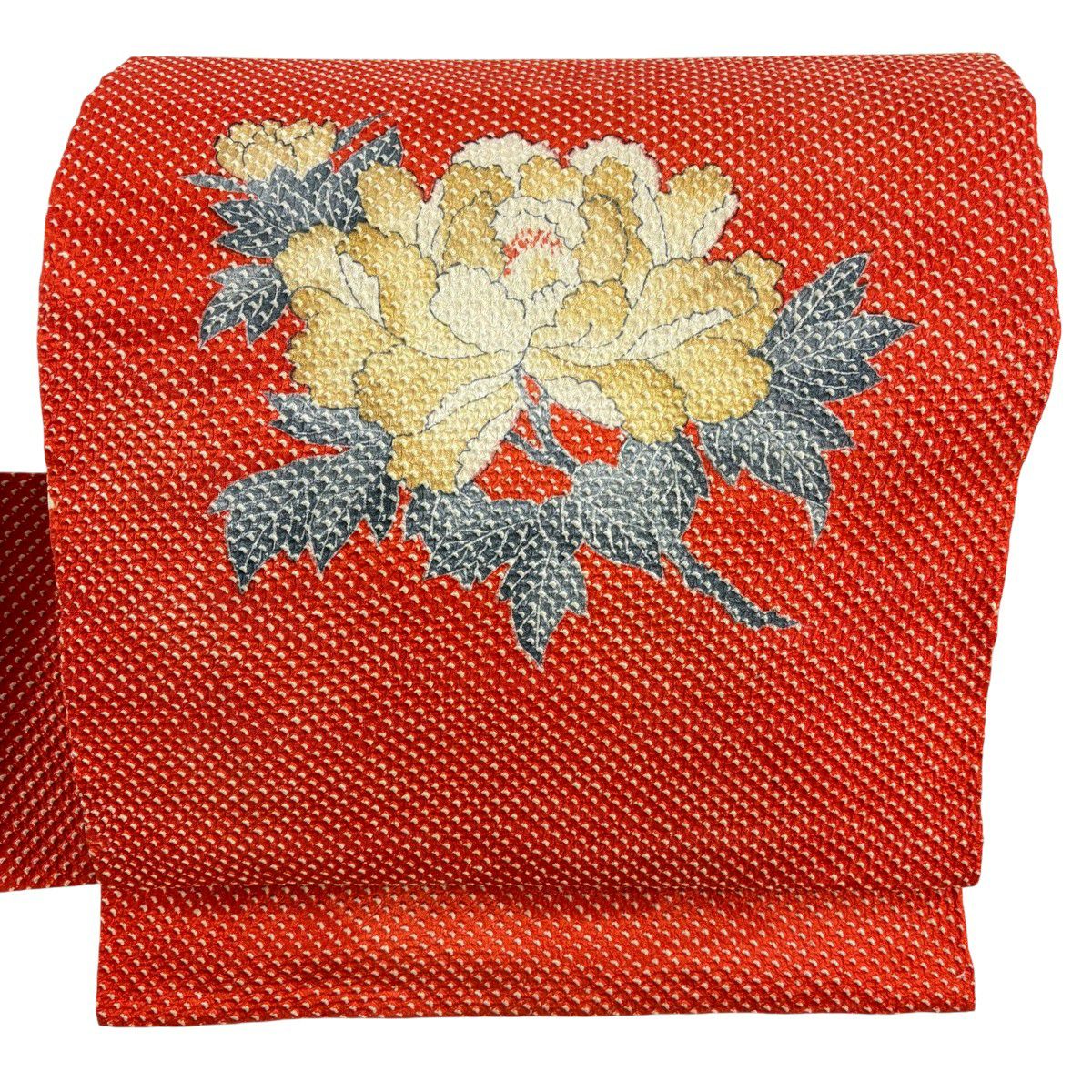 名古屋帯 優品 牡丹 絞り 朱色 正絹