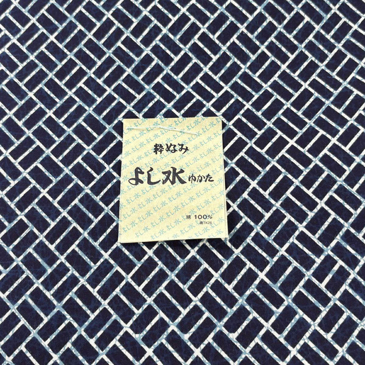 反物 優品 浴衣 入子菱 縞 紺色 綿