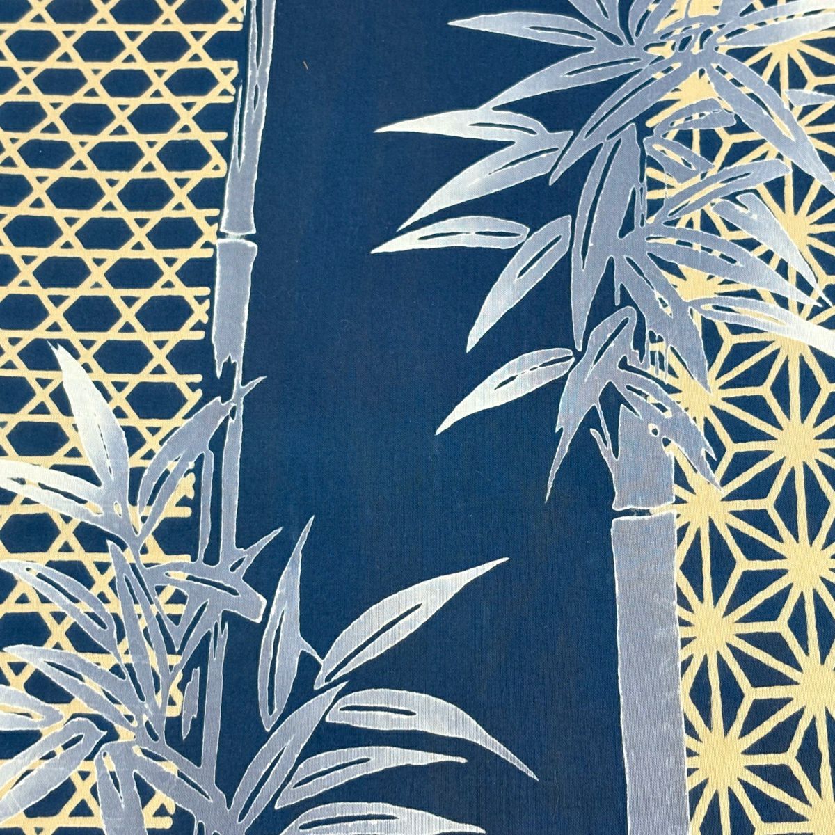 反物 優品 小紋 麻の葉 竹 藍色 綿