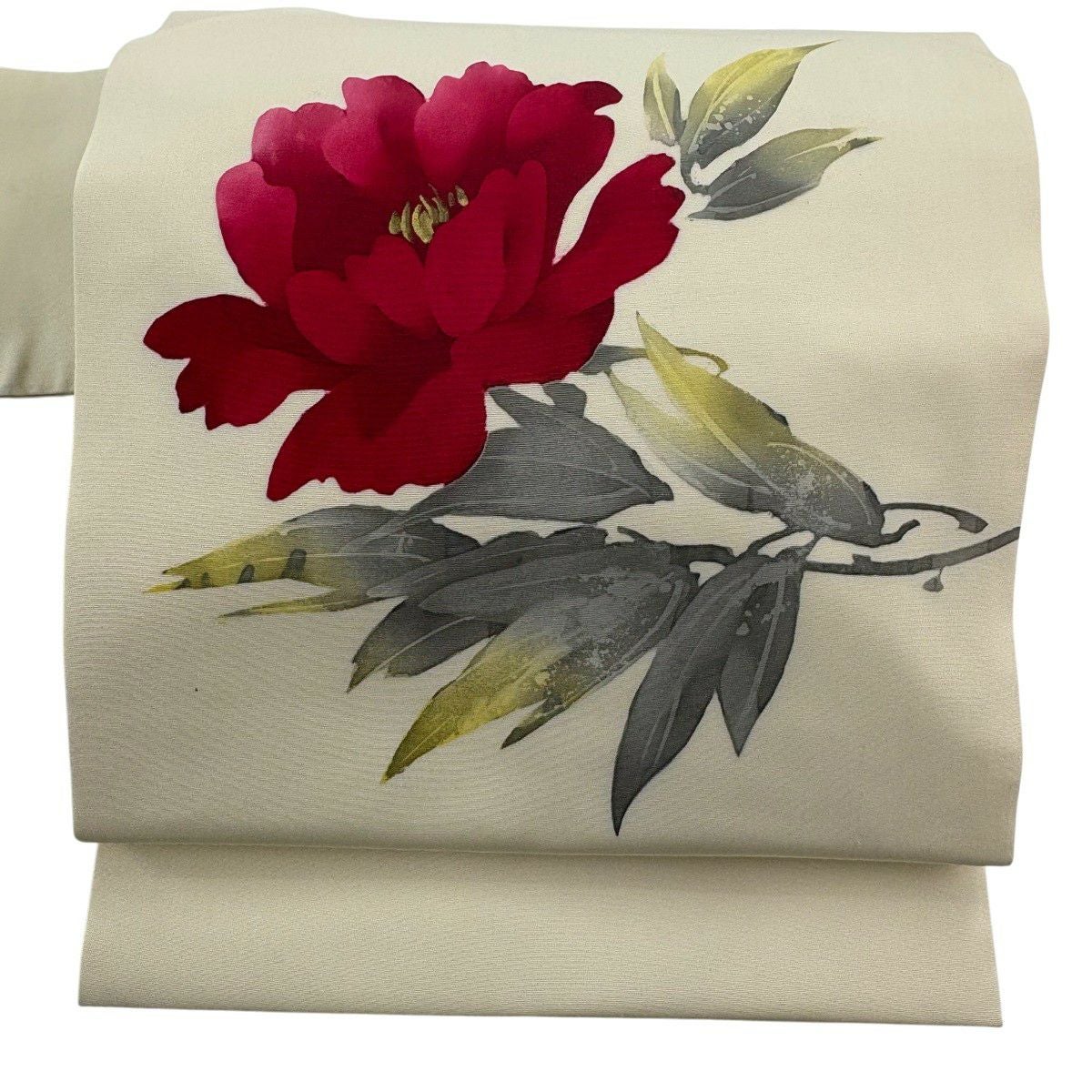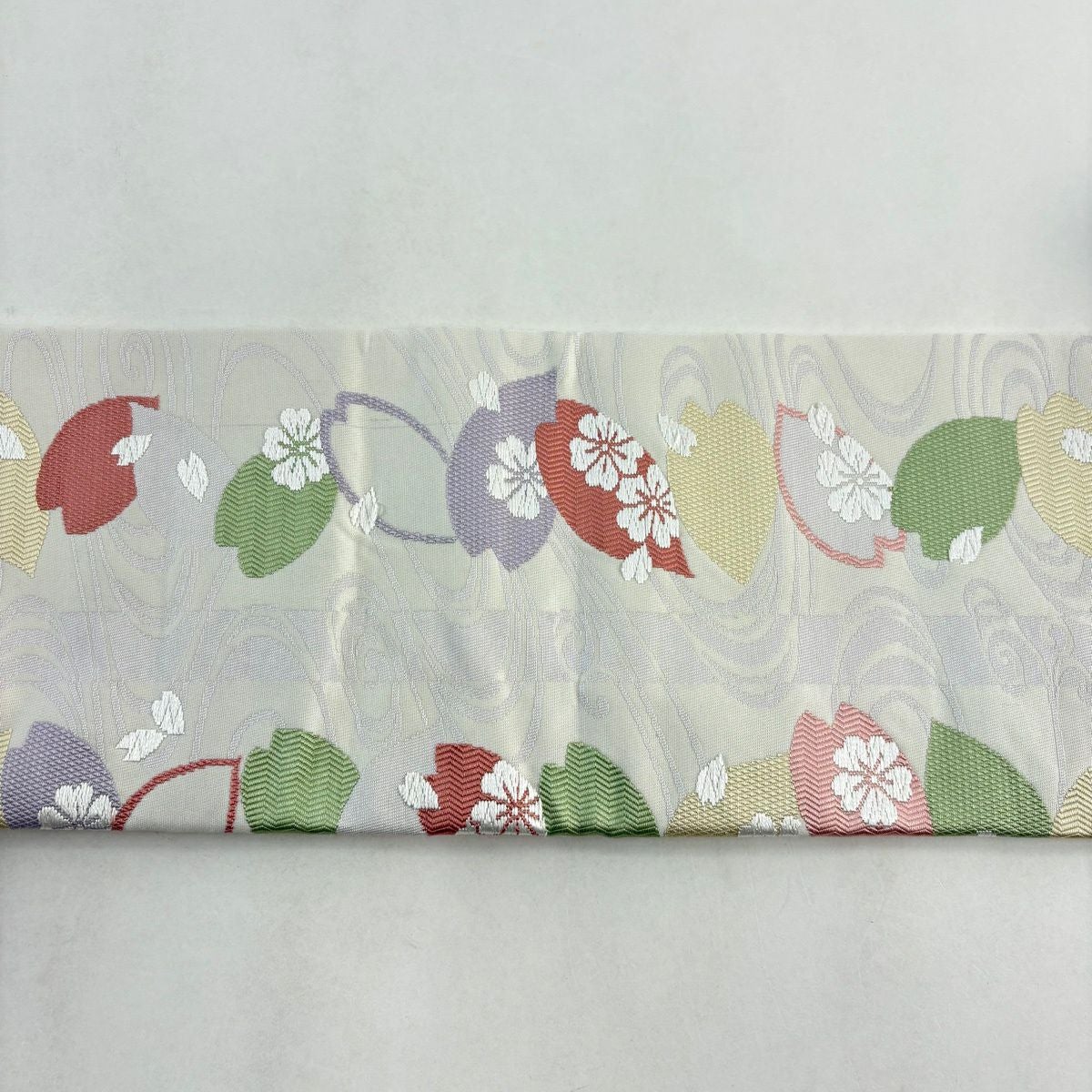 袋名古屋帯 優品 枝花 クリーム 化繊