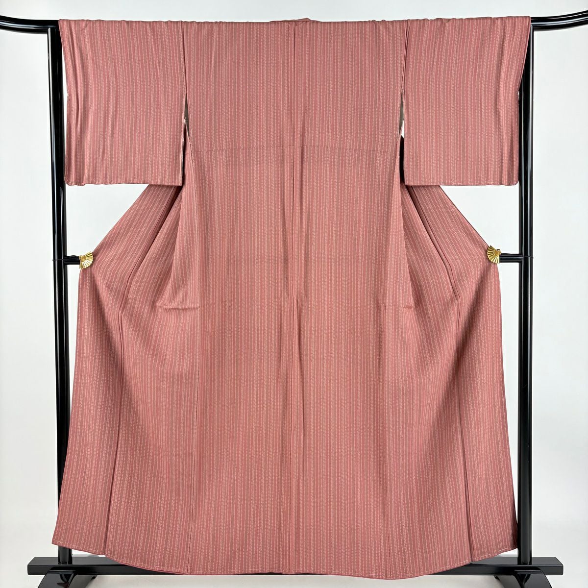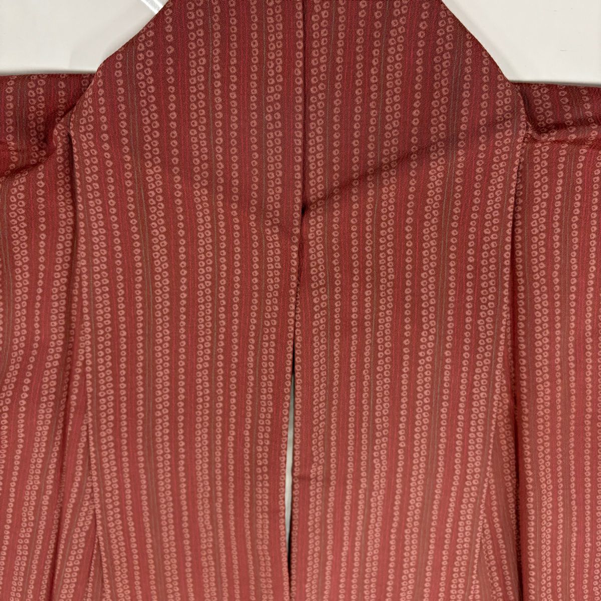 【美品】小紋 身丈158cm 裄丈64cm M 袷 縞 疋田 小豆色 正絹 優品
