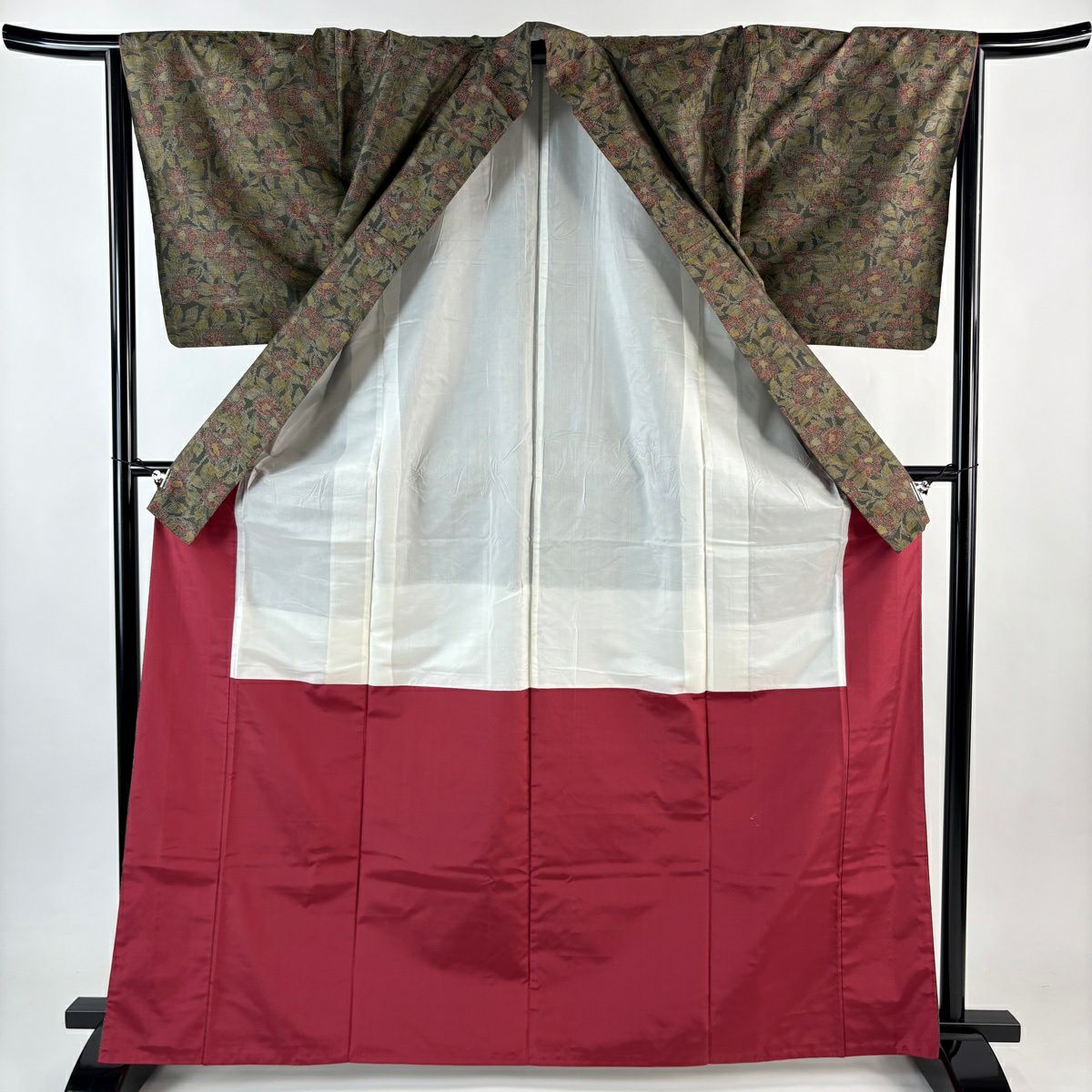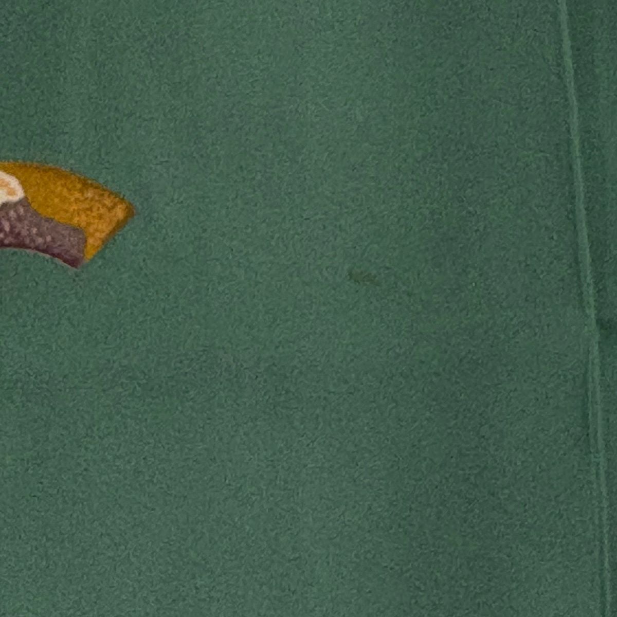 【美品】 紬 身丈167cm 裄丈66.5cm M 袷 草花 茶緑色 正絹 優品