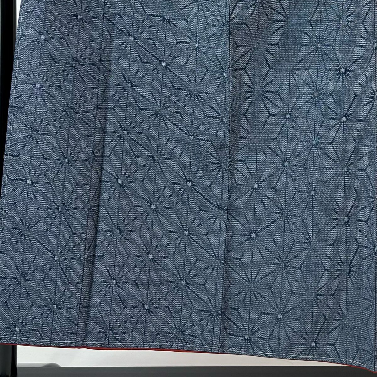 【美品】 紬 身丈153.5cm 裄丈62.5cm S 袷 麻の葉 紺色 正絹 優品