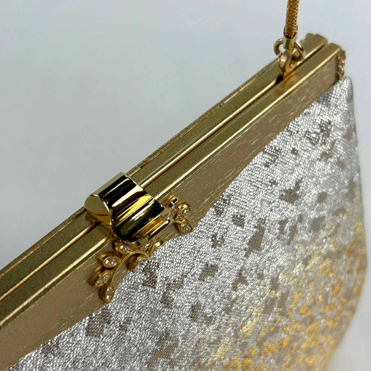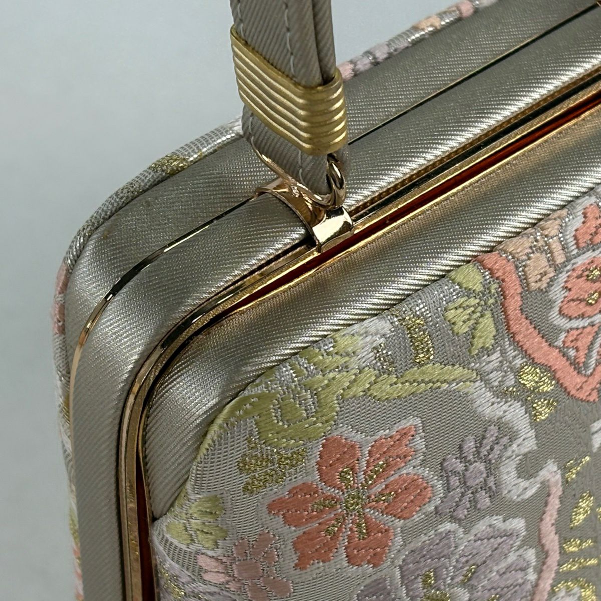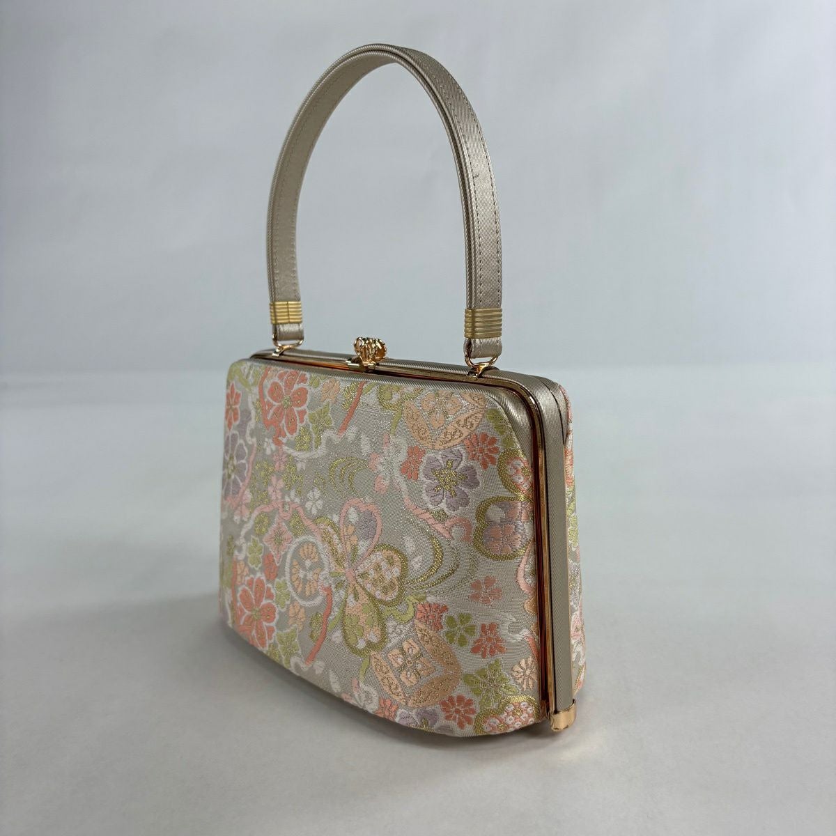 【美品】和装バッグ 優品 セミフォーマル 幾何学 金銀糸 箔 金色 和装小物