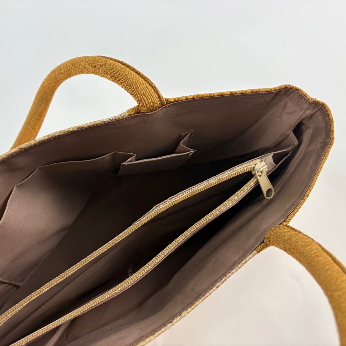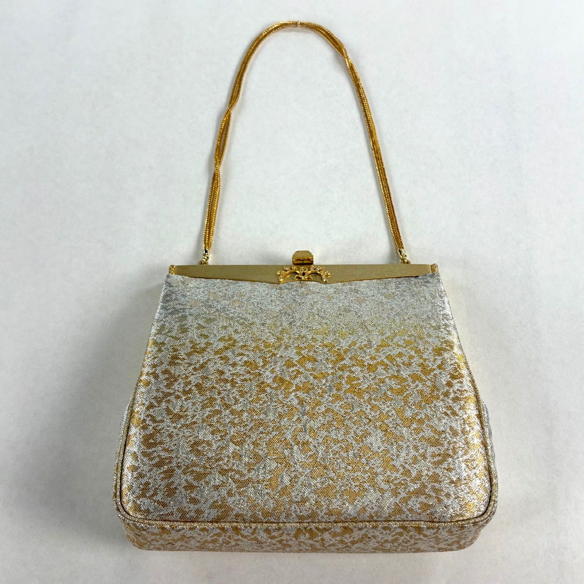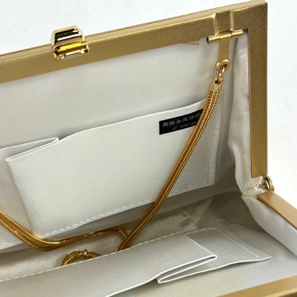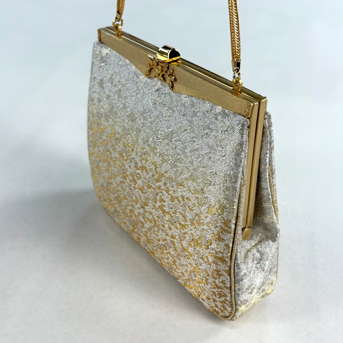 【美品】和装バッグ 優品 セミフォーマル 幾何学 金銀糸 箔 金色 和装小物