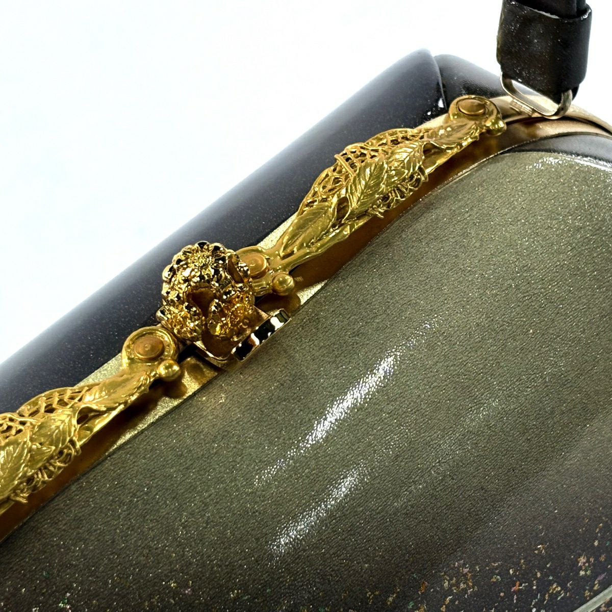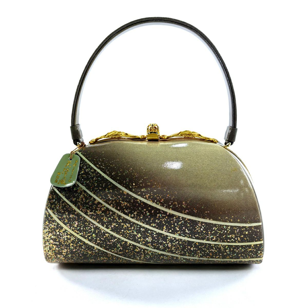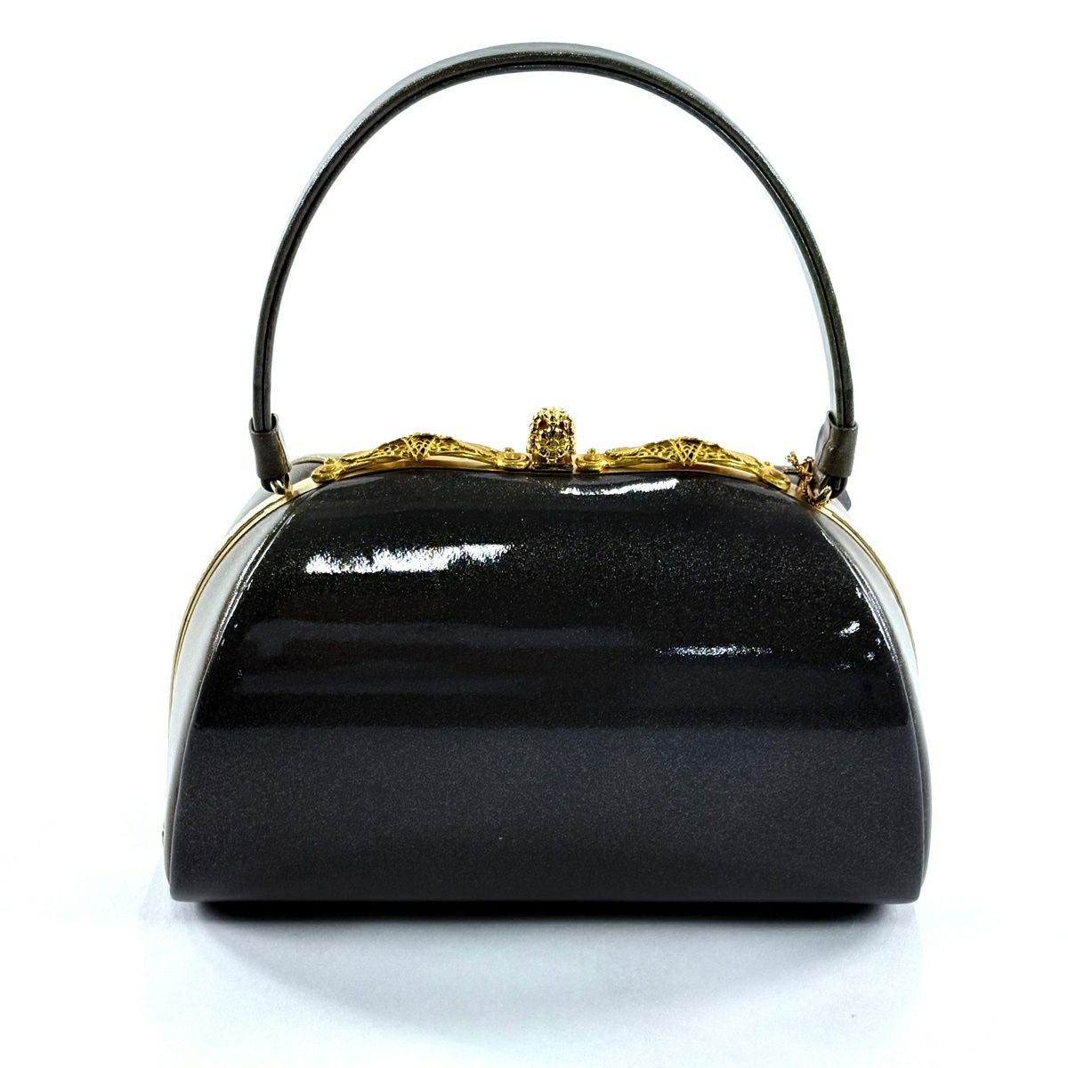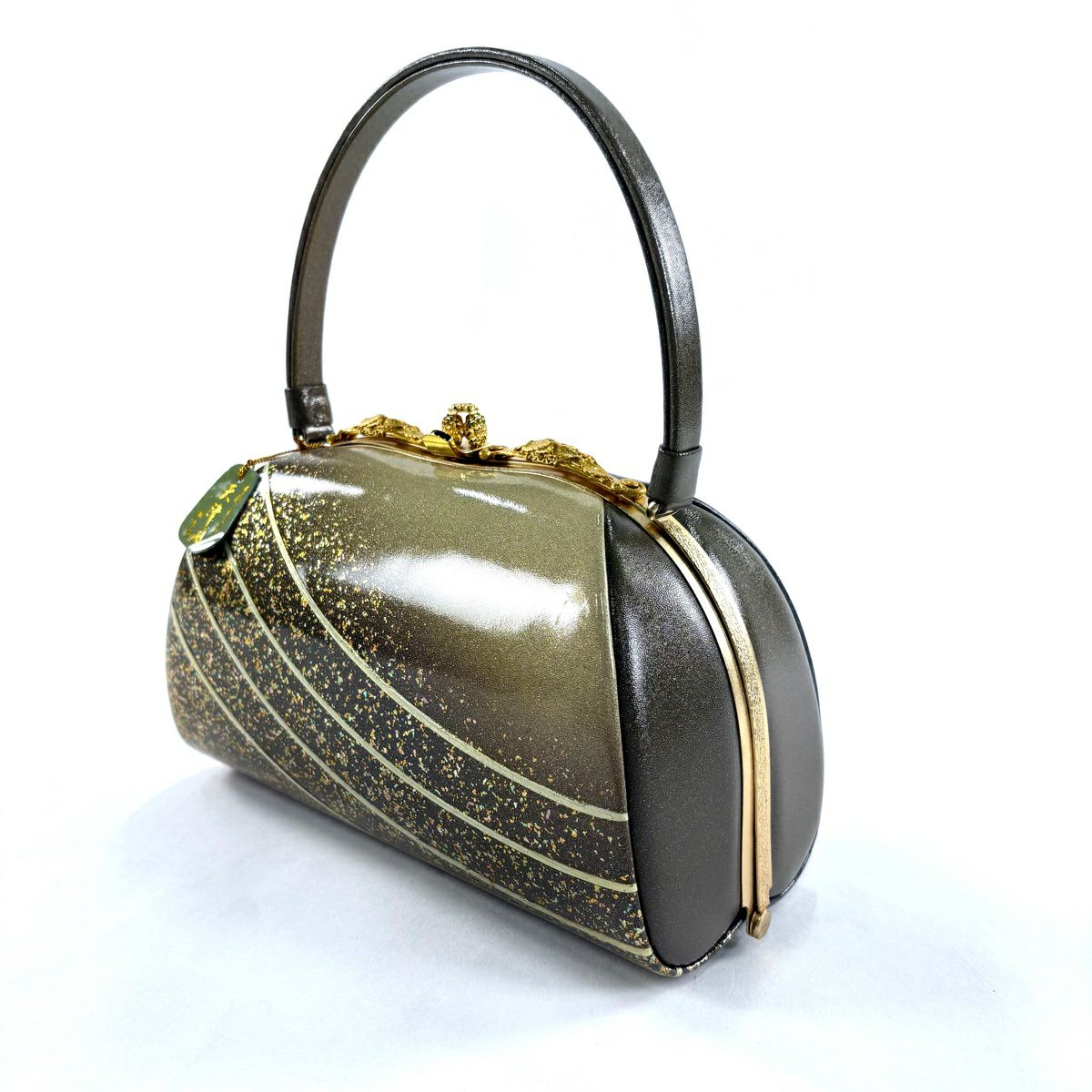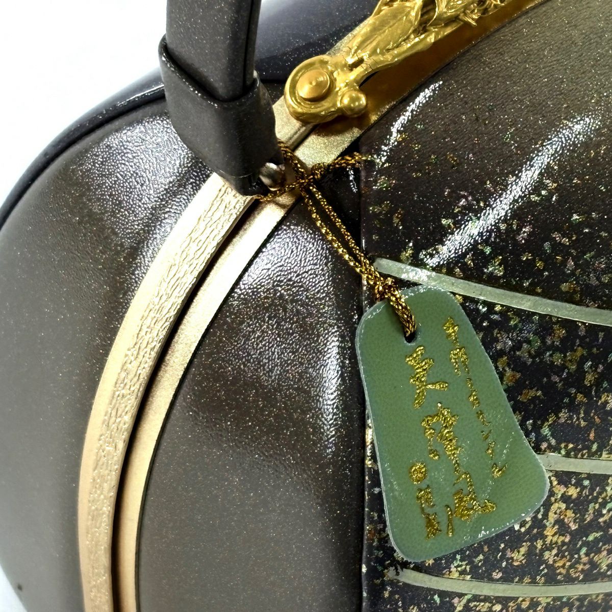 【美品】和装バッグ 優品 フォーマル 斜縞 金彩 灰茶 エナメル 和装小物