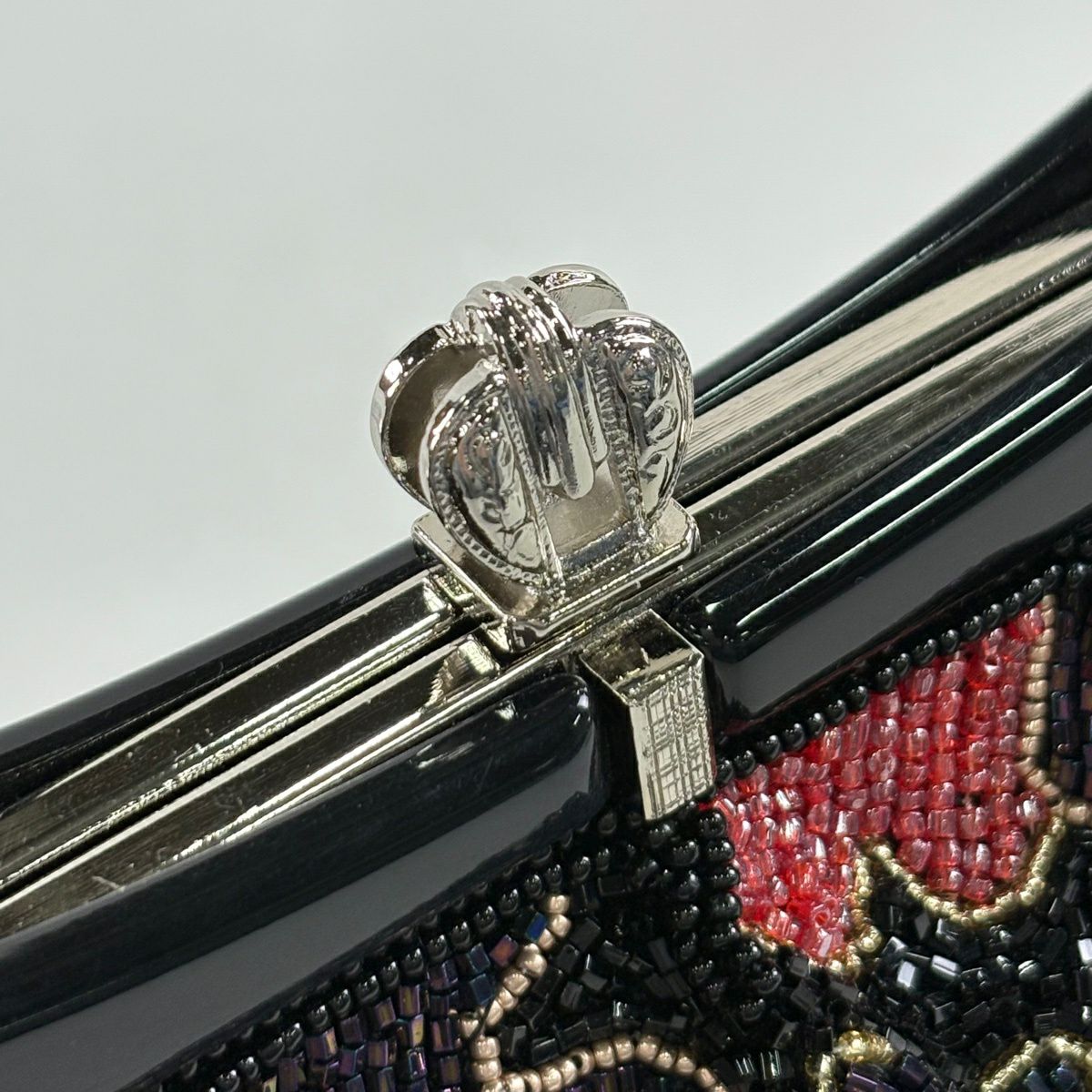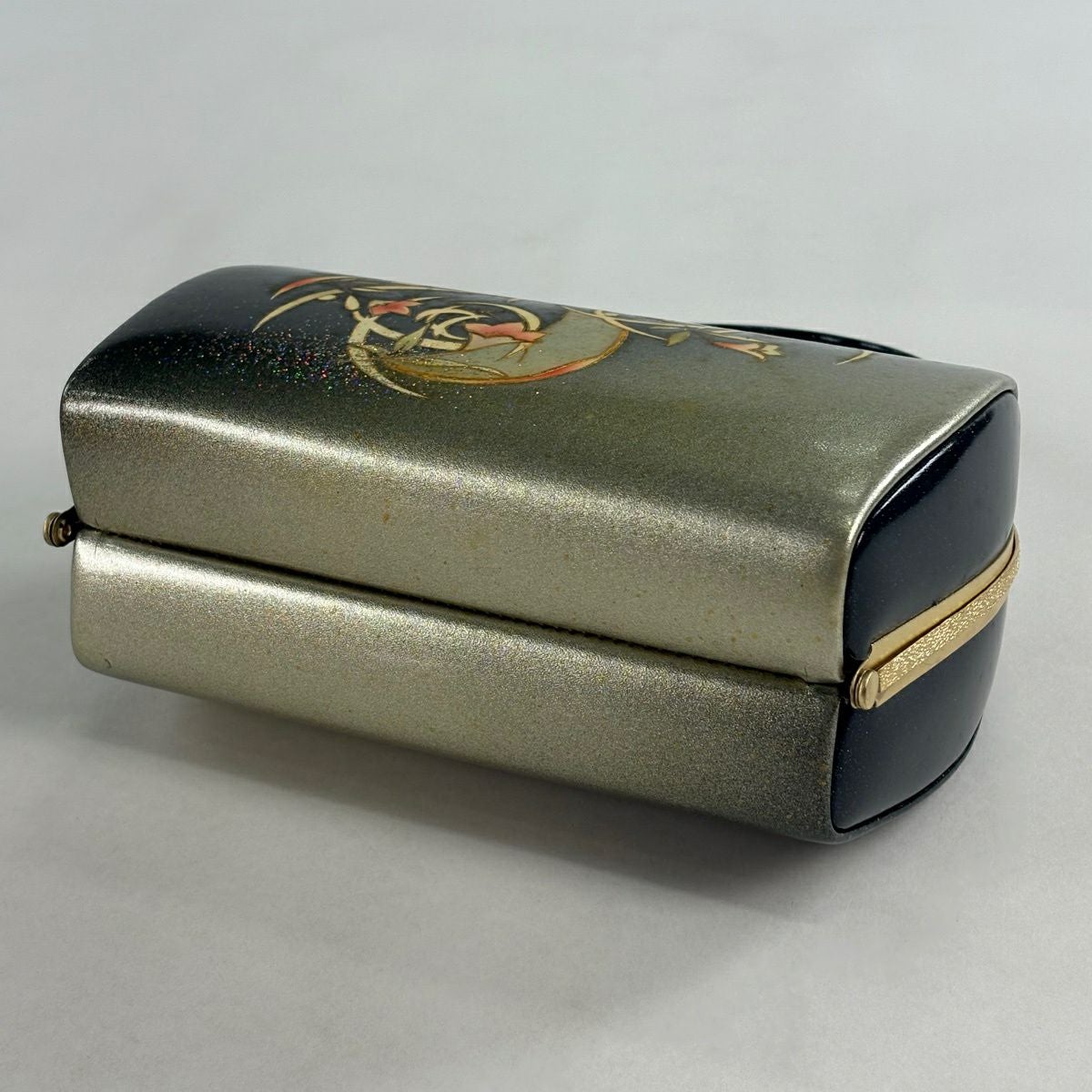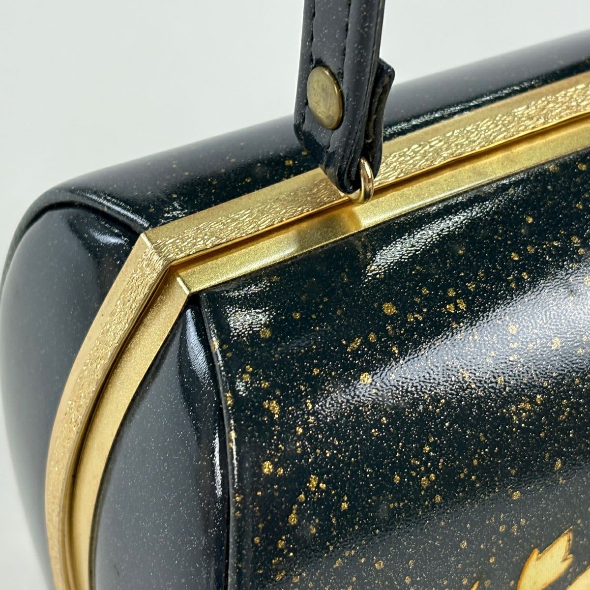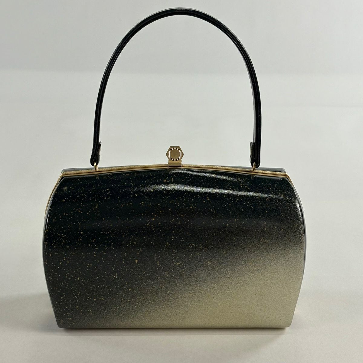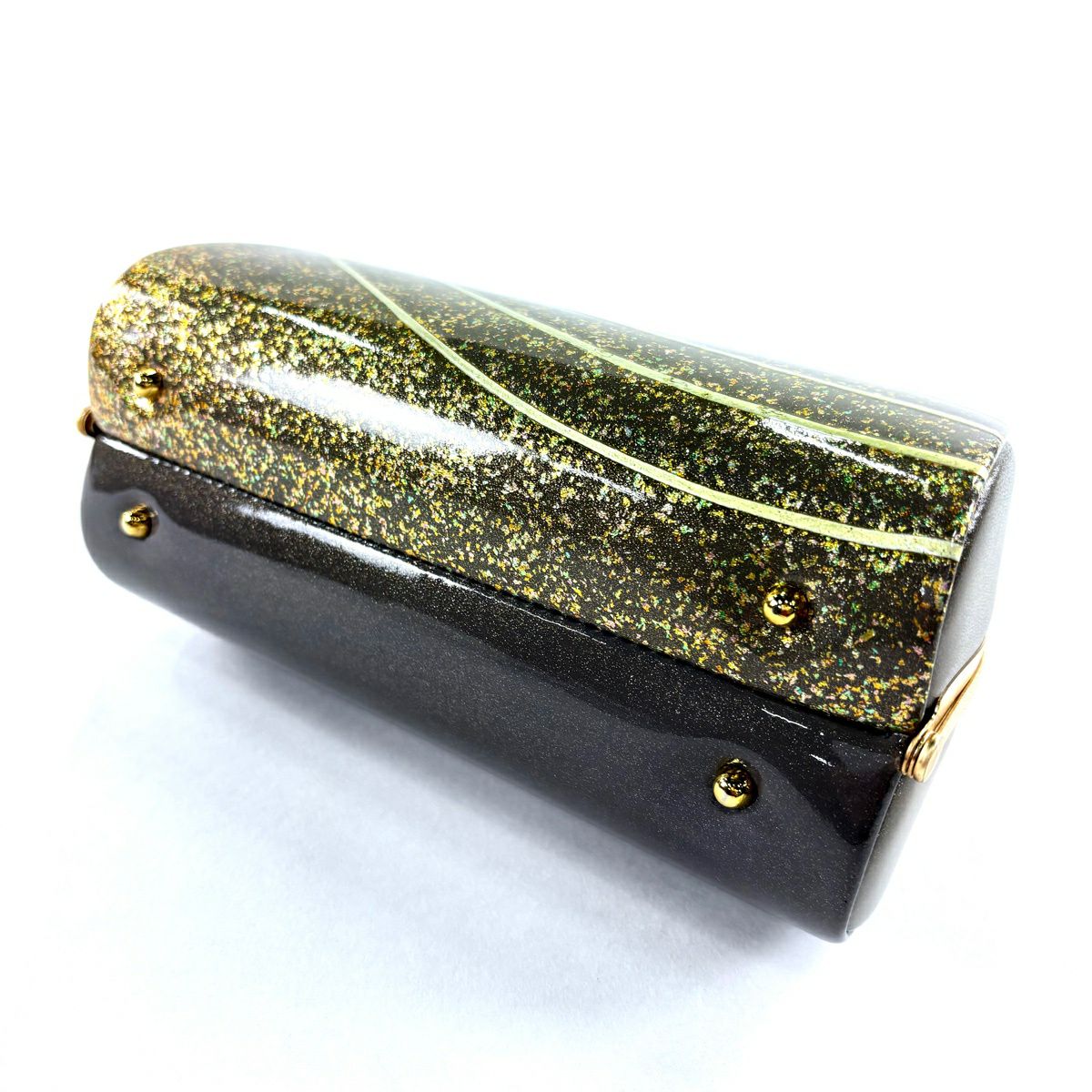 【美品】和装バッグ 優品 フォーマル 斜縞 金彩 灰茶 エナメル 和装小物