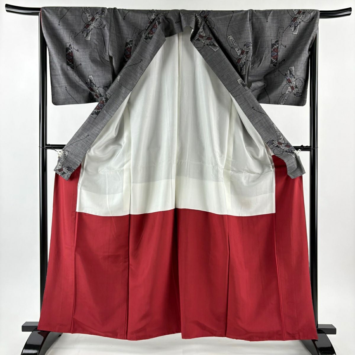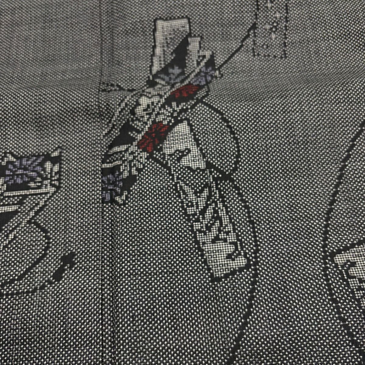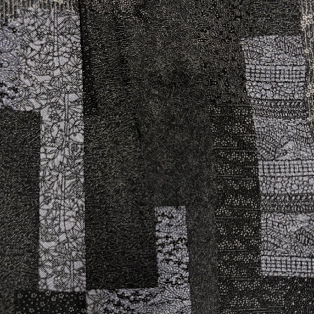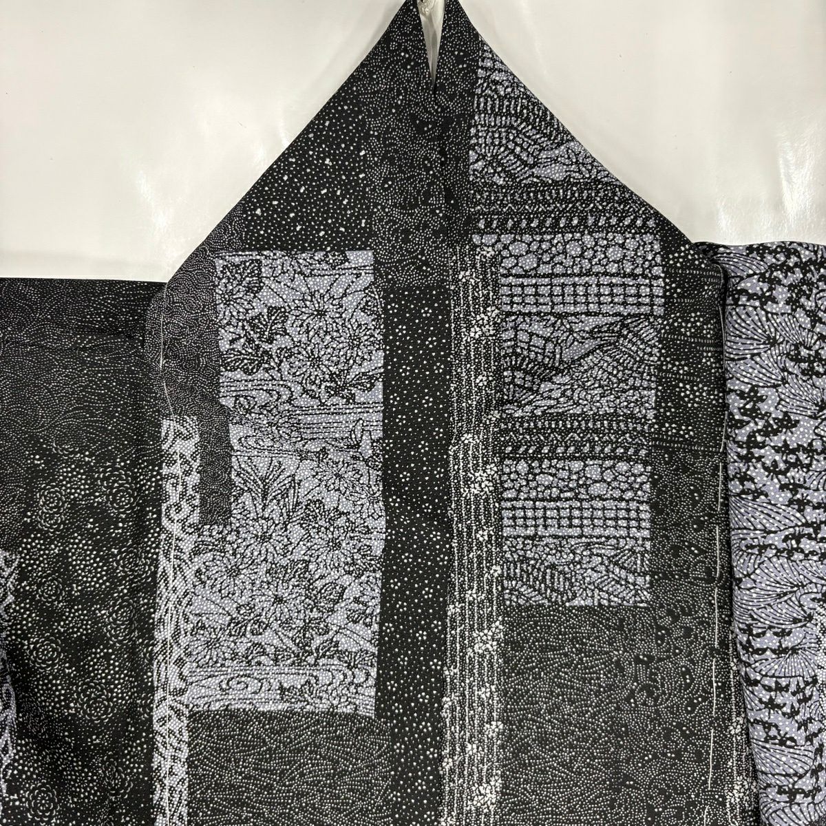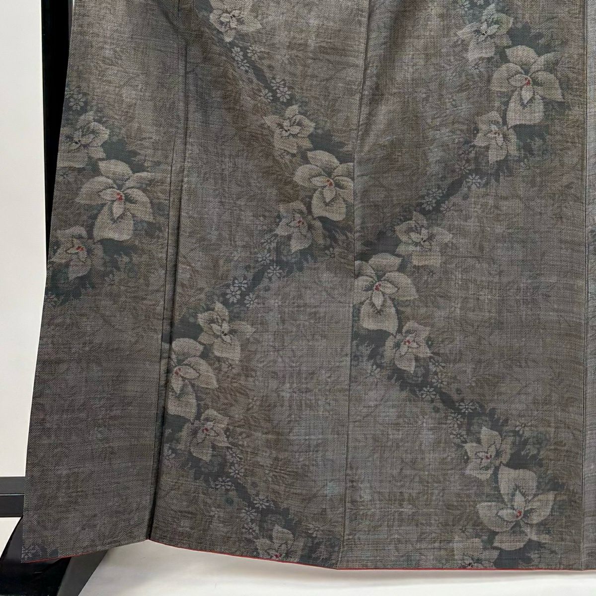 【美品】 紬 身丈165cm 裄丈66.5cm M 袷 草花 芝 黒灰 正絹 優品