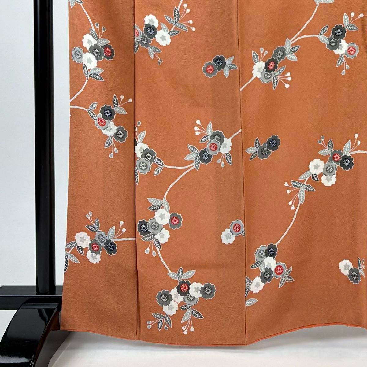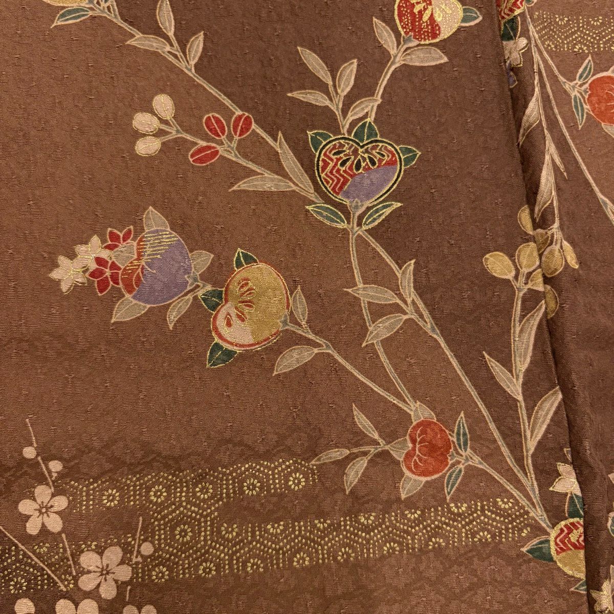 小紋 身丈166cm 裄丈67.5cm L 袷 枝花 金彩 オレンジ 正絹 優品