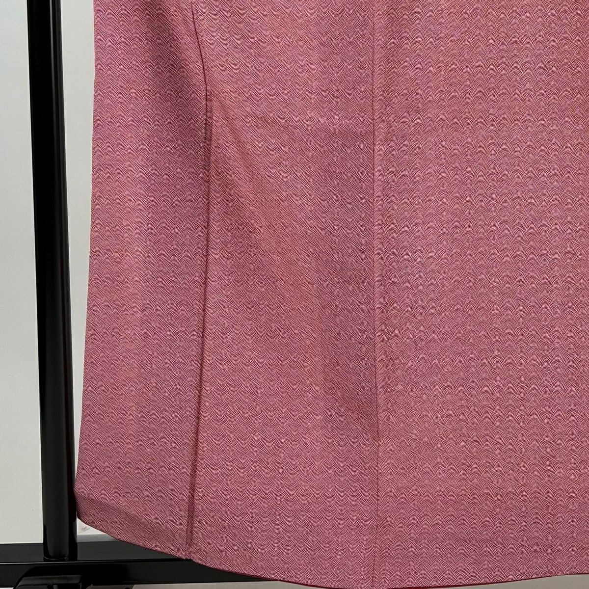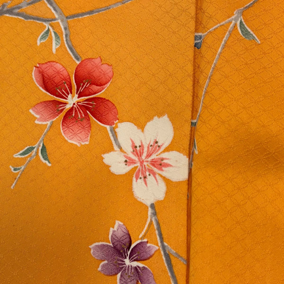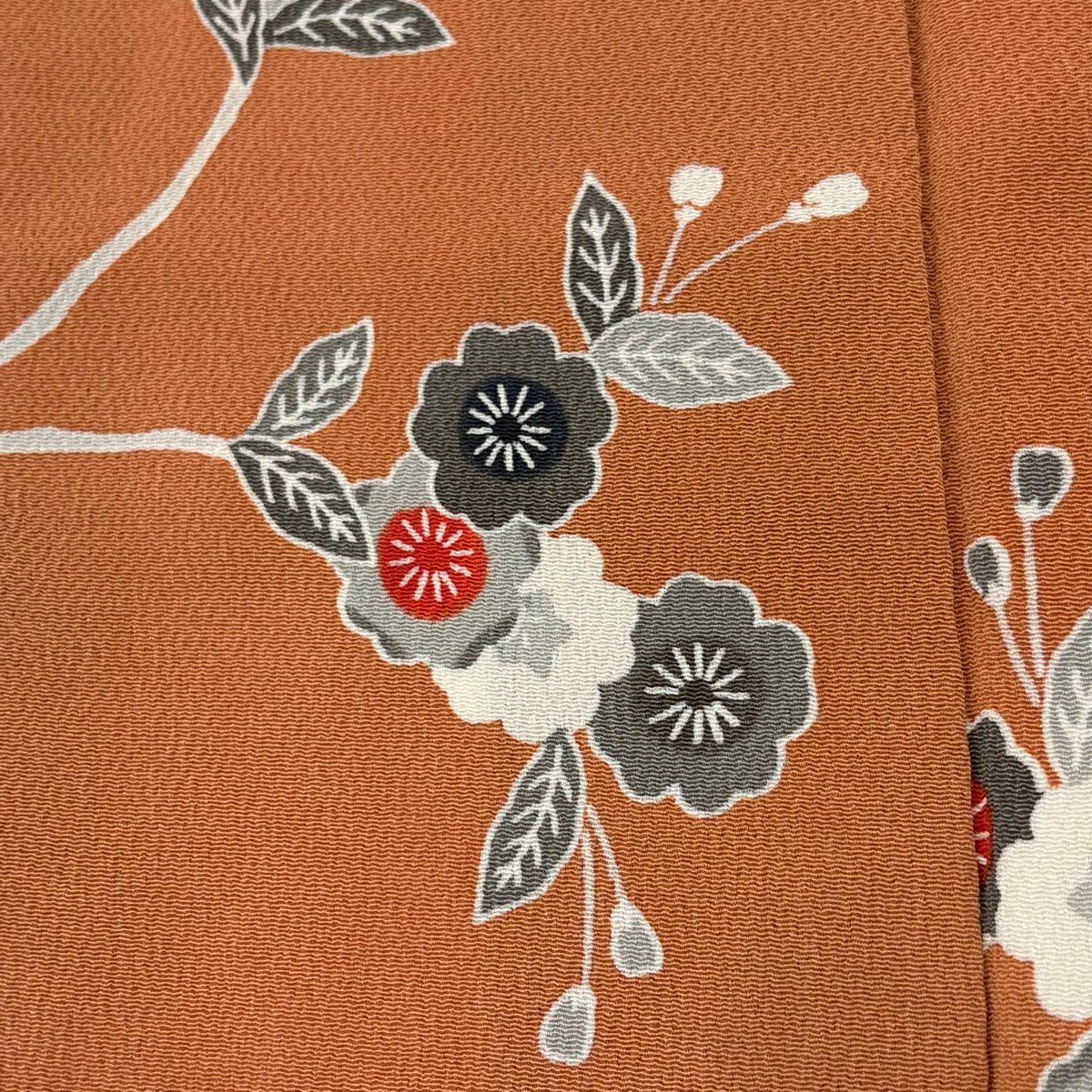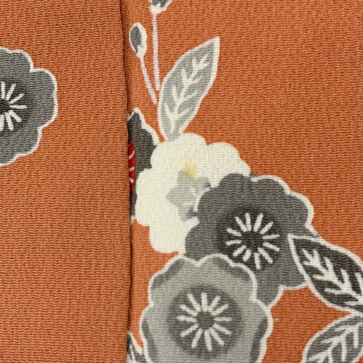 小紋 身丈166cm 裄丈65.5cm M 袷 桜 縮緬 オレンジ 正絹 優品