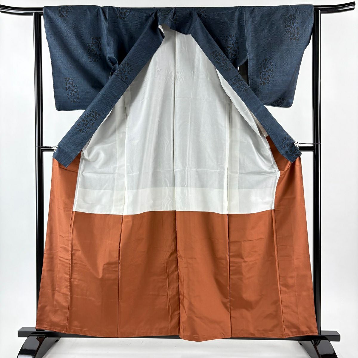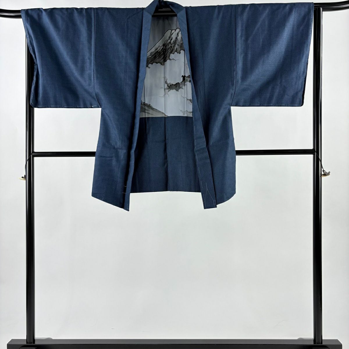 男着物 身丈86cm 裄丈64.5cm S 紬地 羽織 亀甲絣 紺色 正絹 優品