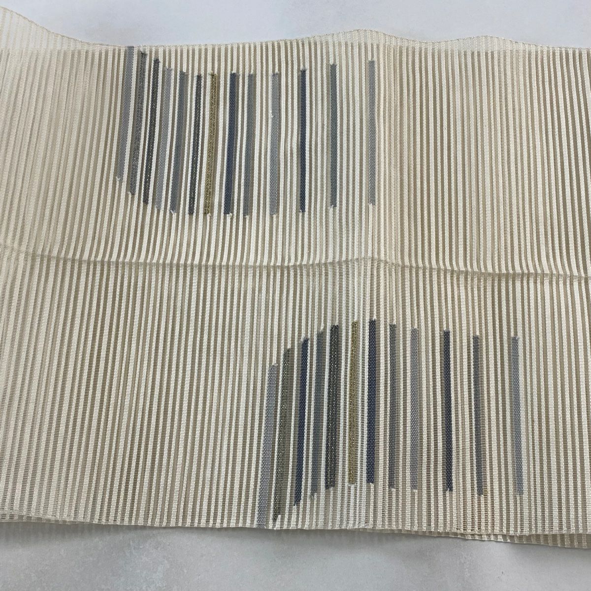 【在庫一掃】 名古屋帯 優品 夏帯 絽 八寸名古屋帯 松葉仕立て 縞 クリーム 正絹