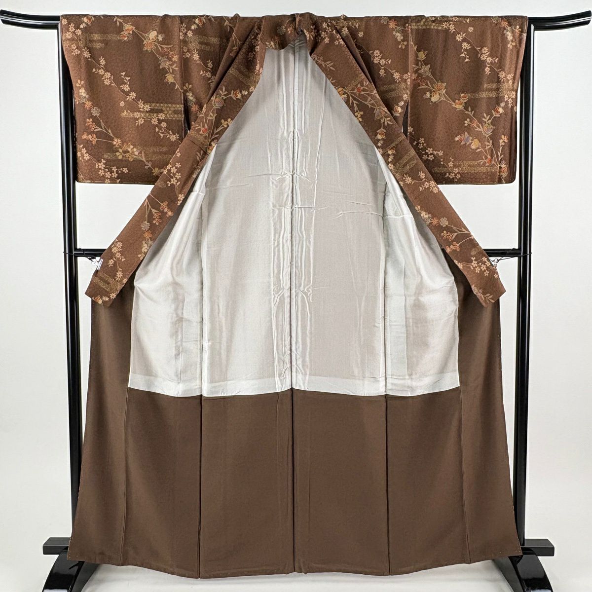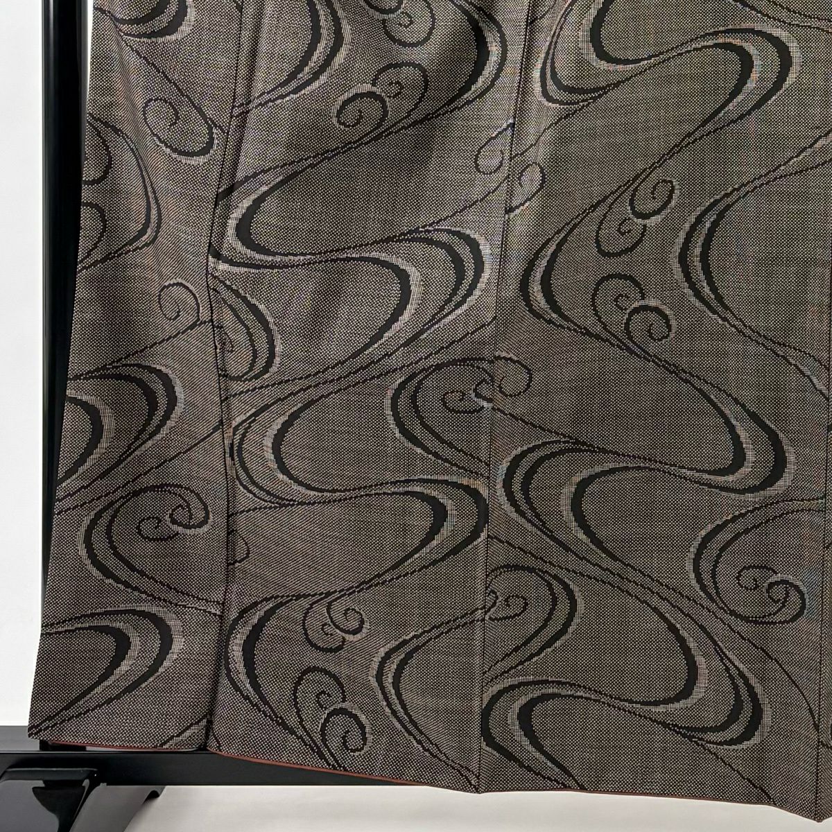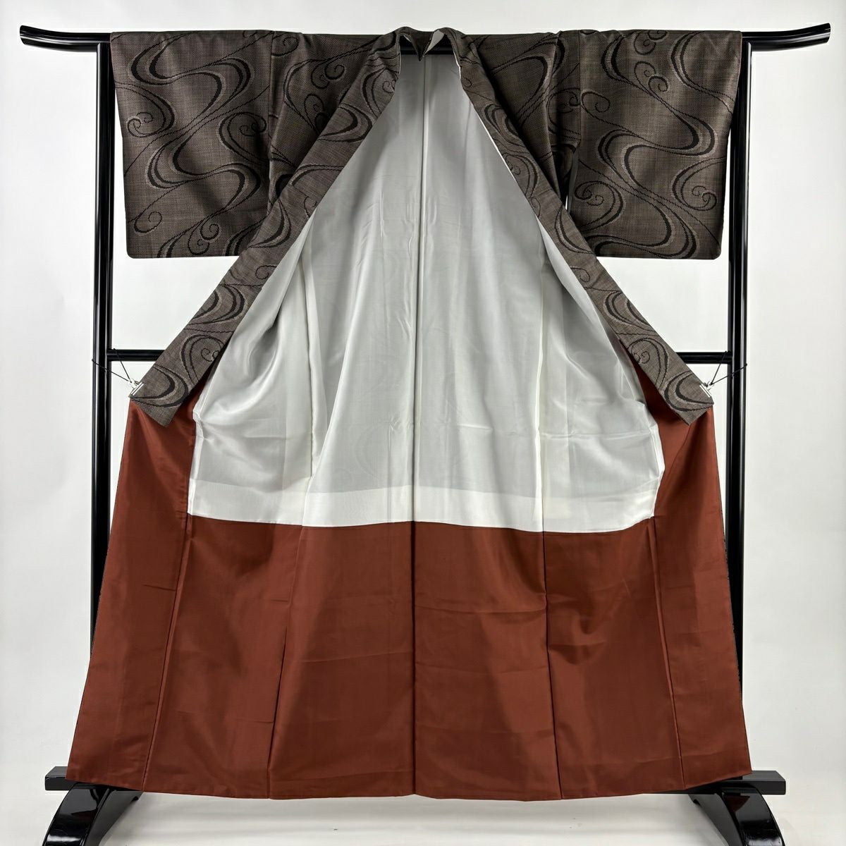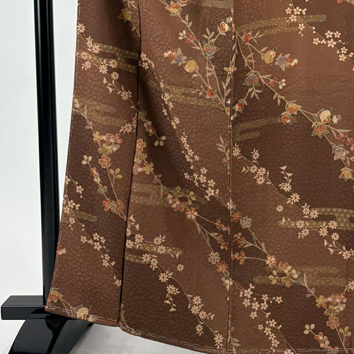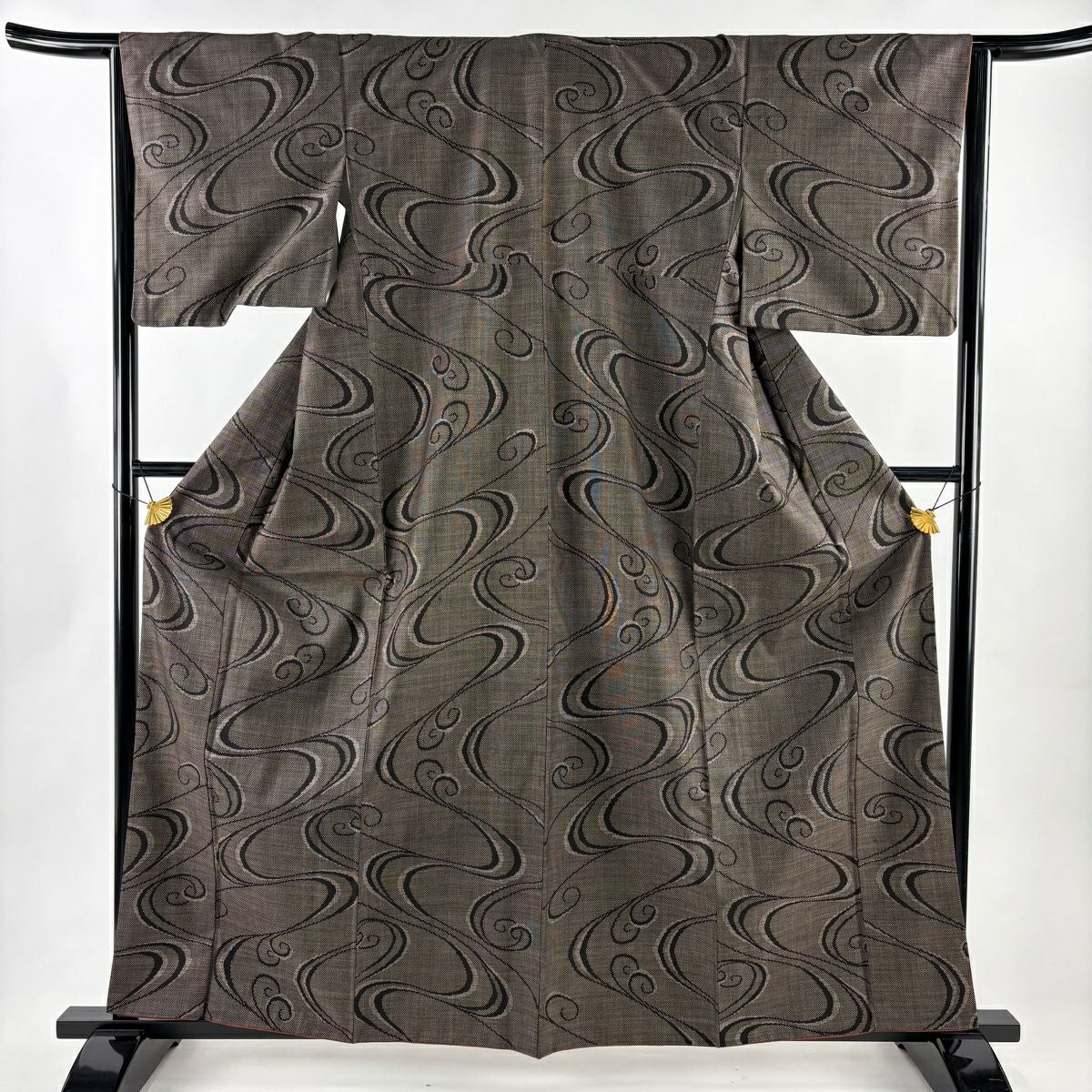 【美品】 紬 身丈160.5cm 裄丈64.5cm M 袷 流水 焦茶色 正絹 優品