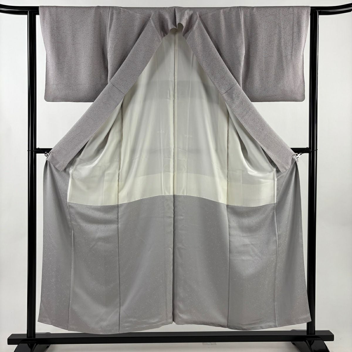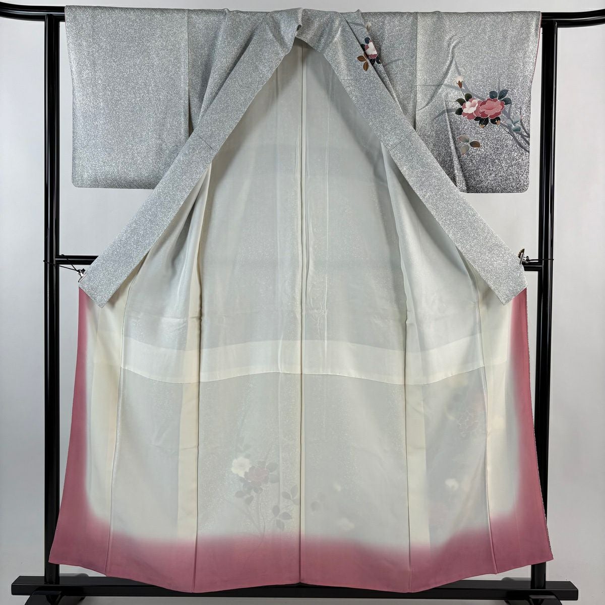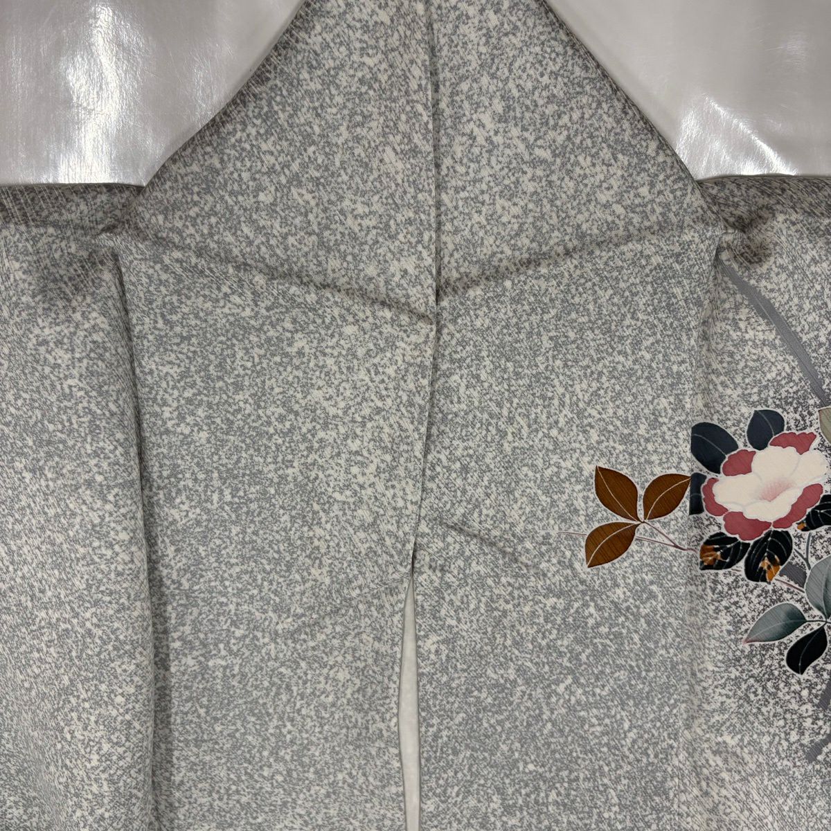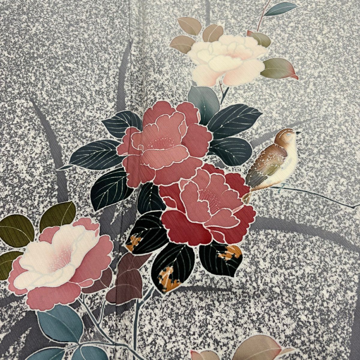 付下げ 身丈155cm 裄丈63cm S 袷 牡丹 鳥 ぼかし 灰色 正絹 優品