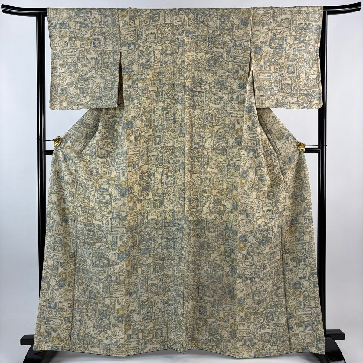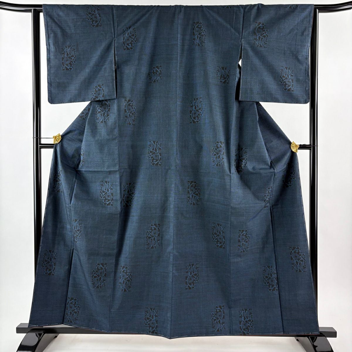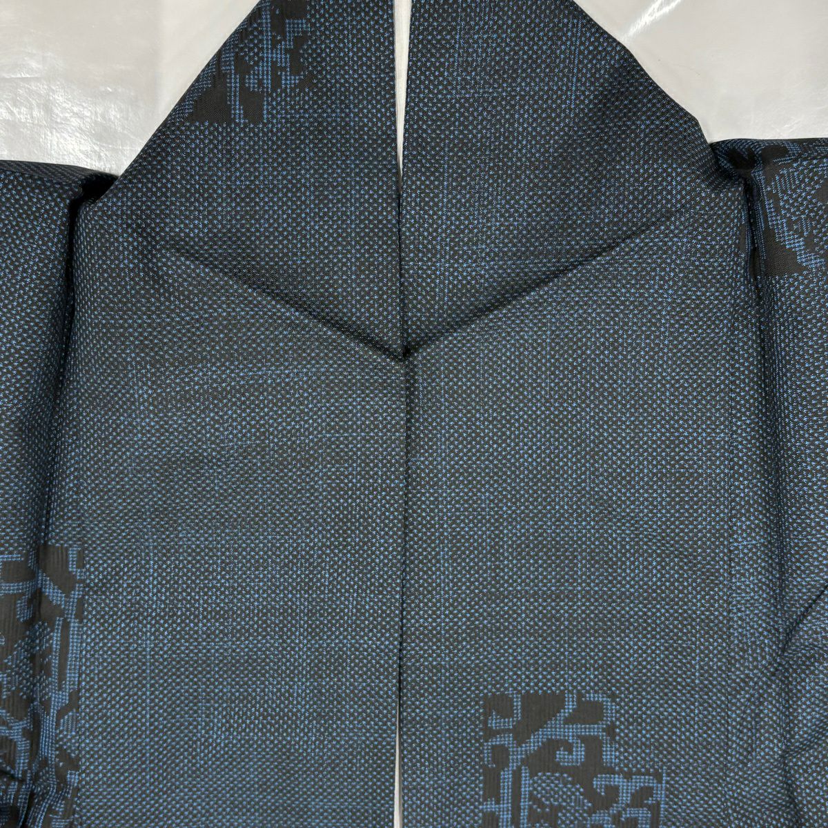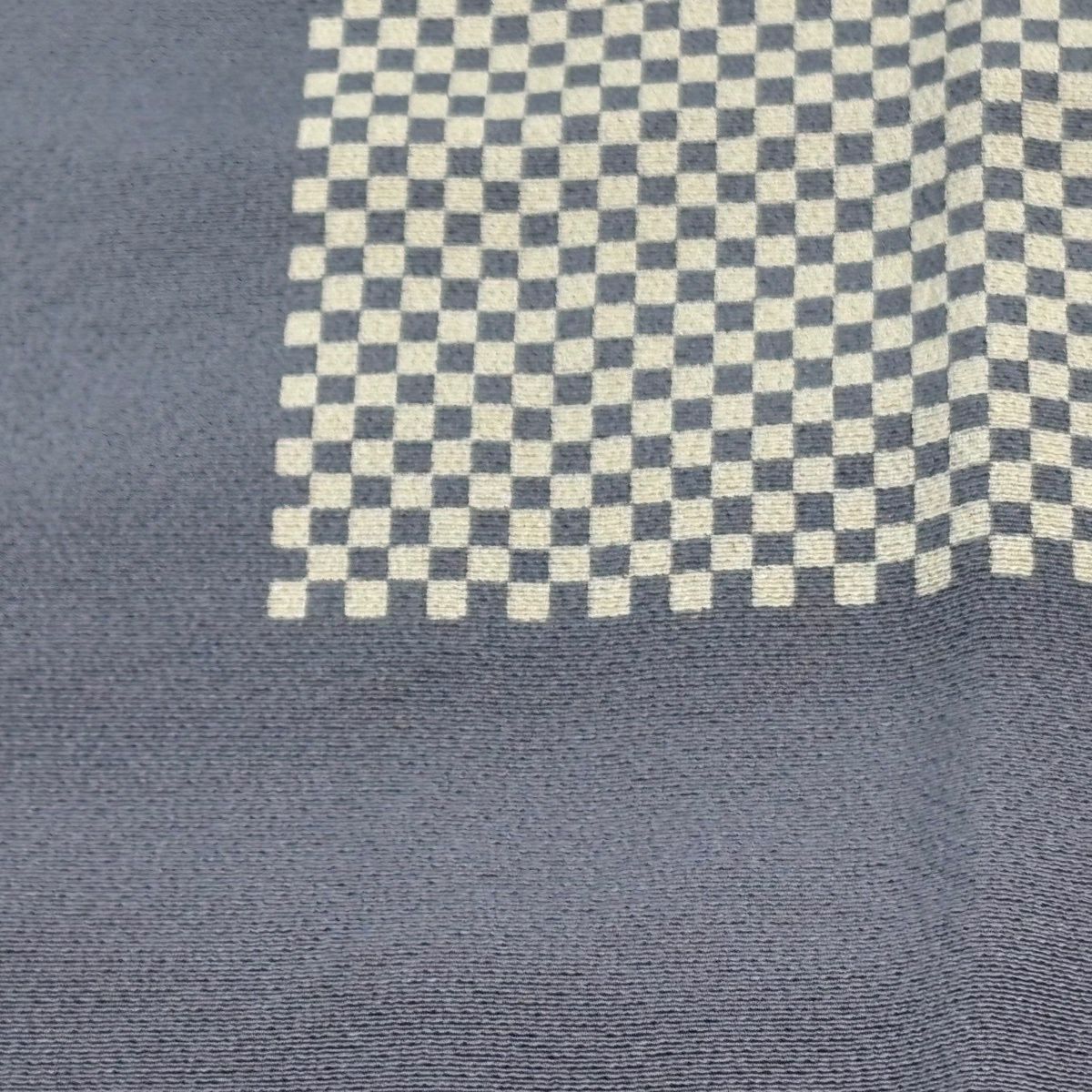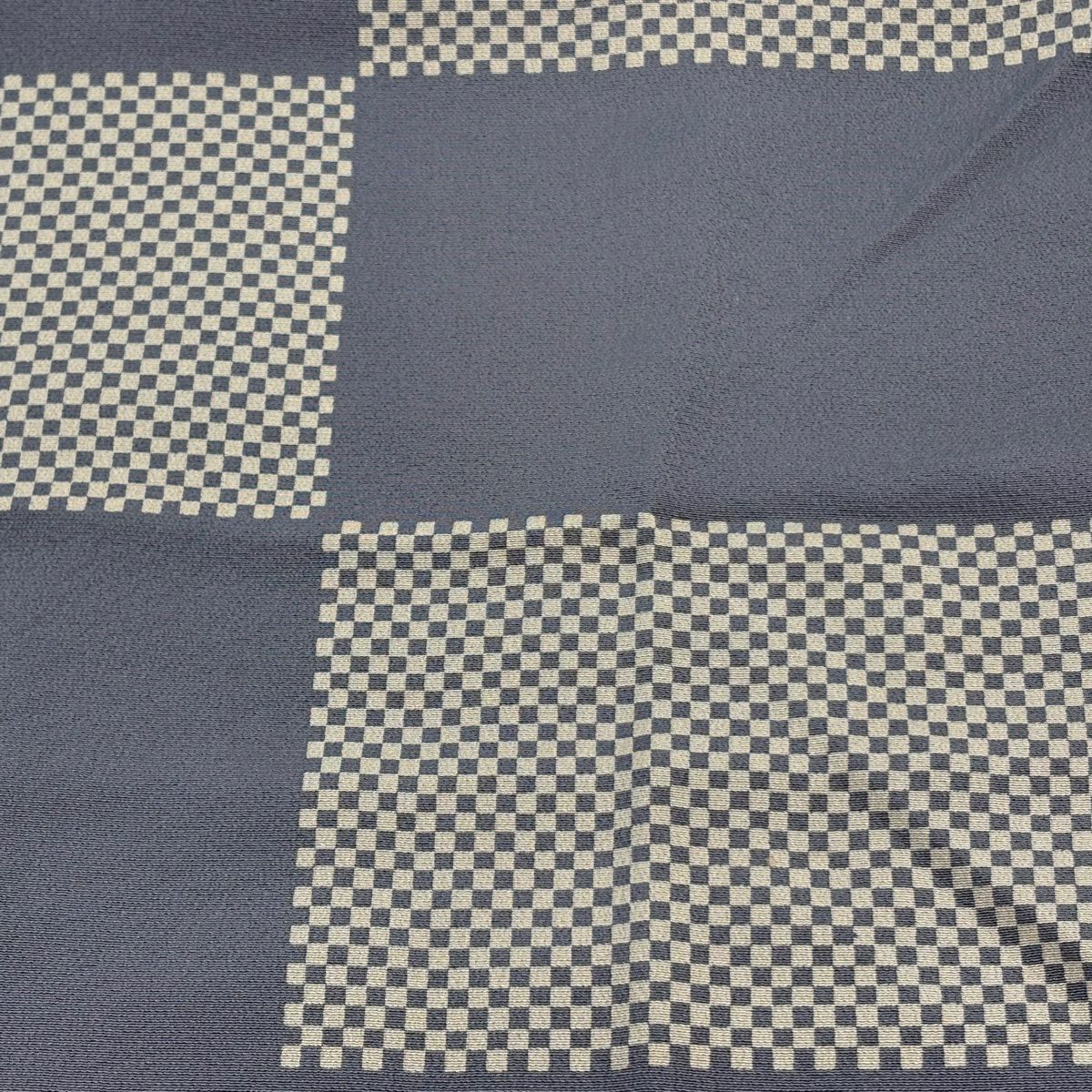 男着物 身丈86.5cm 裄丈67cm S 紬地 羽織 幾何学 藍色 正絹 優品