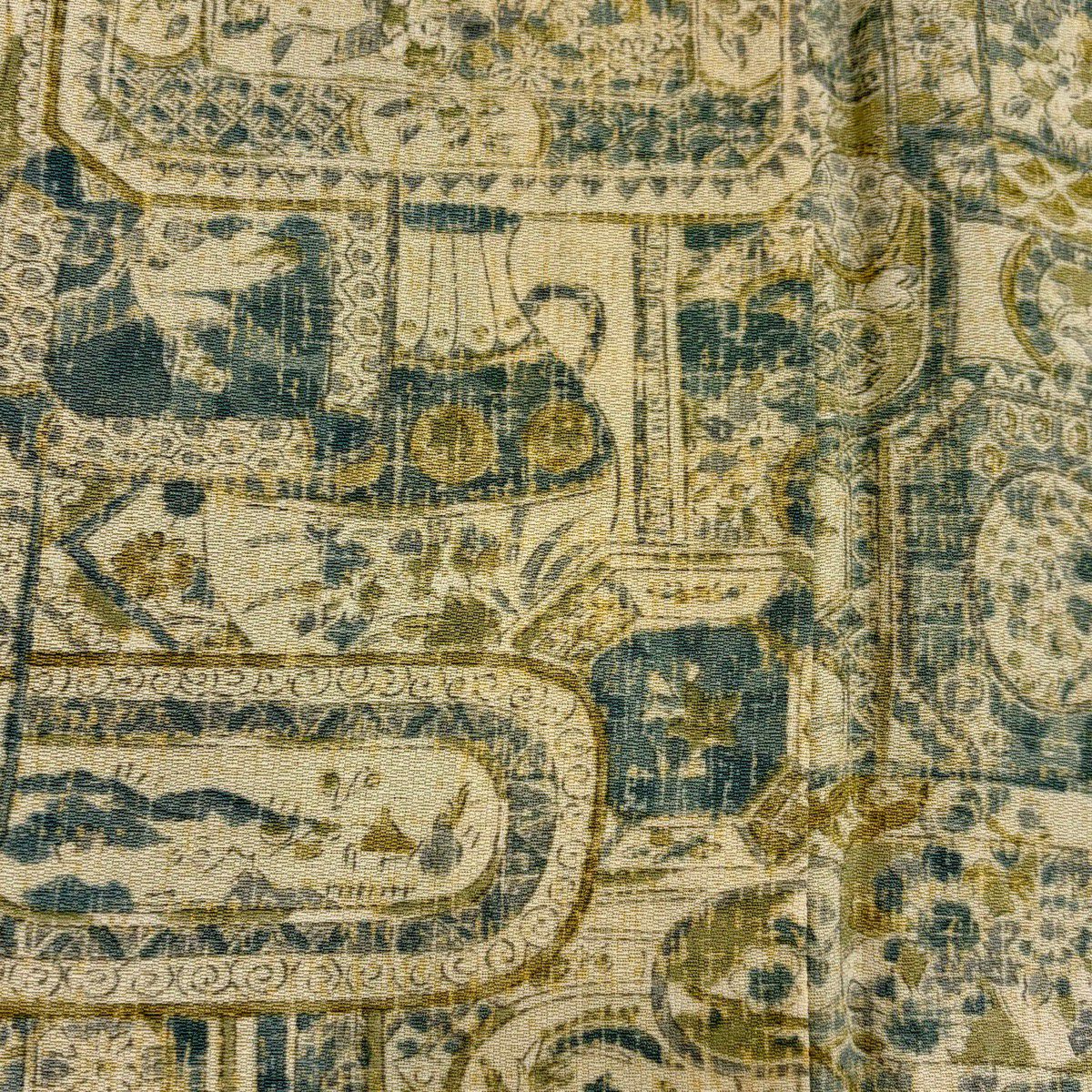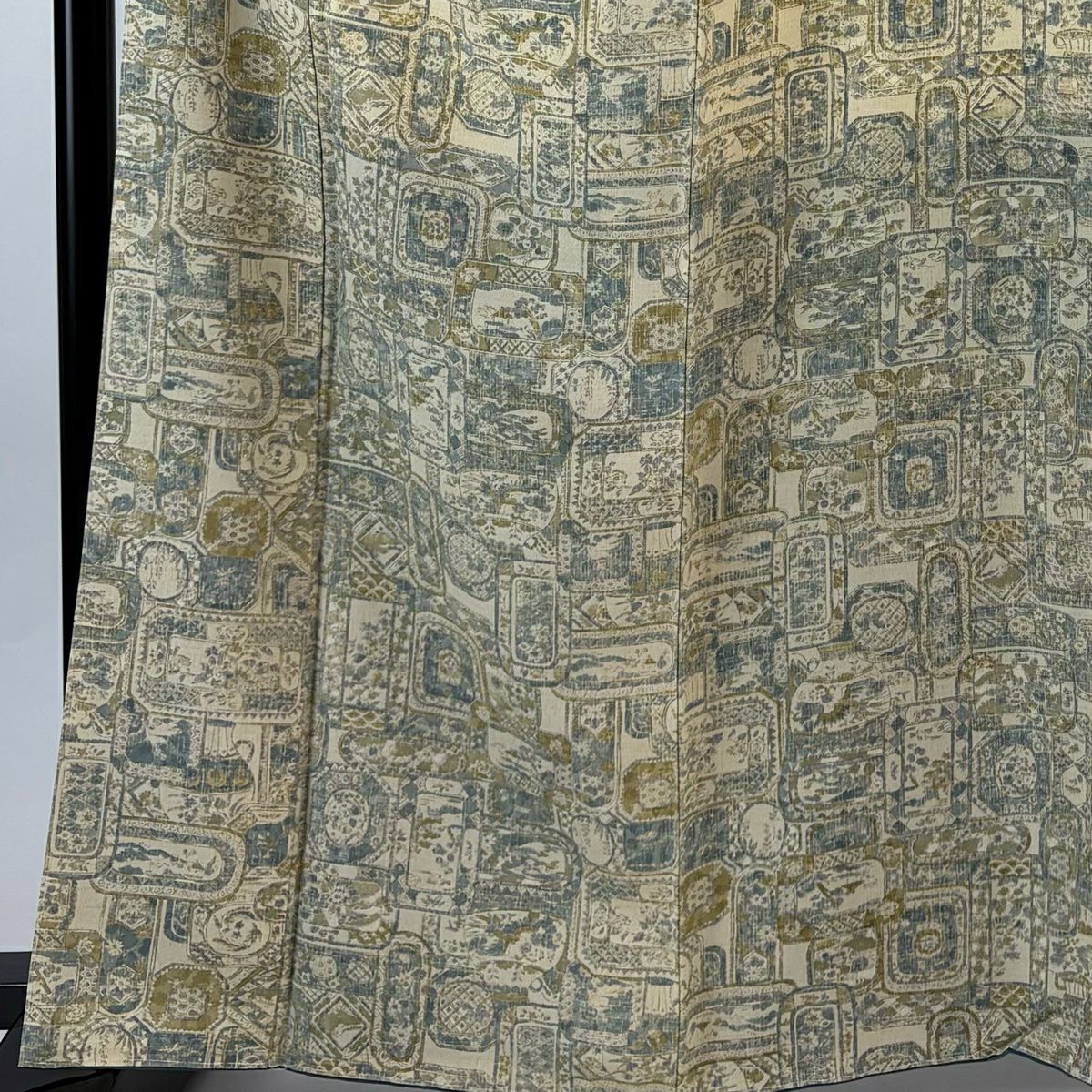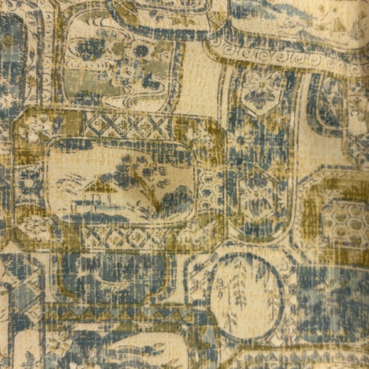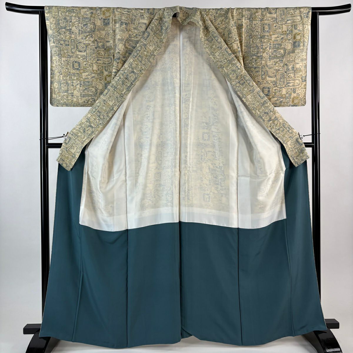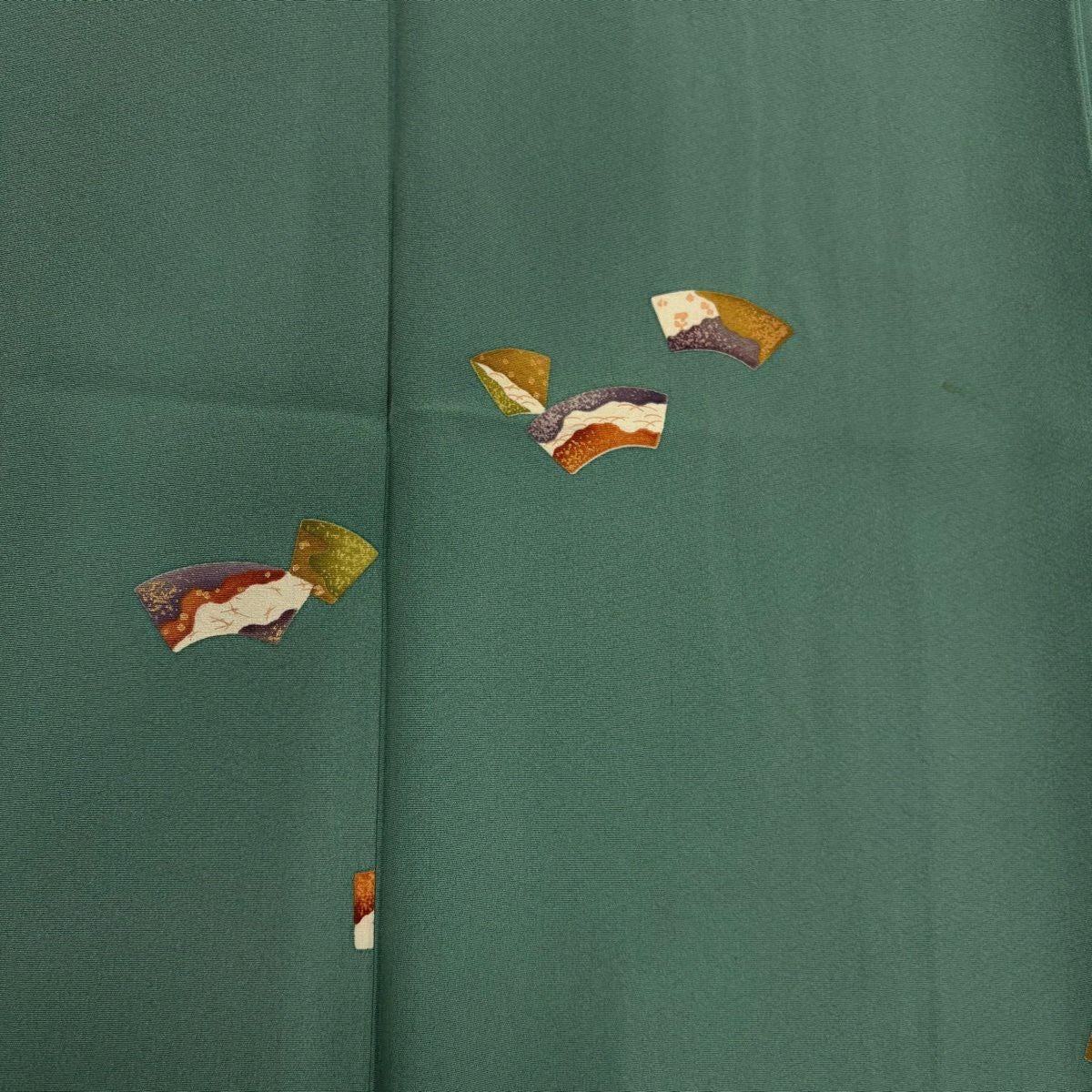 訪問着 身丈164cm 裄丈64.5cm M 袷 童 片輪車 茶緑色 正絹 優品