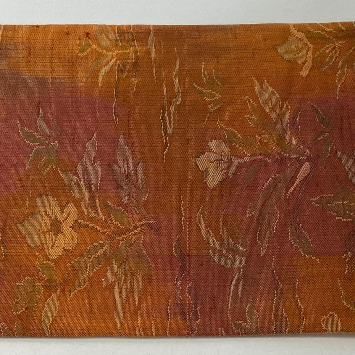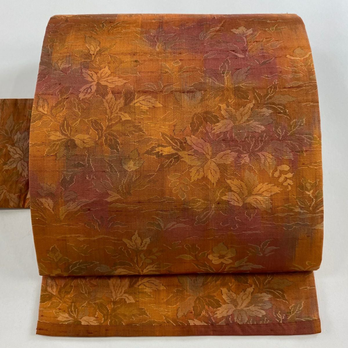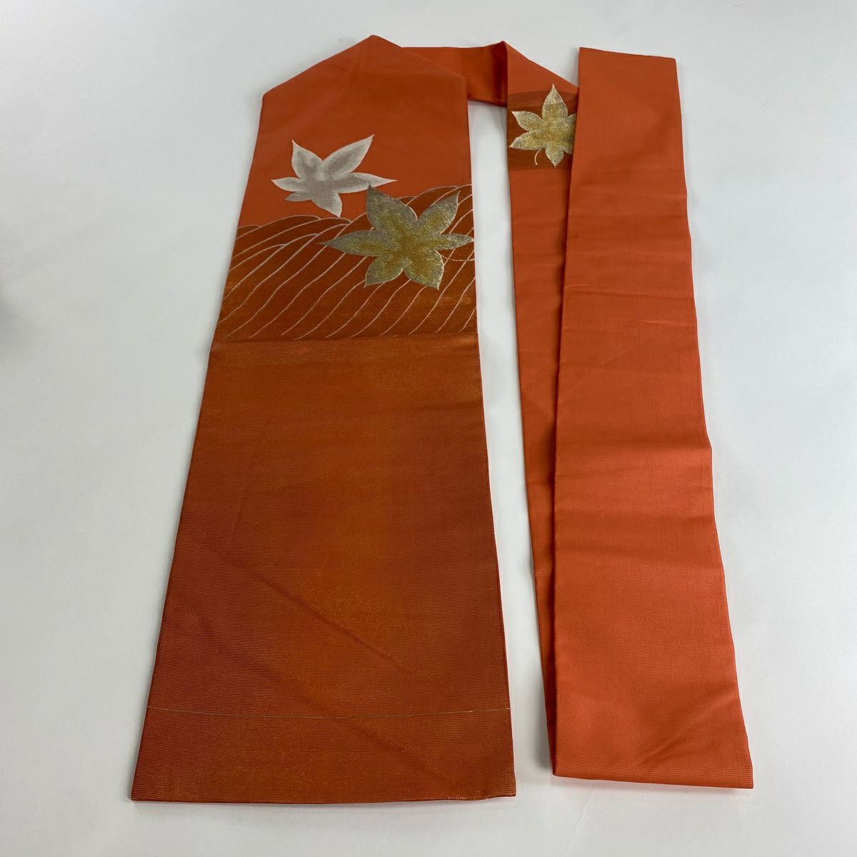 【在庫一掃】 名古屋帯 優品 夏帯 紗 葉柄 波 金銀糸 箔 オレンジ 正絹