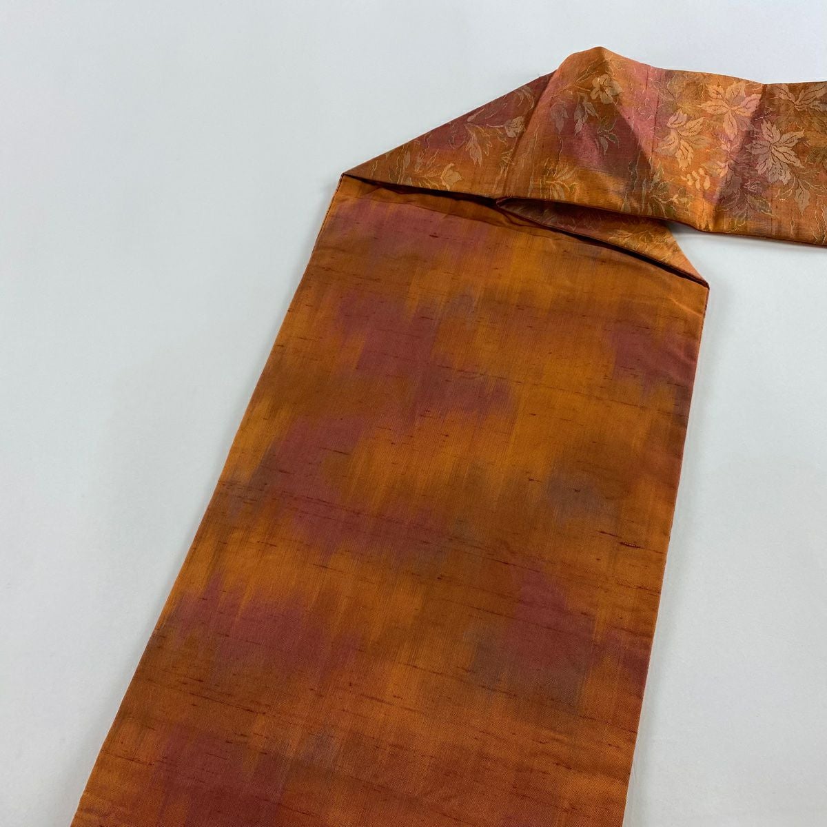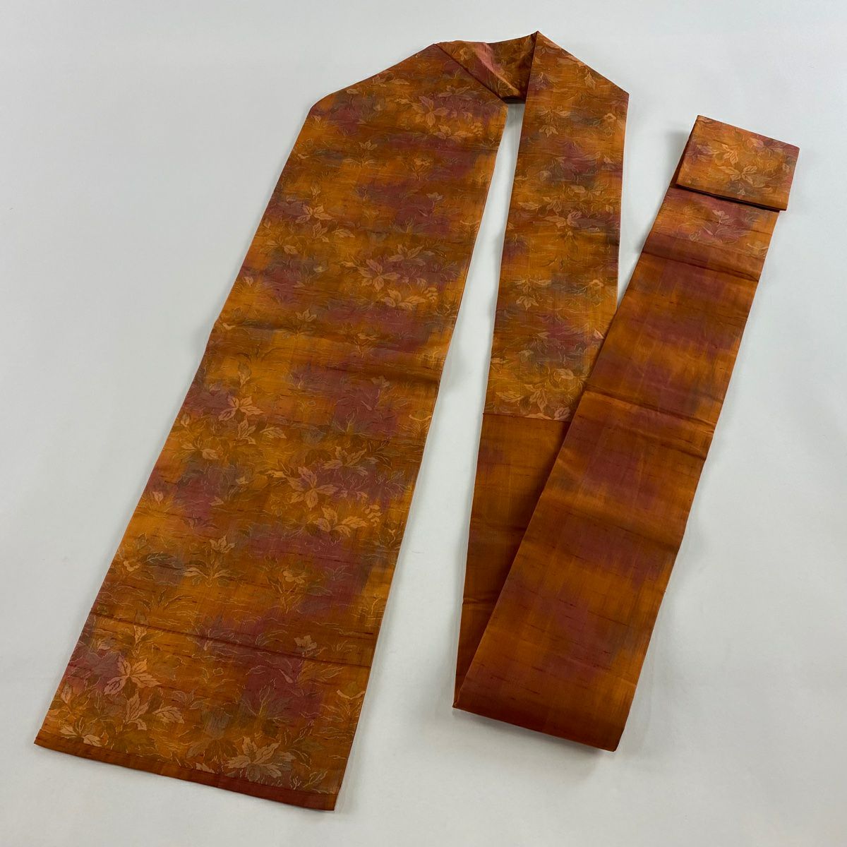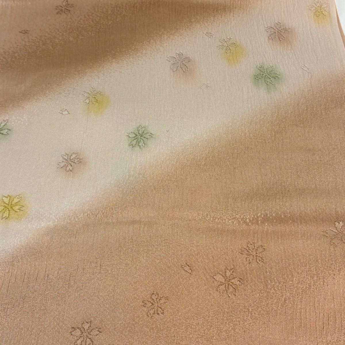【在庫一掃】 【美品】 名古屋帯 優品 関西仕立て 紬地 草花 オレンジ 正絹