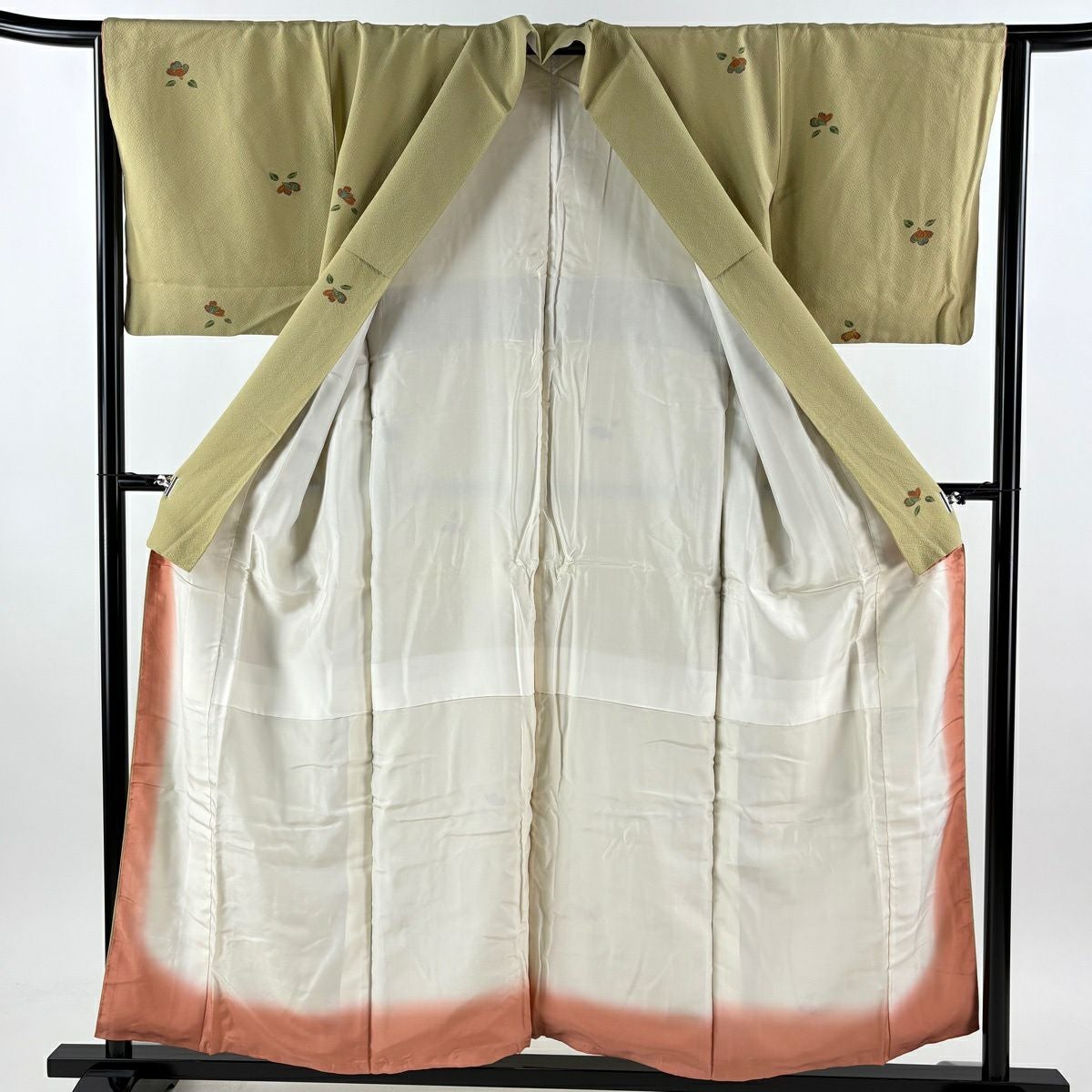 小紋 身丈164cm 裄丈63cm S 袷 枝花 ぼかし 薄オレンジ 正絹 優品