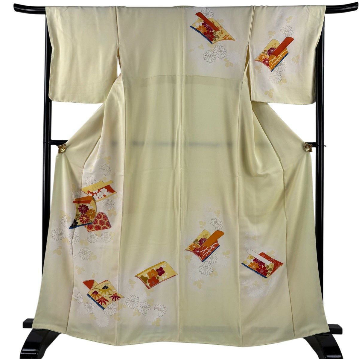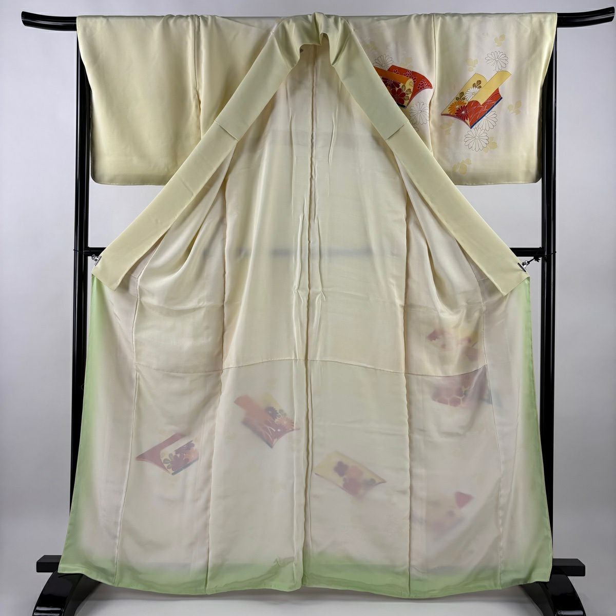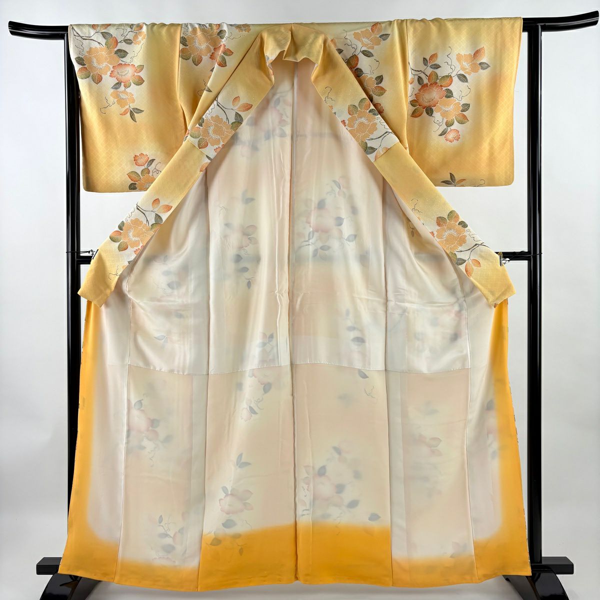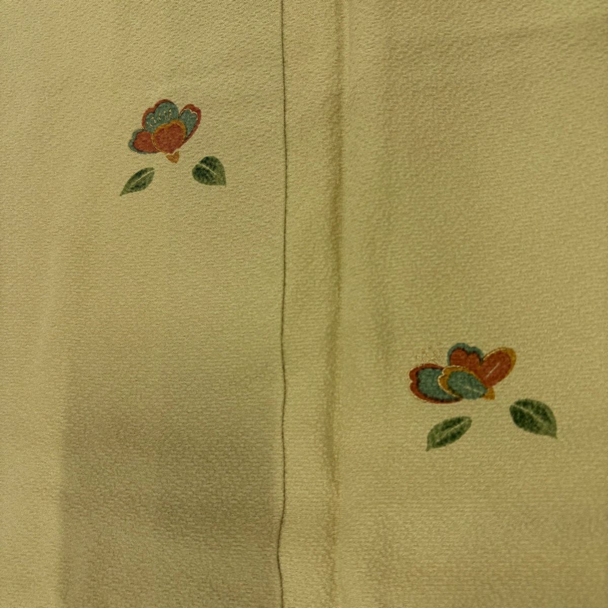 訪問着 身丈165cm 裄丈67cm M 袷 冊子 菊 金糸 金彩 薄黄 正絹 優品