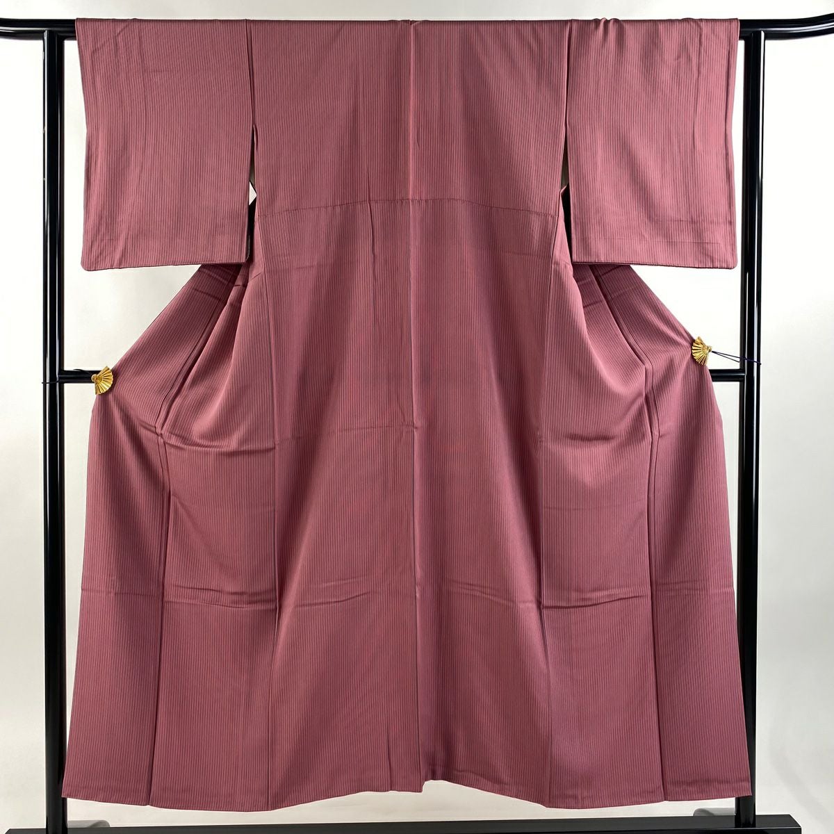 【在庫一掃】 小紋 身丈151cm 裄丈62cm S 袷 縦縞 赤紫 正絹 優品