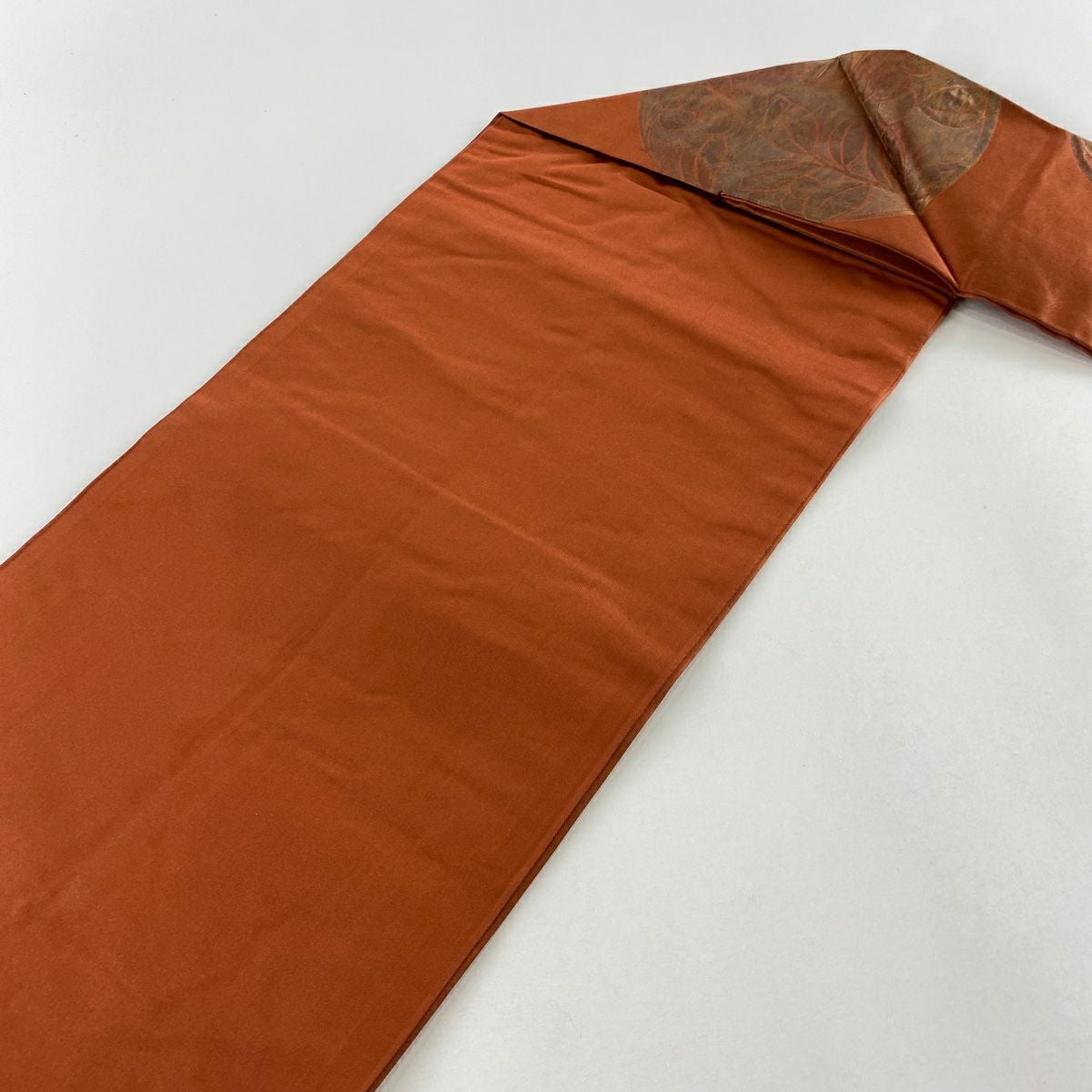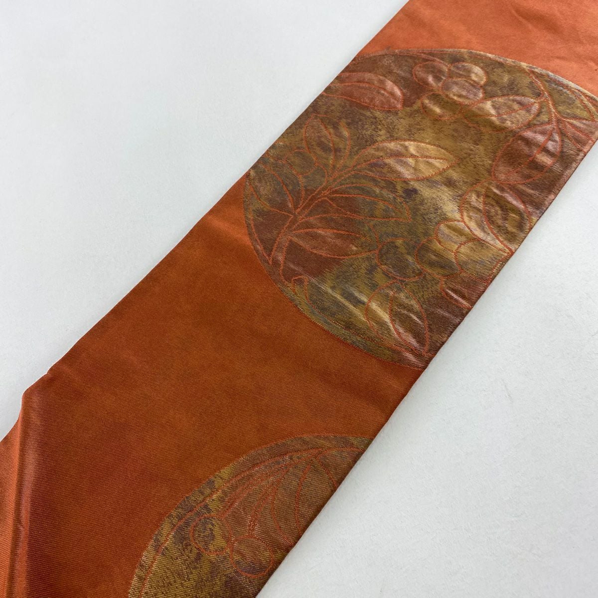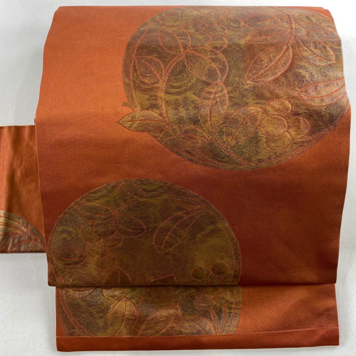 【在庫一掃】 【美品】 名古屋帯 優品 関西仕立て 丸文 葉と実 箔 赤茶 正絹