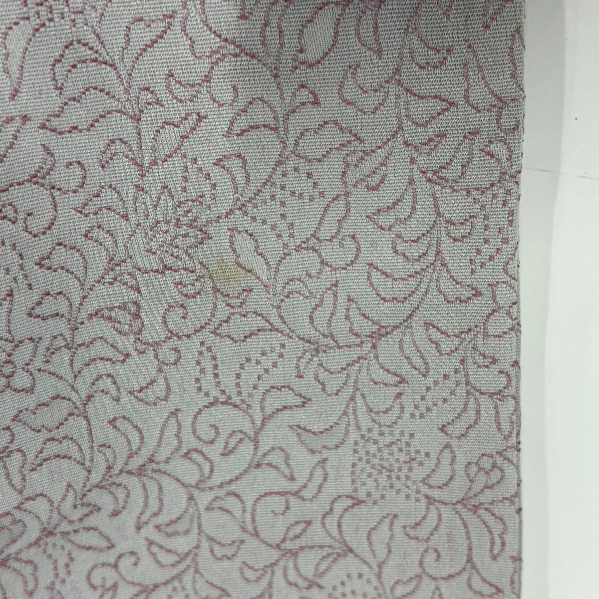 【在庫一掃】 【美品】 名古屋帯 優品 八寸名古屋帯 紬地 霞 幾何学模様 赤紫 正絹