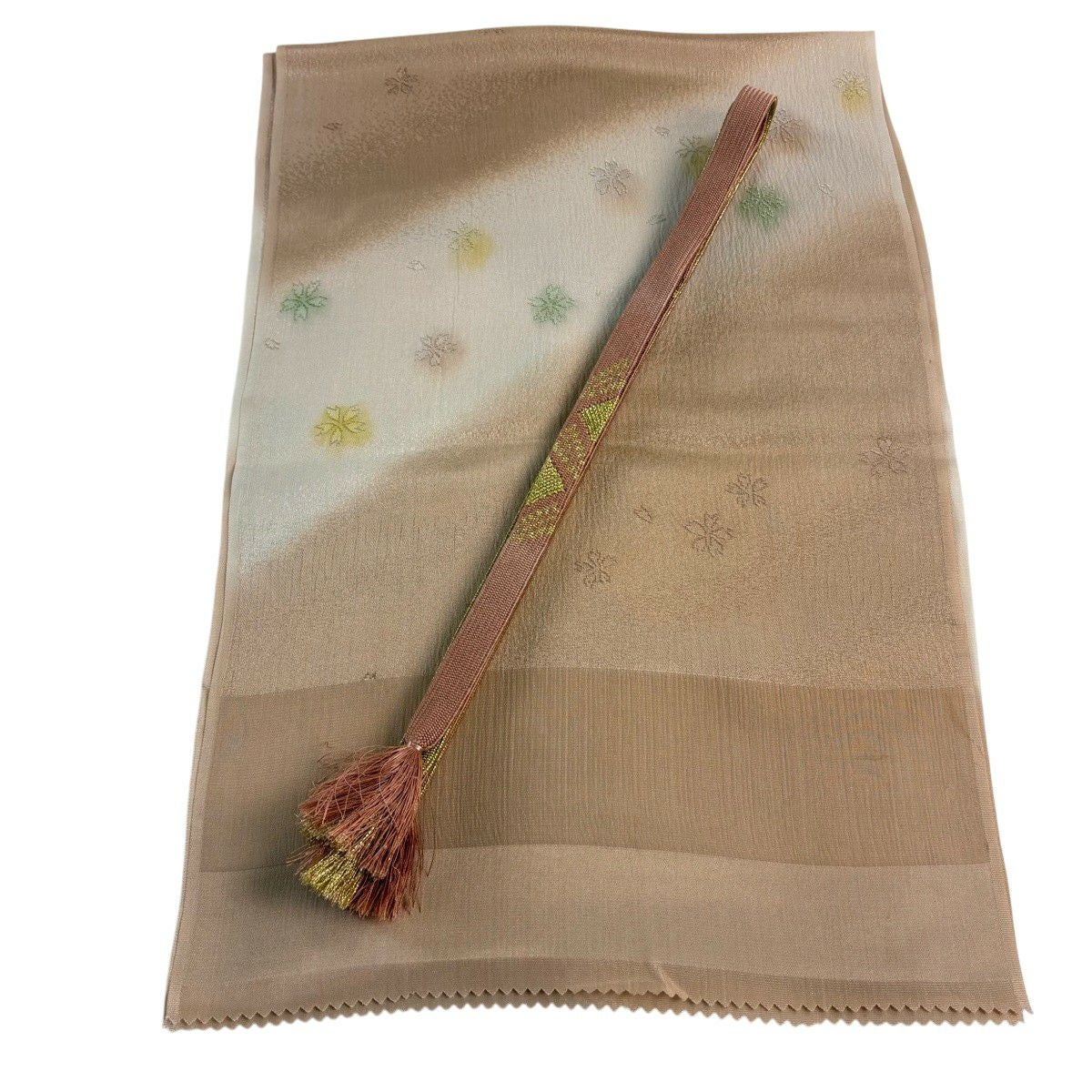 【美品】和装セット 優品 帯締め帯揚げ2点セット 花柄 地紋 薄茶色 正絹 和装小物