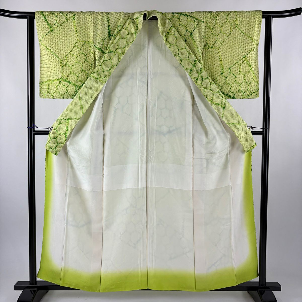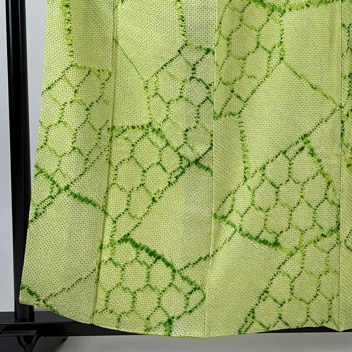 小紋 身丈158.5cm 裄丈62cm S 袷 幾何学 総絞り 黄緑色 正絹 優品