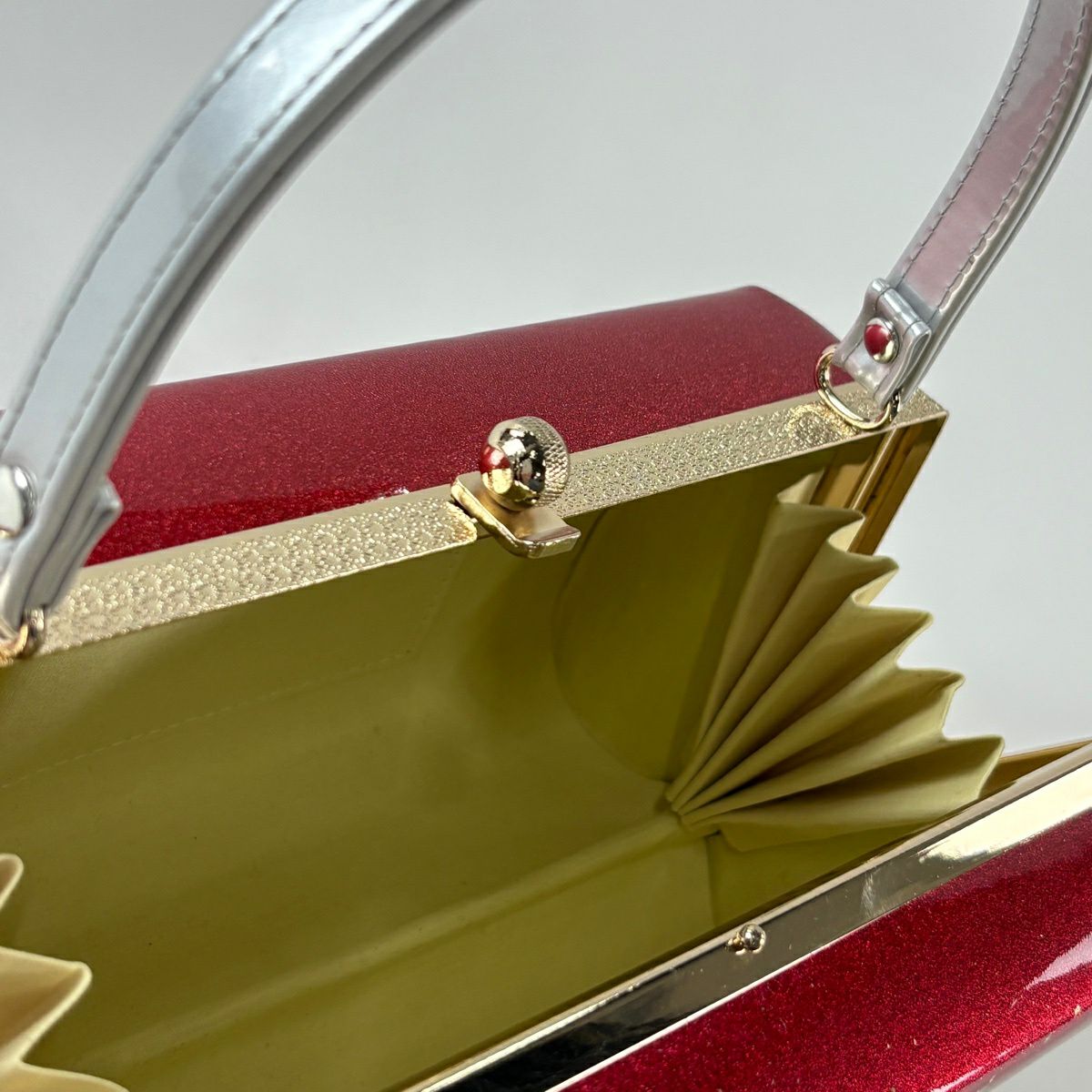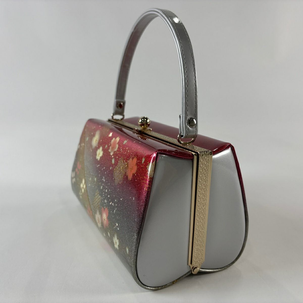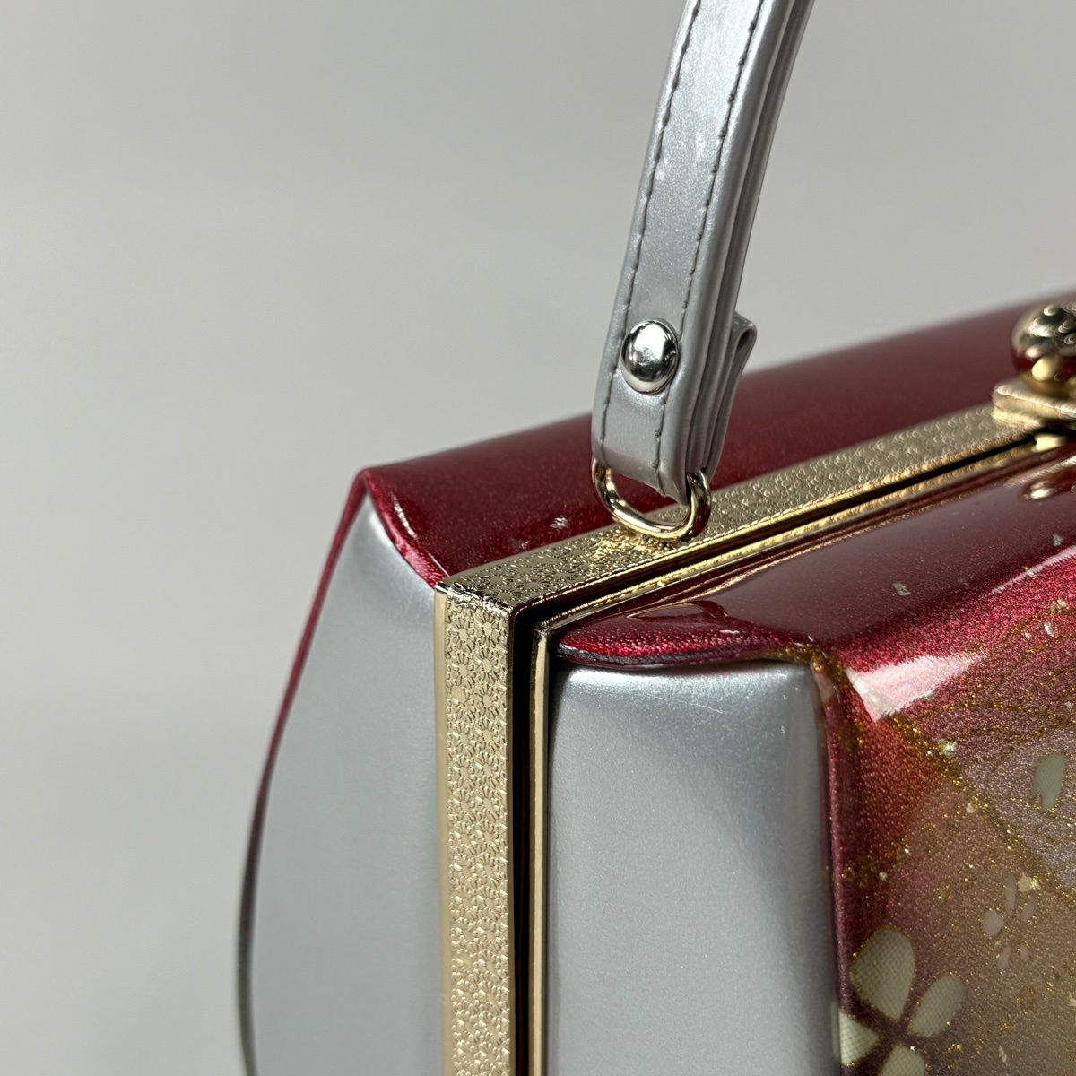 【美品】和装バッグ 優品 フォーマル 桜 波 金銀彩 赤 エナメル 和装小物