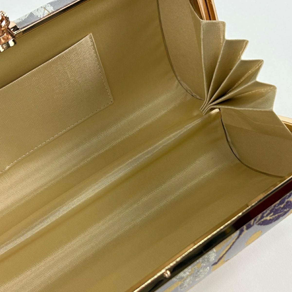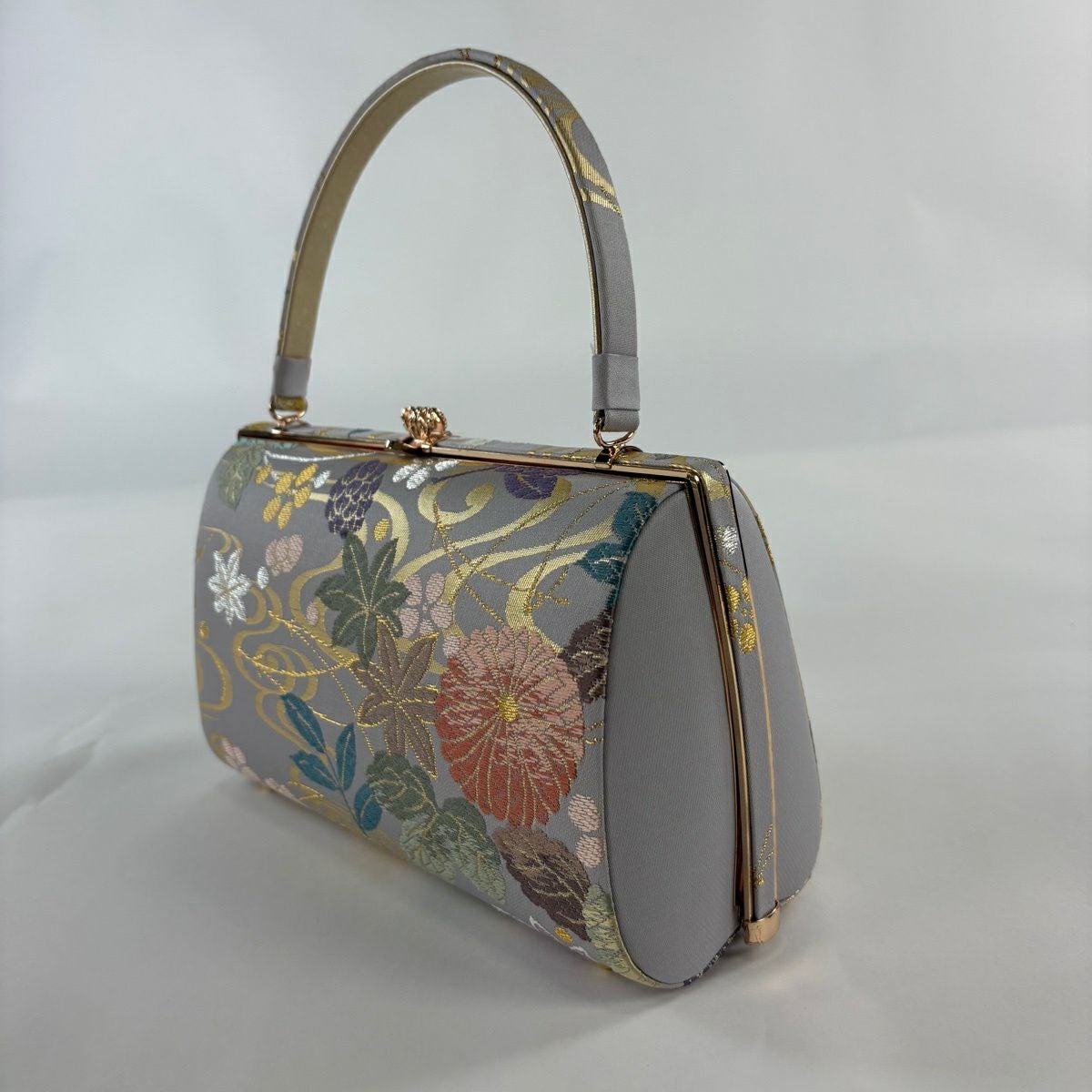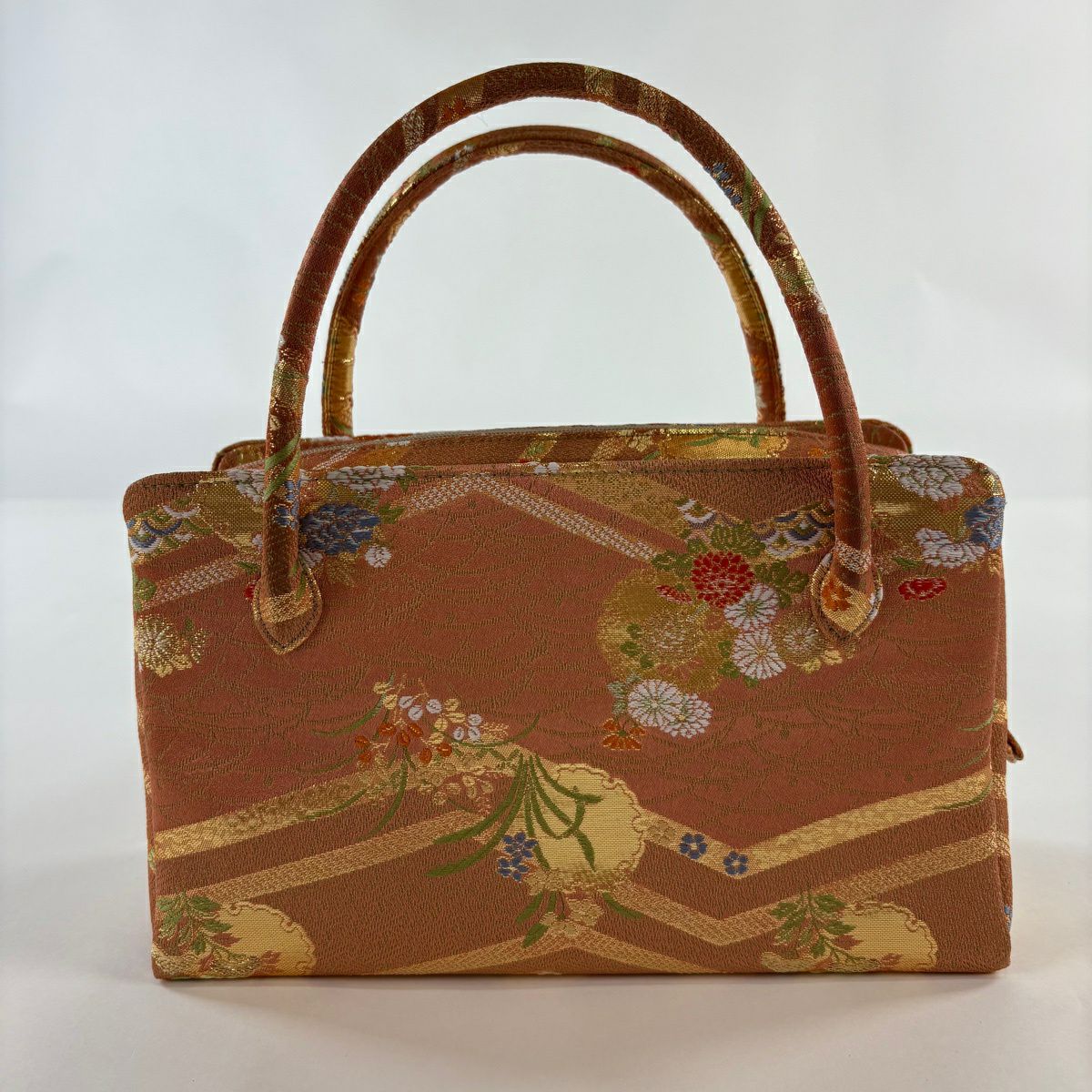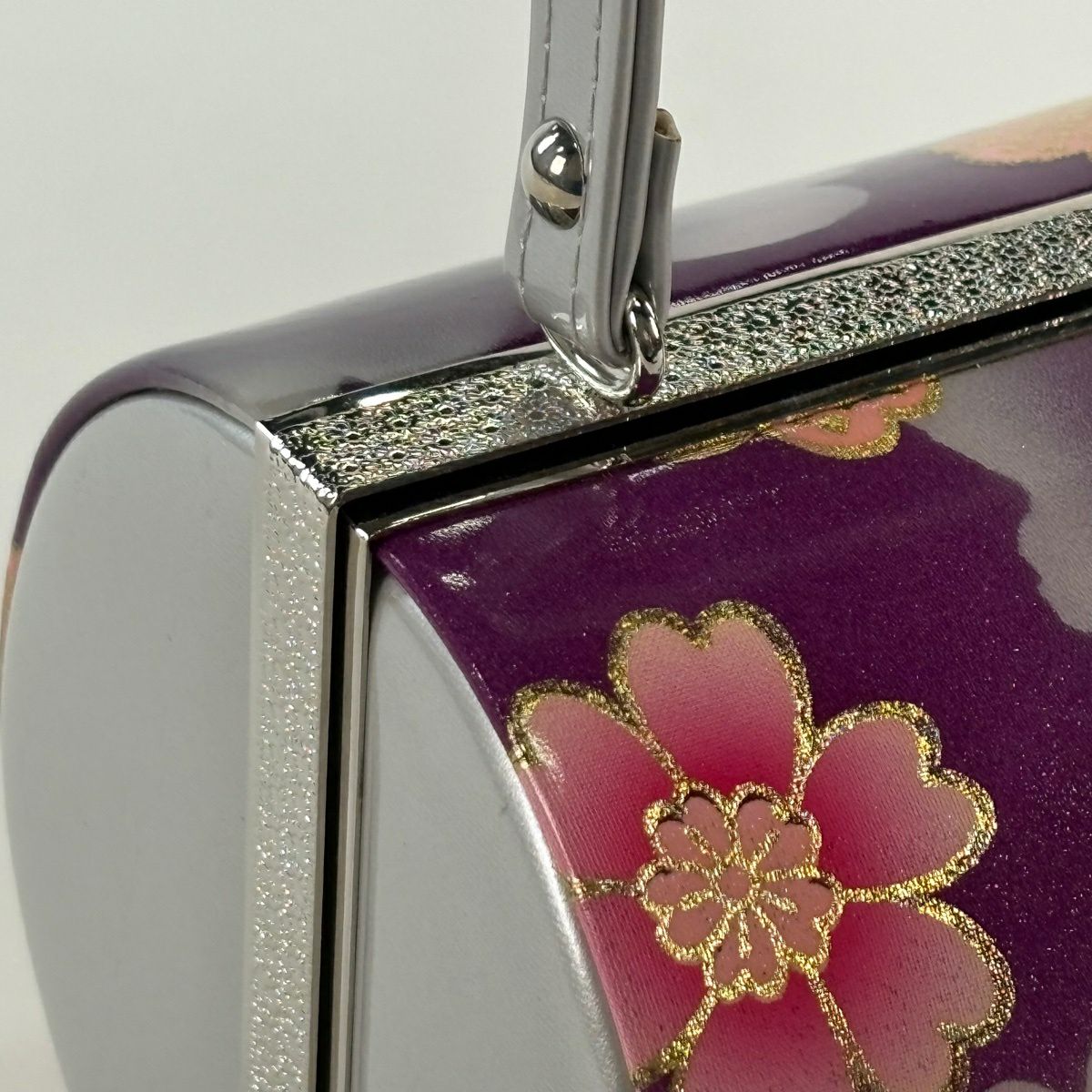 【美品】和装バッグ 優品 フォーマル 桜 波 金銀彩 赤 エナメル 和装小物