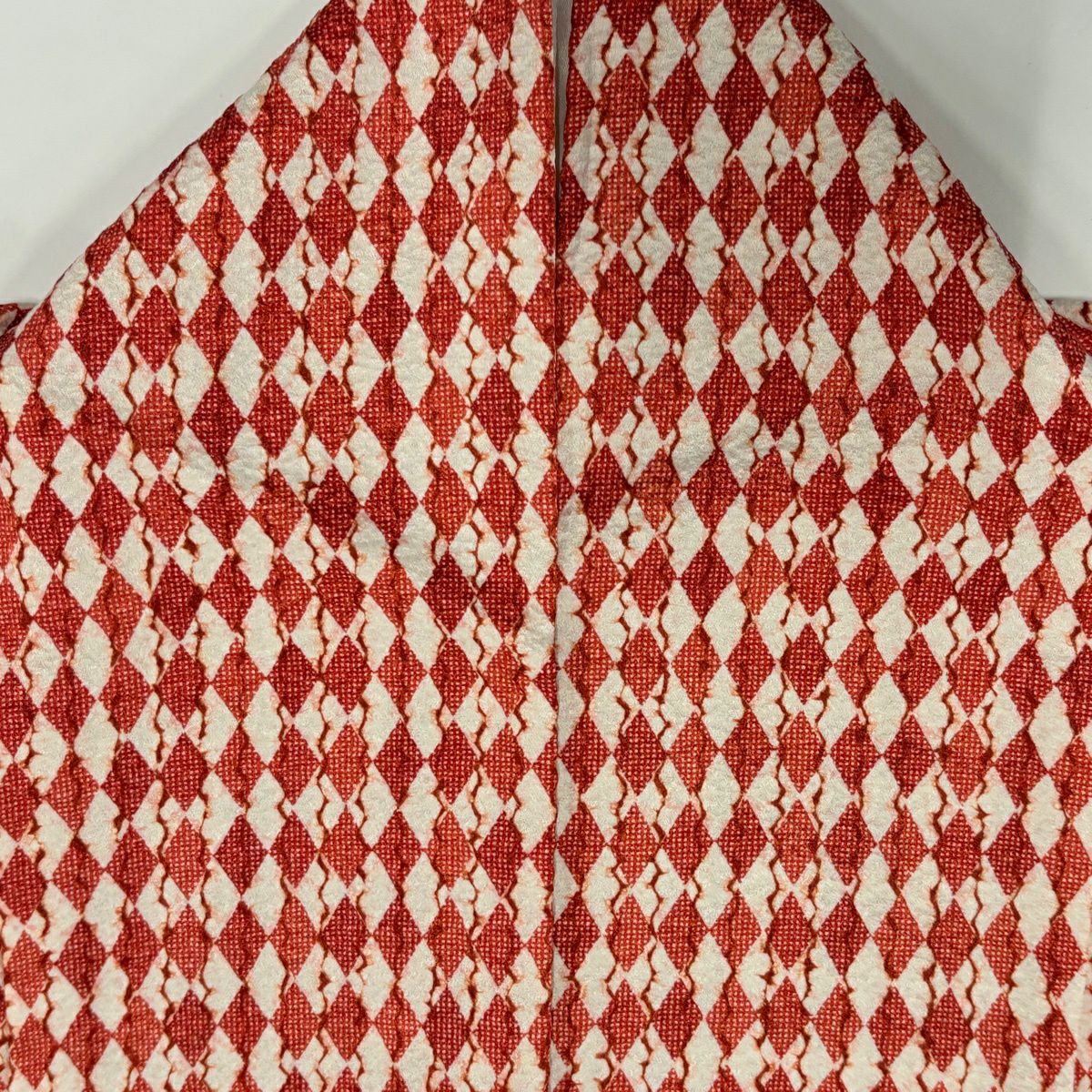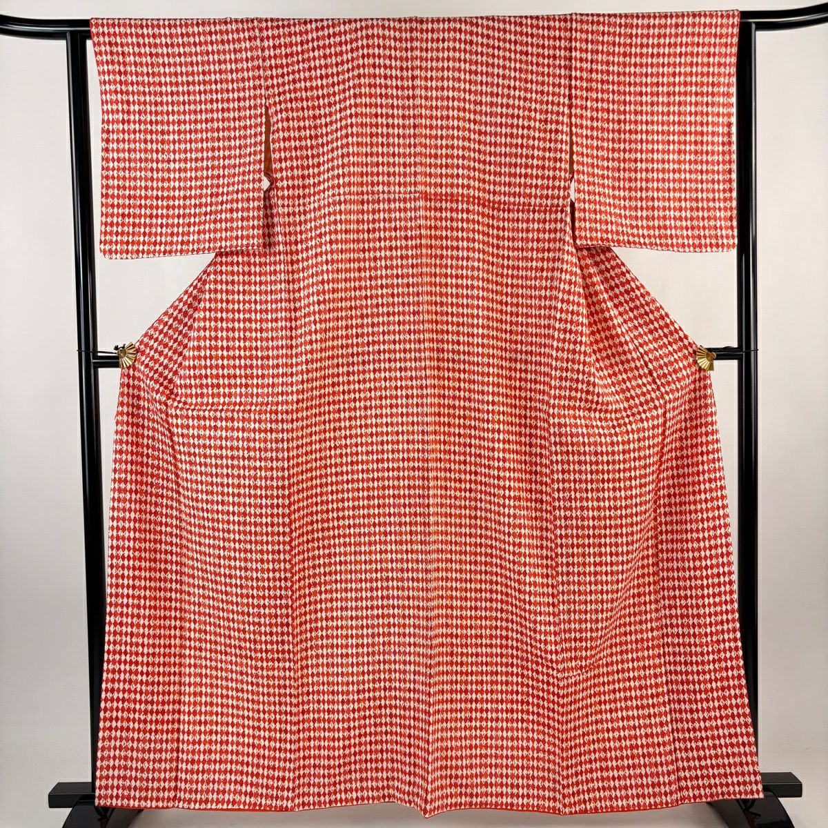 【美品】 小紋 身丈162.5cm 裄丈63cm S 袷 菱 絞り 赤 正絹 優品