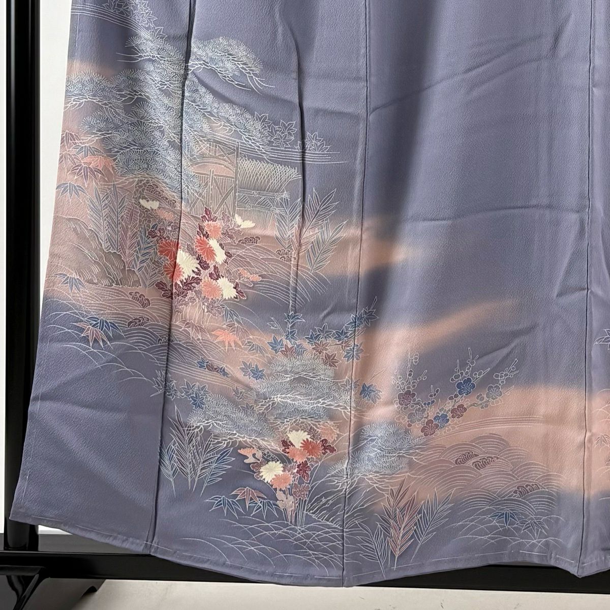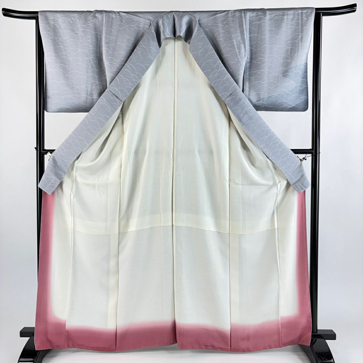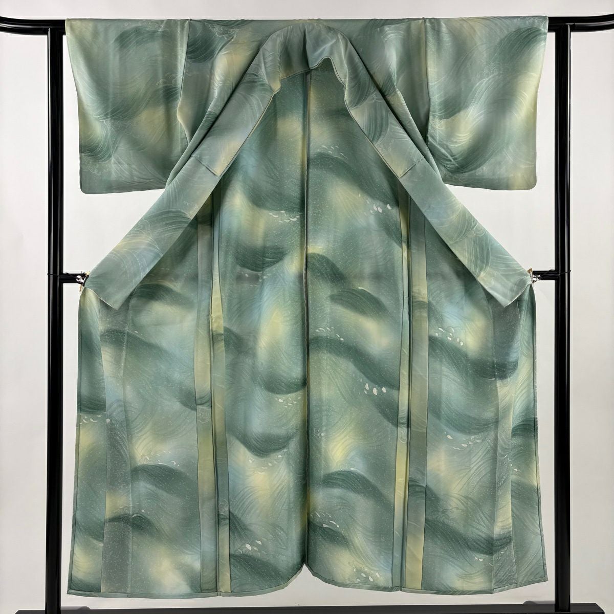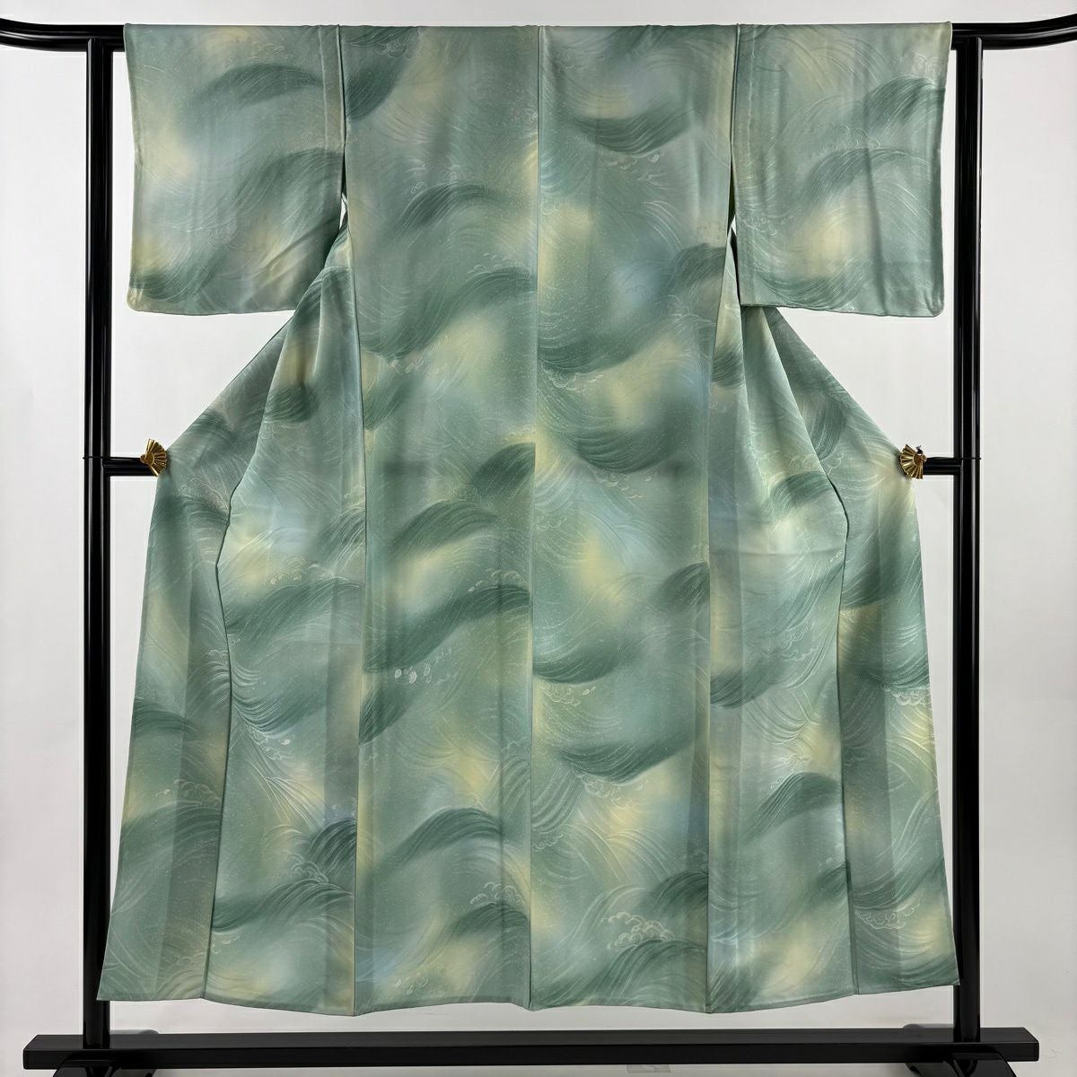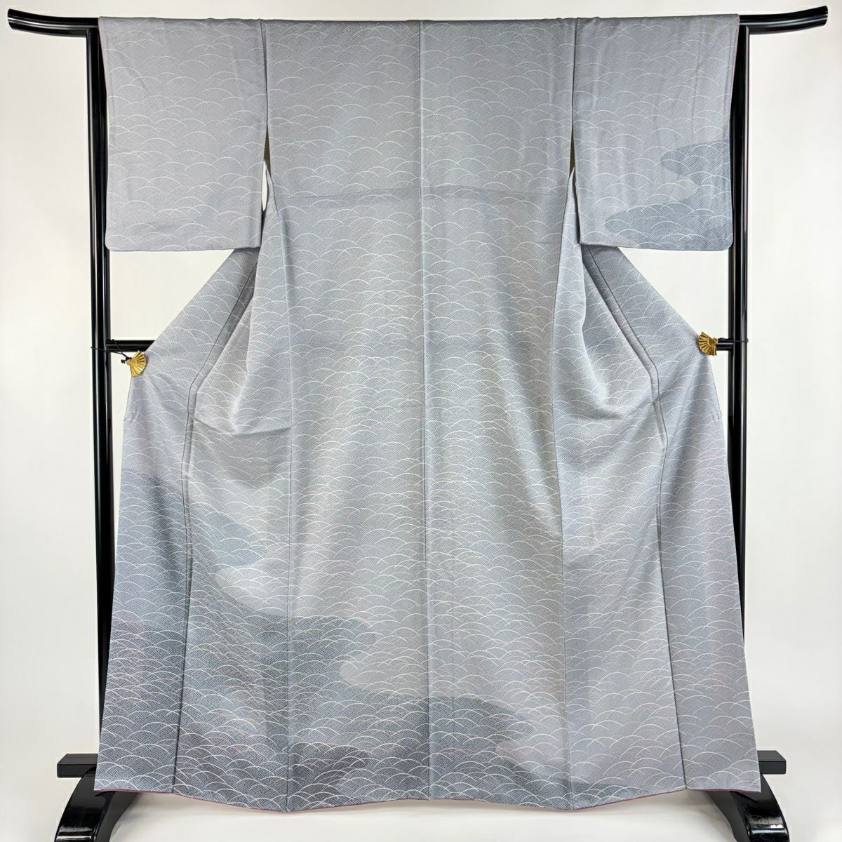 【美品】 付下げ 身丈165cm 裄丈63.5cm S 袷 芝 波 青灰色 正絹 優品