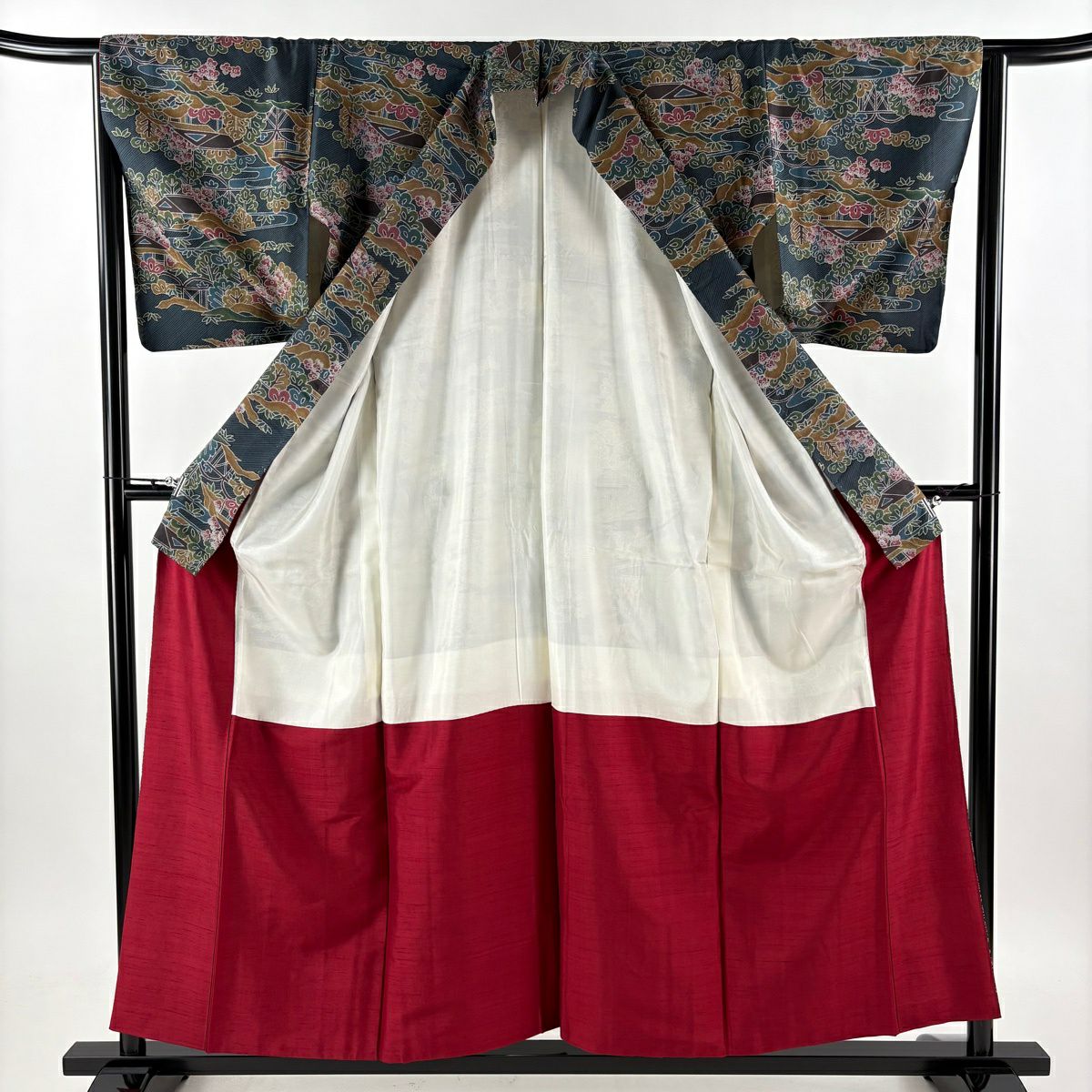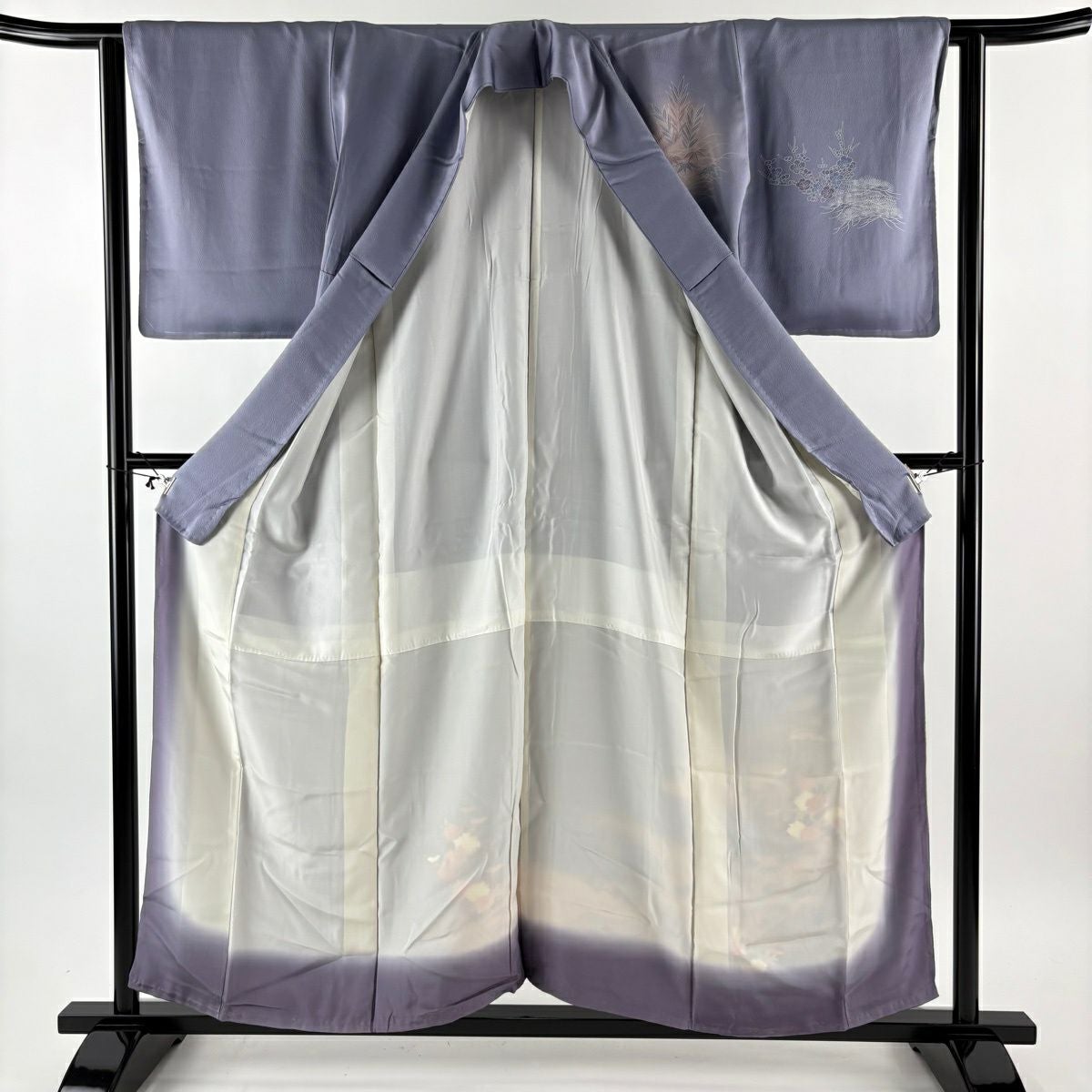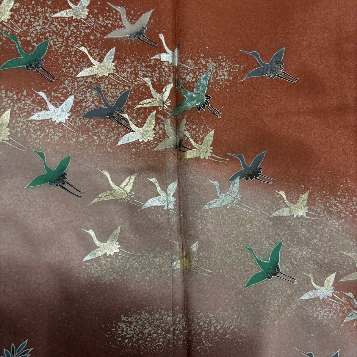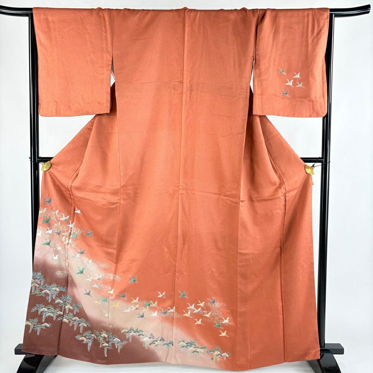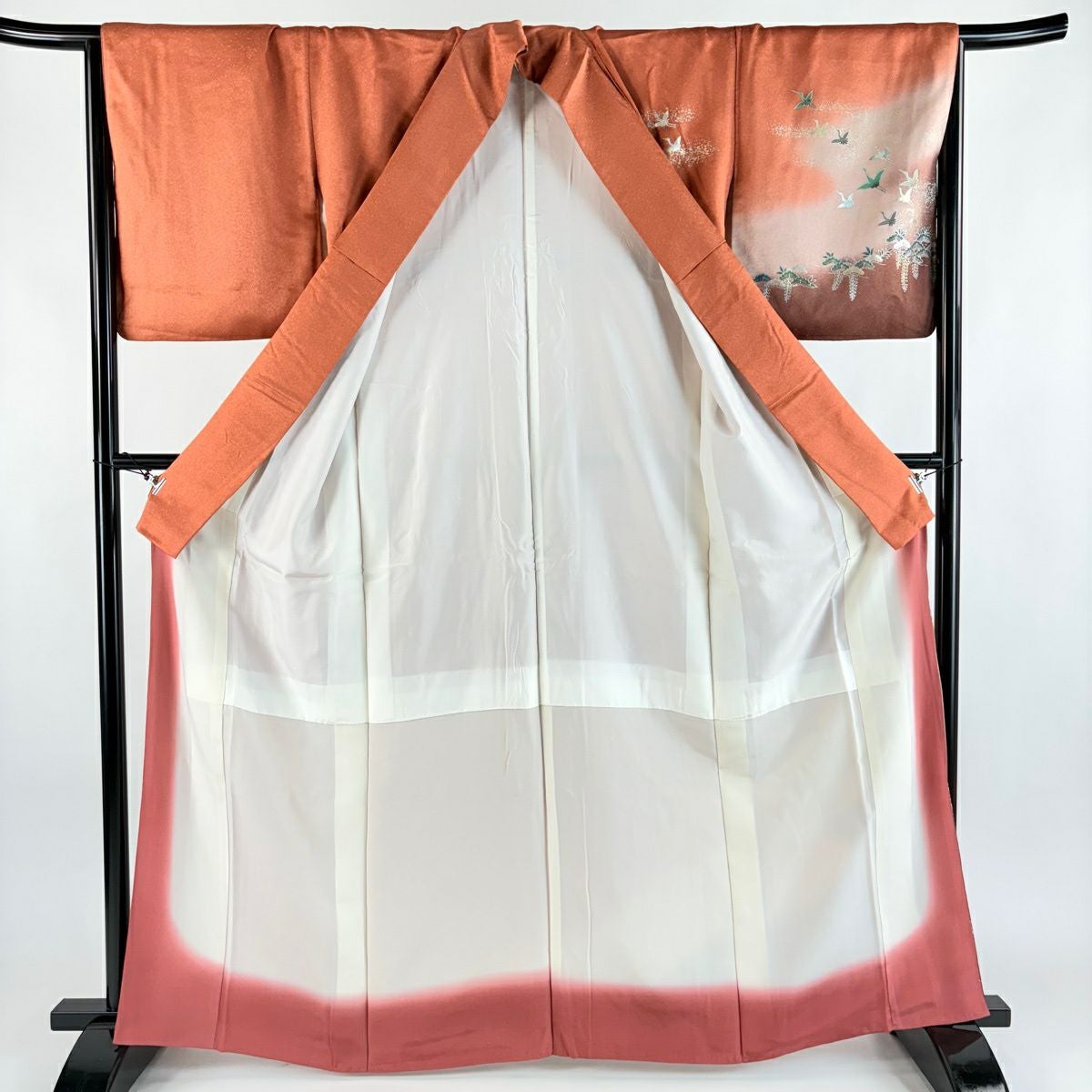 付下げ 身丈165cm 裄丈67cm M 袷 鶴 松 螺鈿 金銀彩 赤茶 正絹 優品