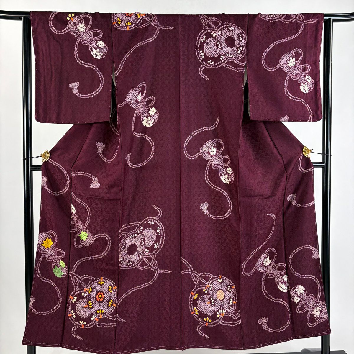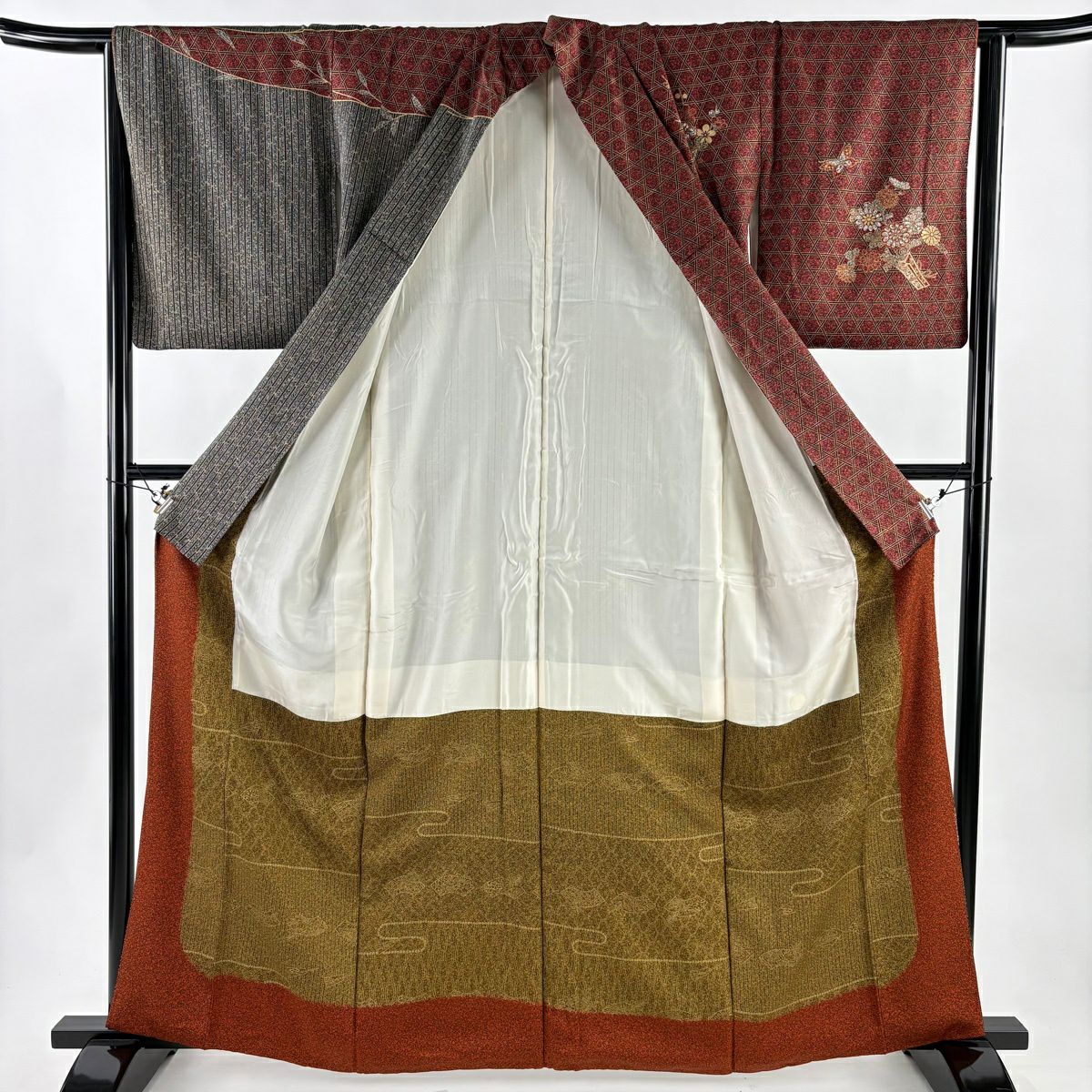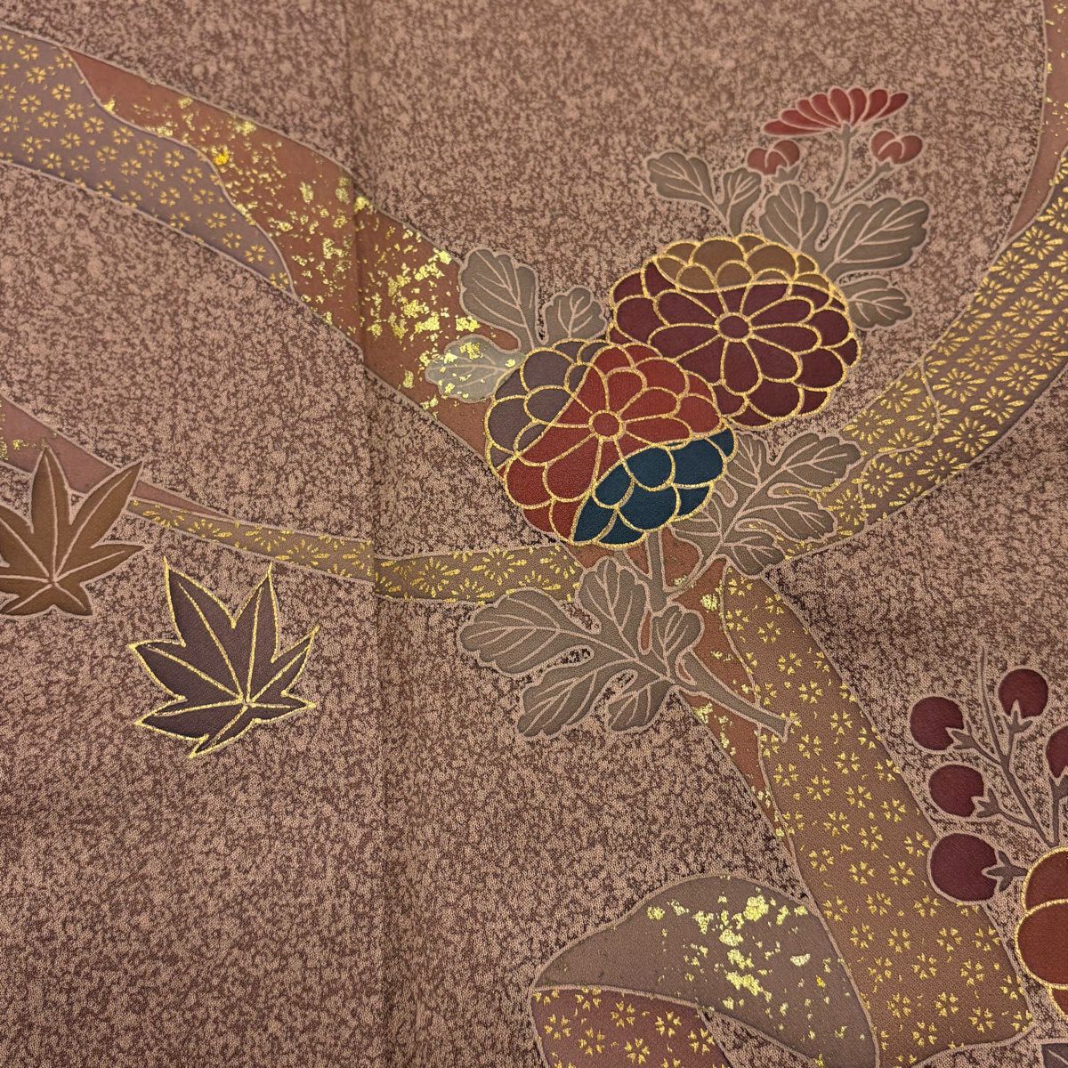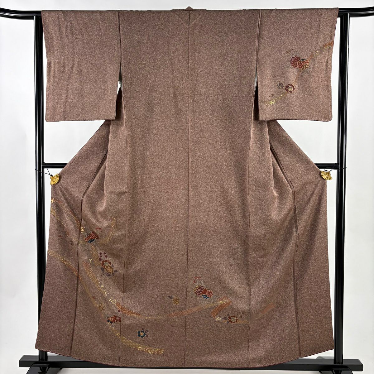 訪問着 身丈158cm 裄丈62.5cm S 袷 蔓帯 菊 金彩 小豆色 正絹 優品