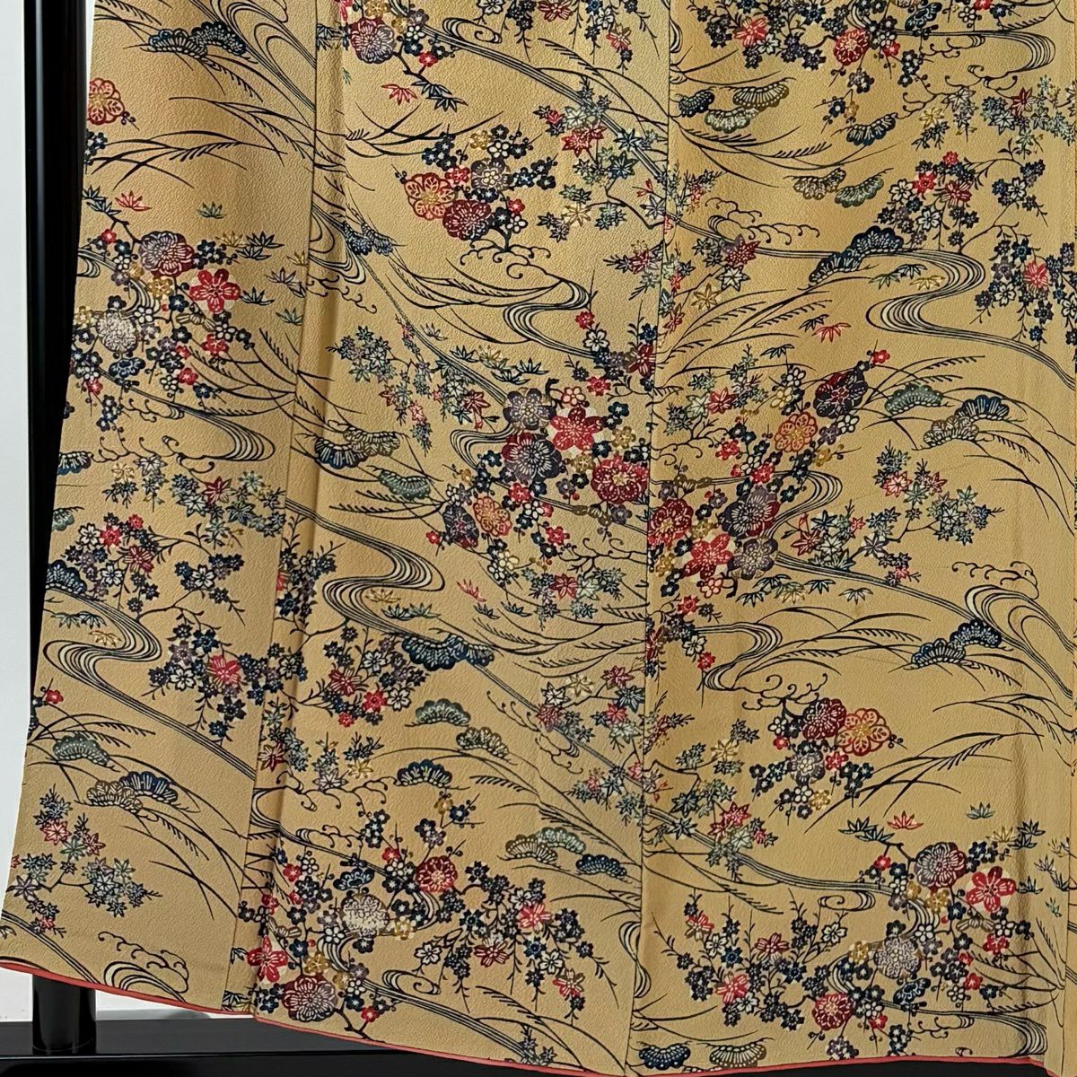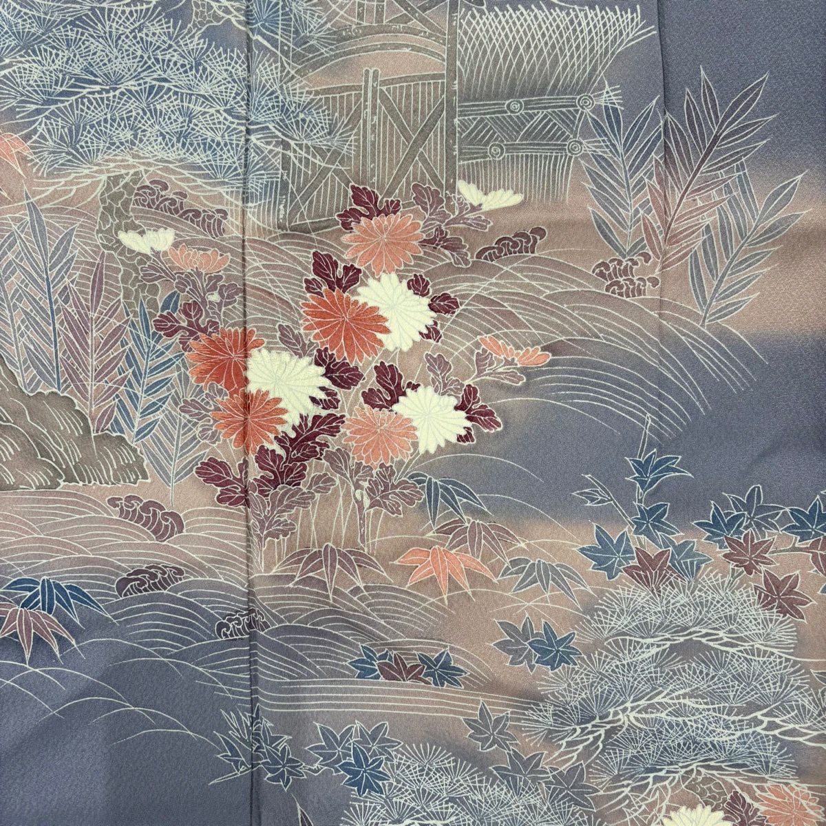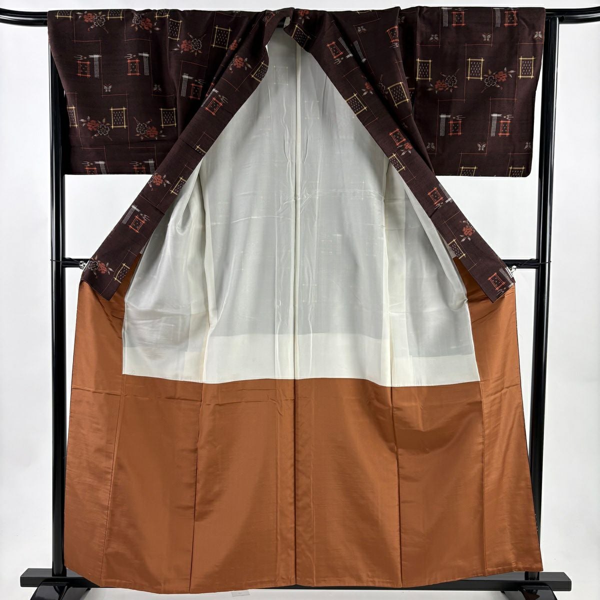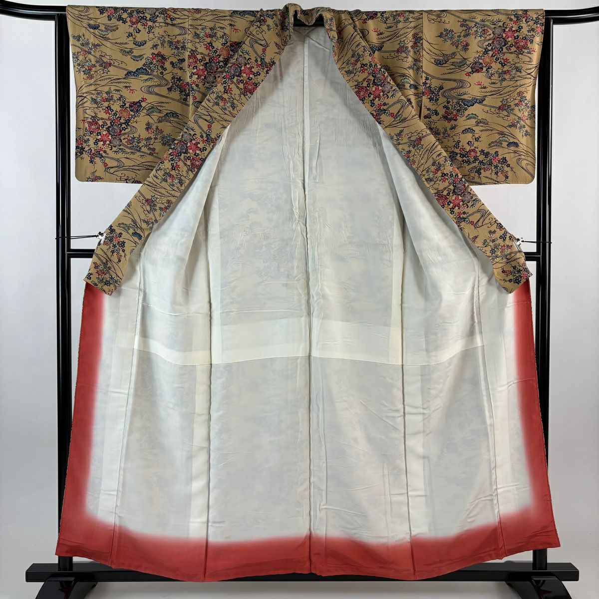 訪問着 身丈158cm 裄丈62.5cm S 袷 蔓帯 菊 金彩 小豆色 正絹 優品