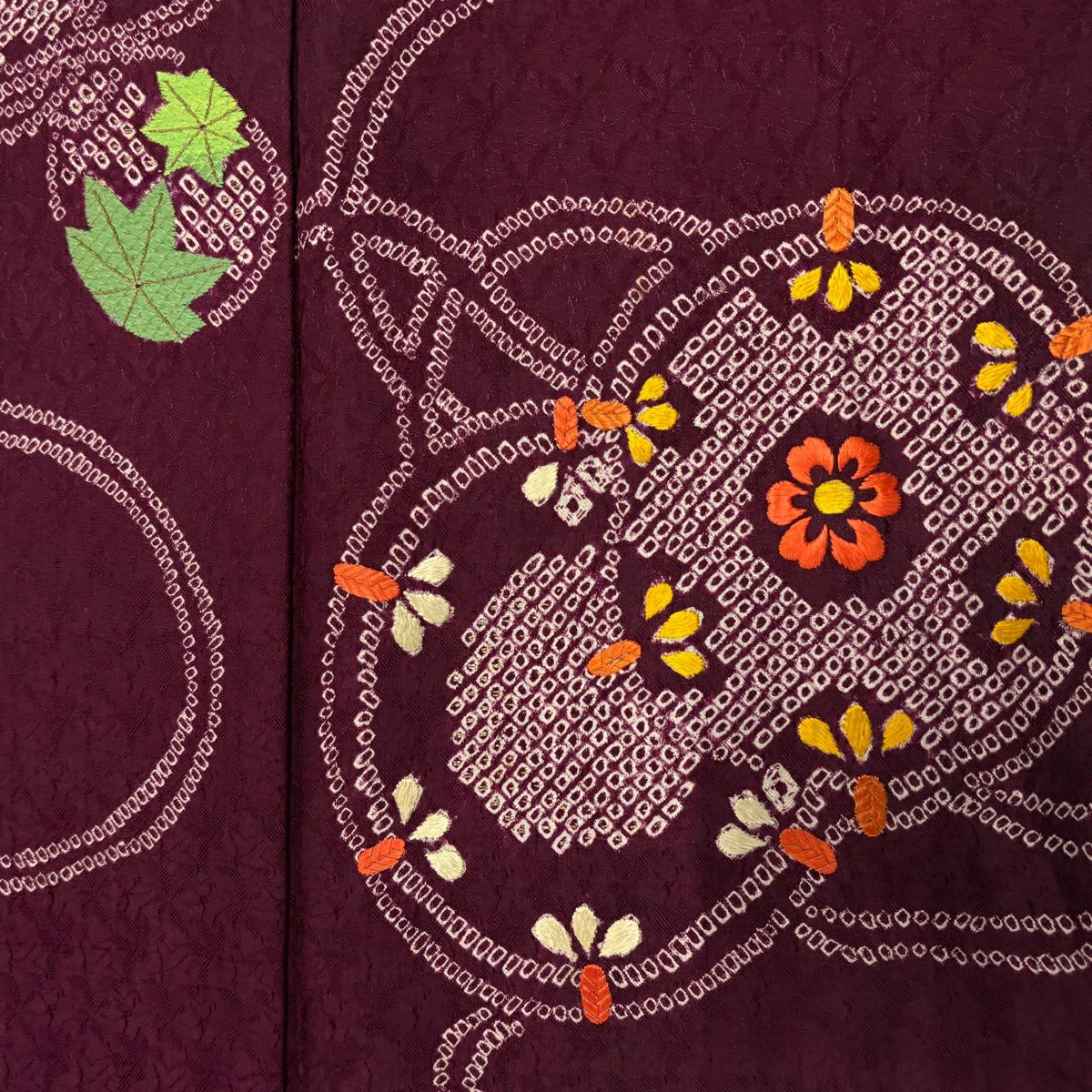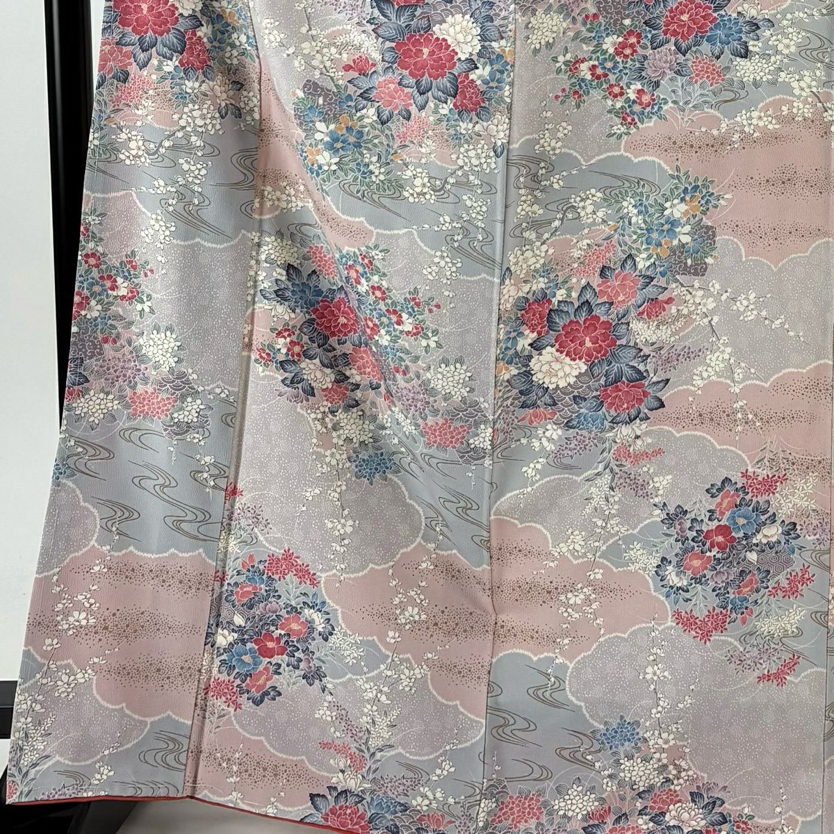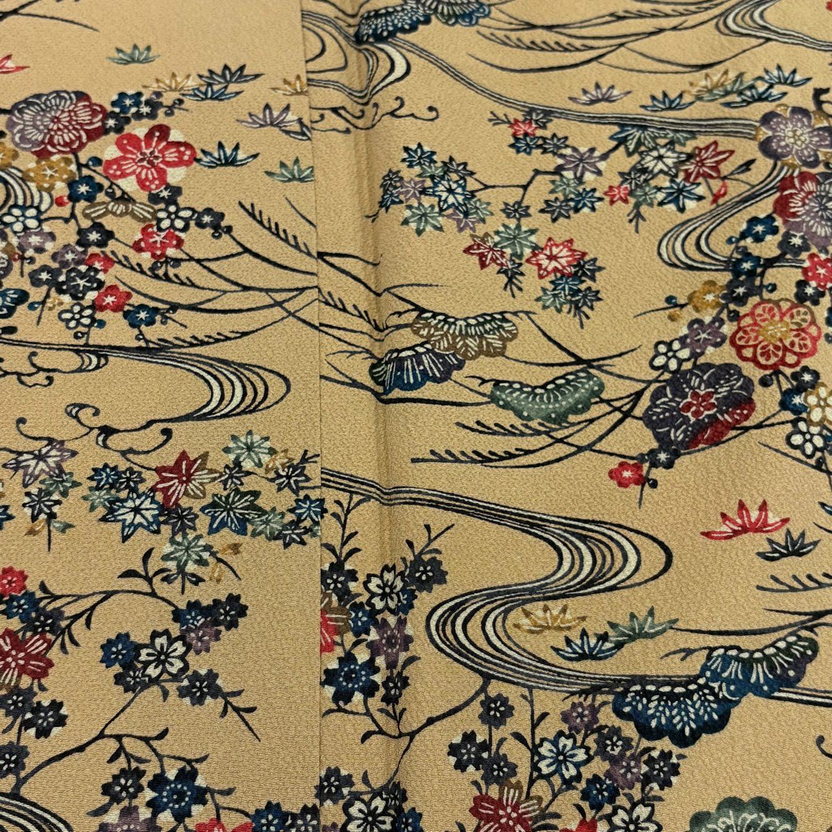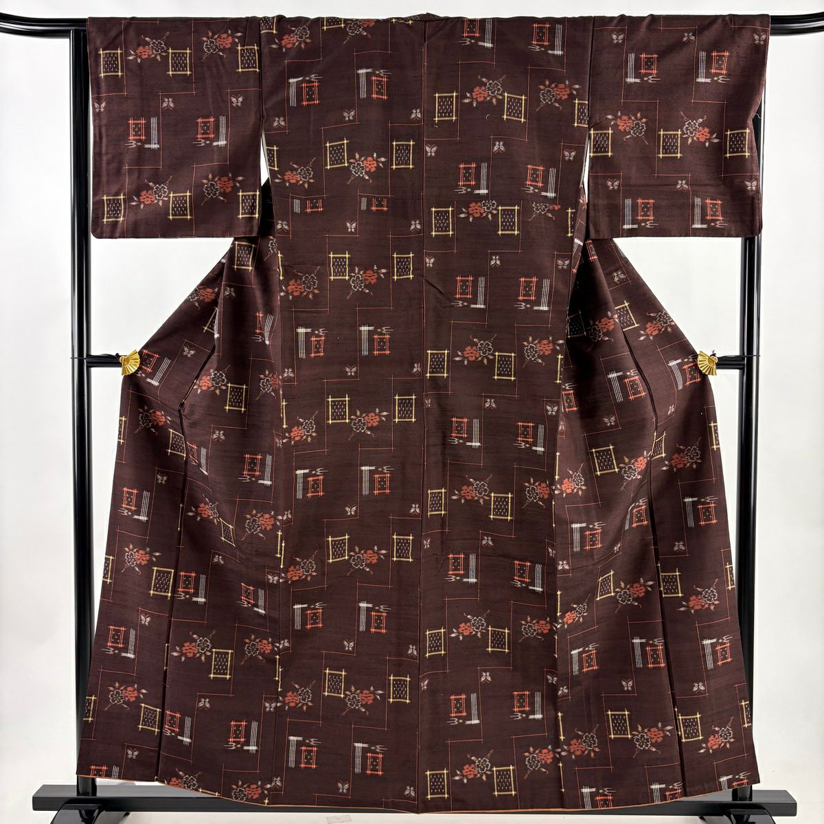 訪問着 身丈158cm 裄丈62.5cm S 袷 蔓帯 菊 金彩 小豆色 正絹 優品