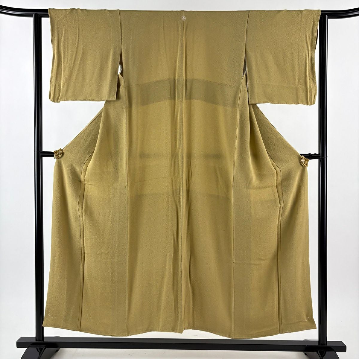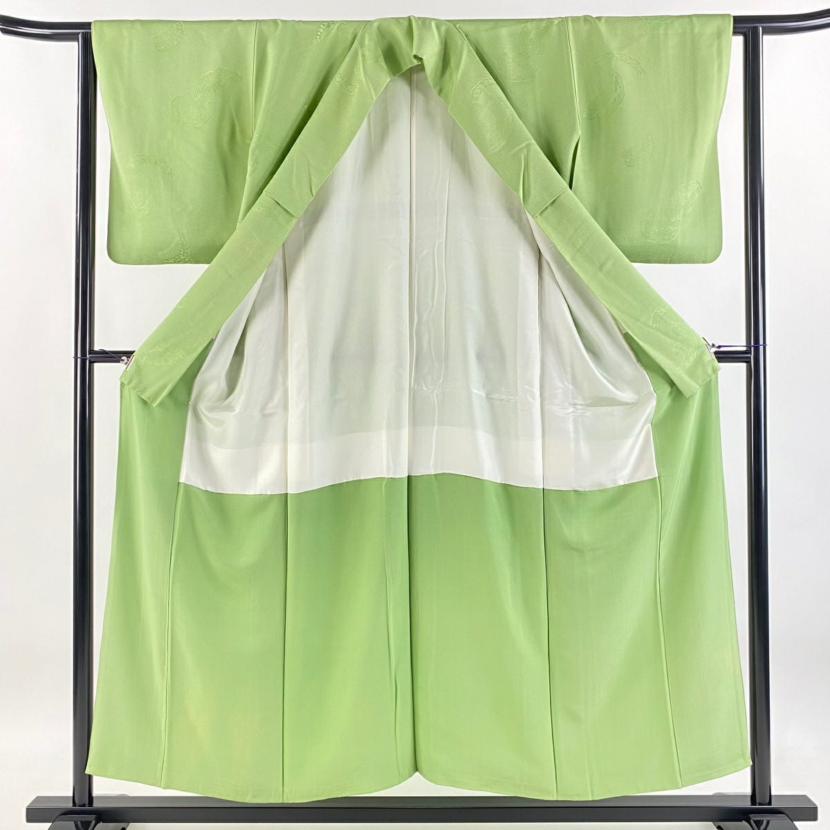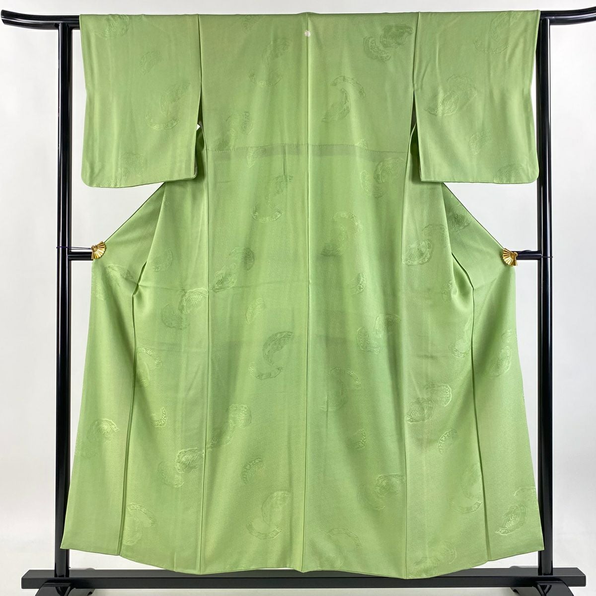 色無地 身丈154cm 裄丈62.5cm S 袷 地紋 黄緑色 正絹 優品 一つ紋