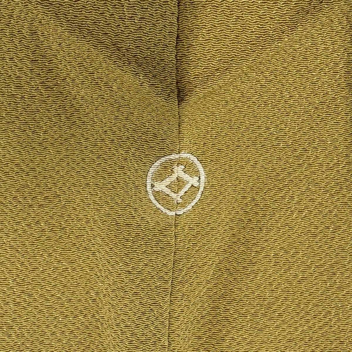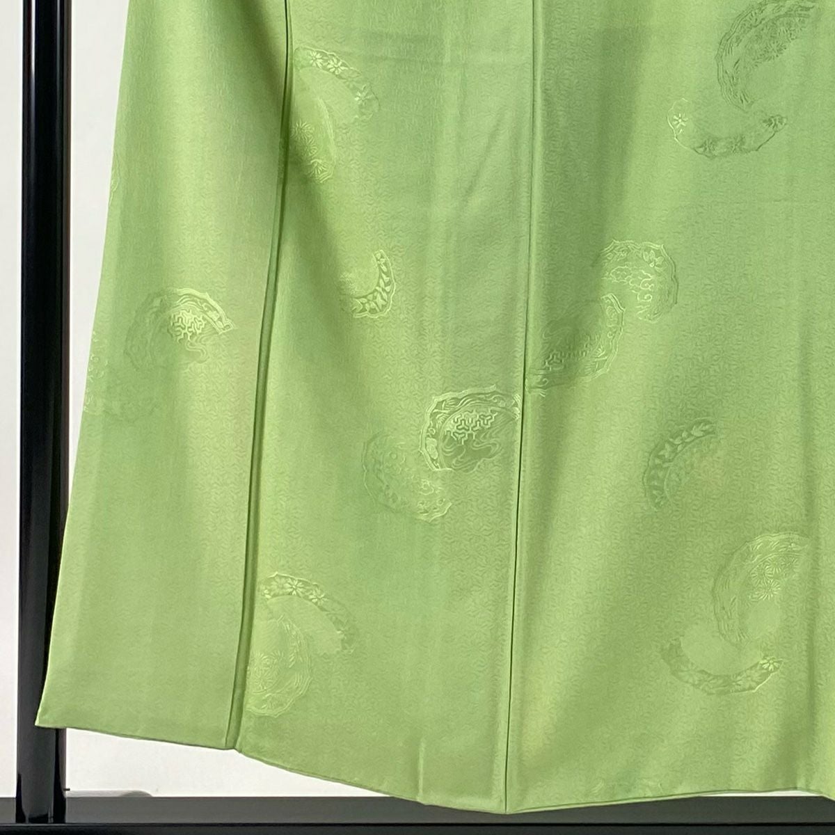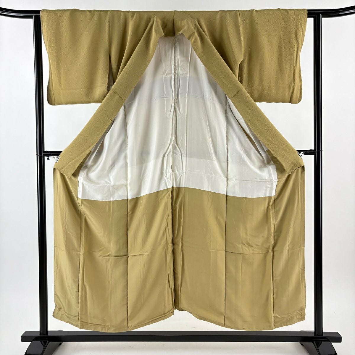 色無地 身丈154cm 裄丈62.5cm S 袷 地紋 黄緑色 正絹 優品 一つ紋