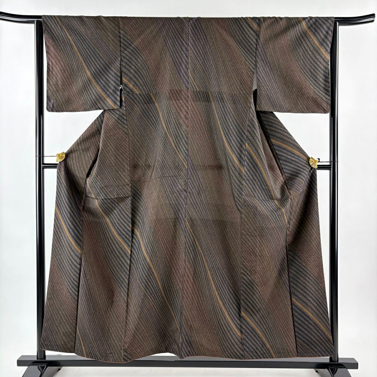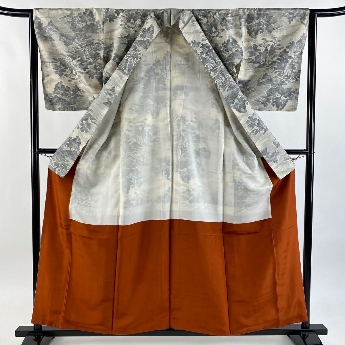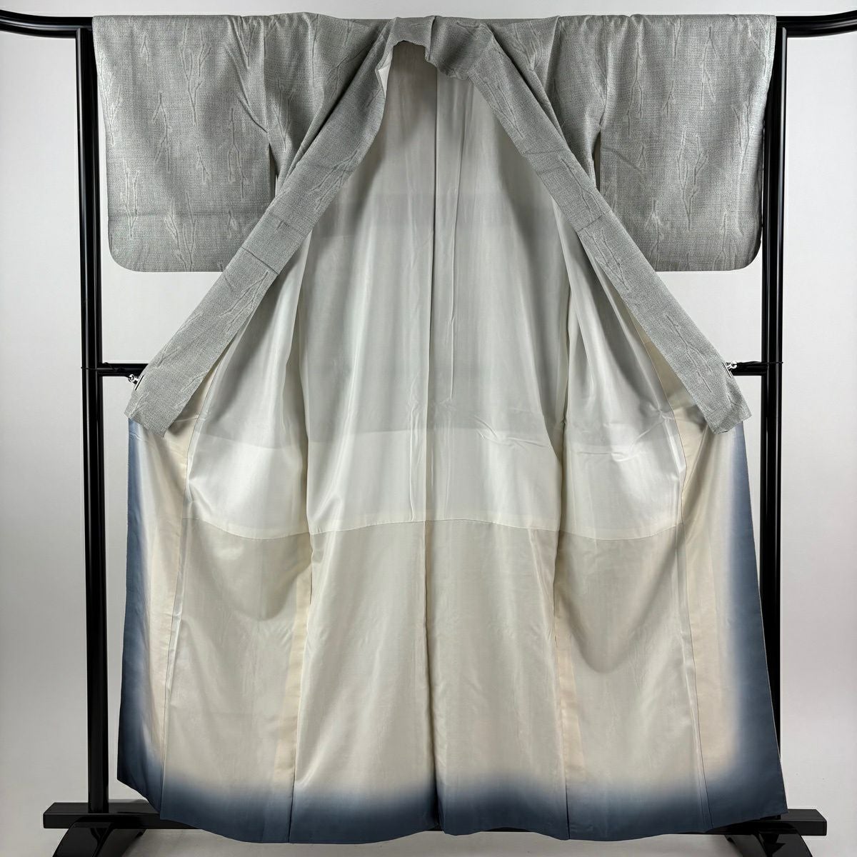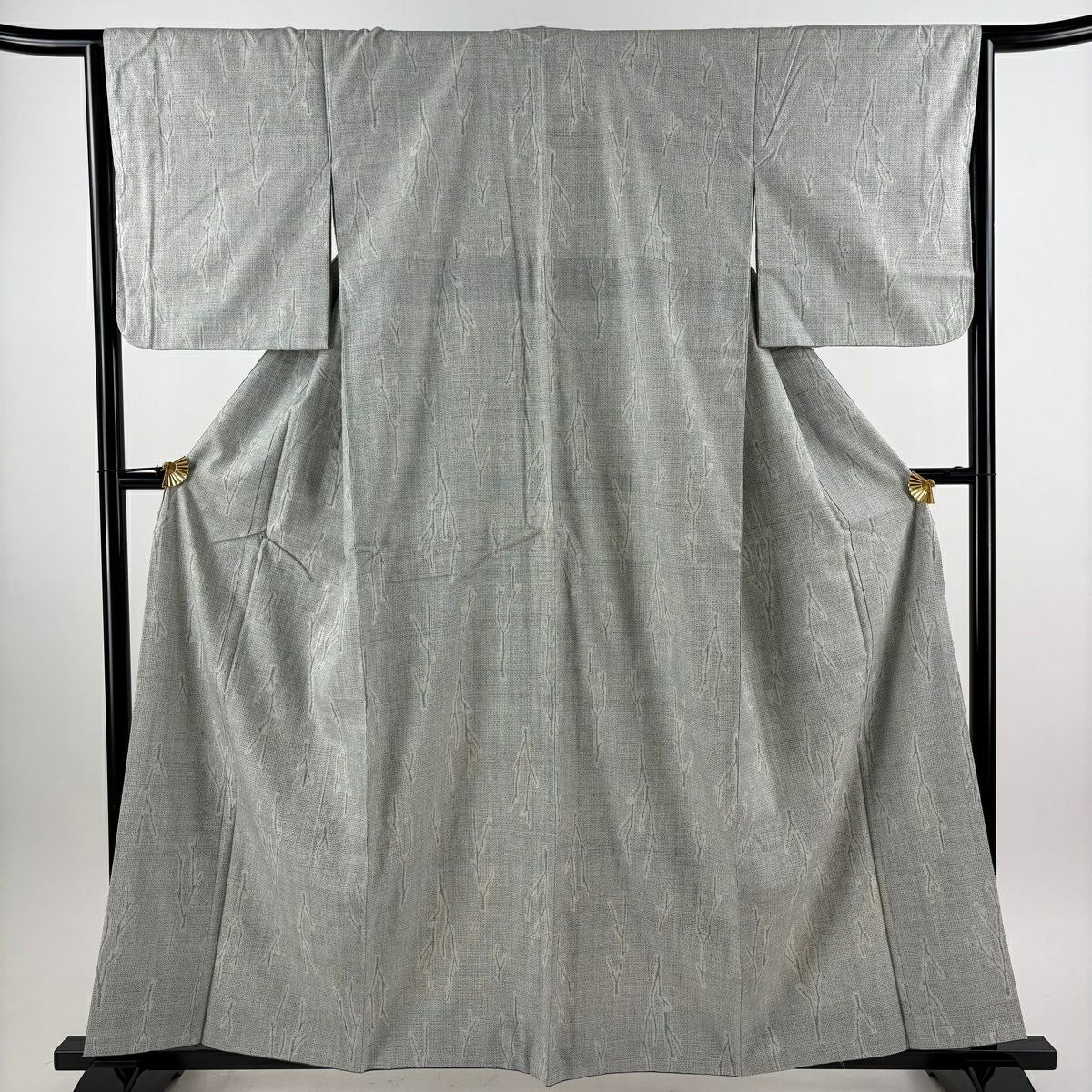 【在庫一掃】 紬 身丈157cm 裄丈63.5cm S 袷 樹木 灰色 正絹 優品