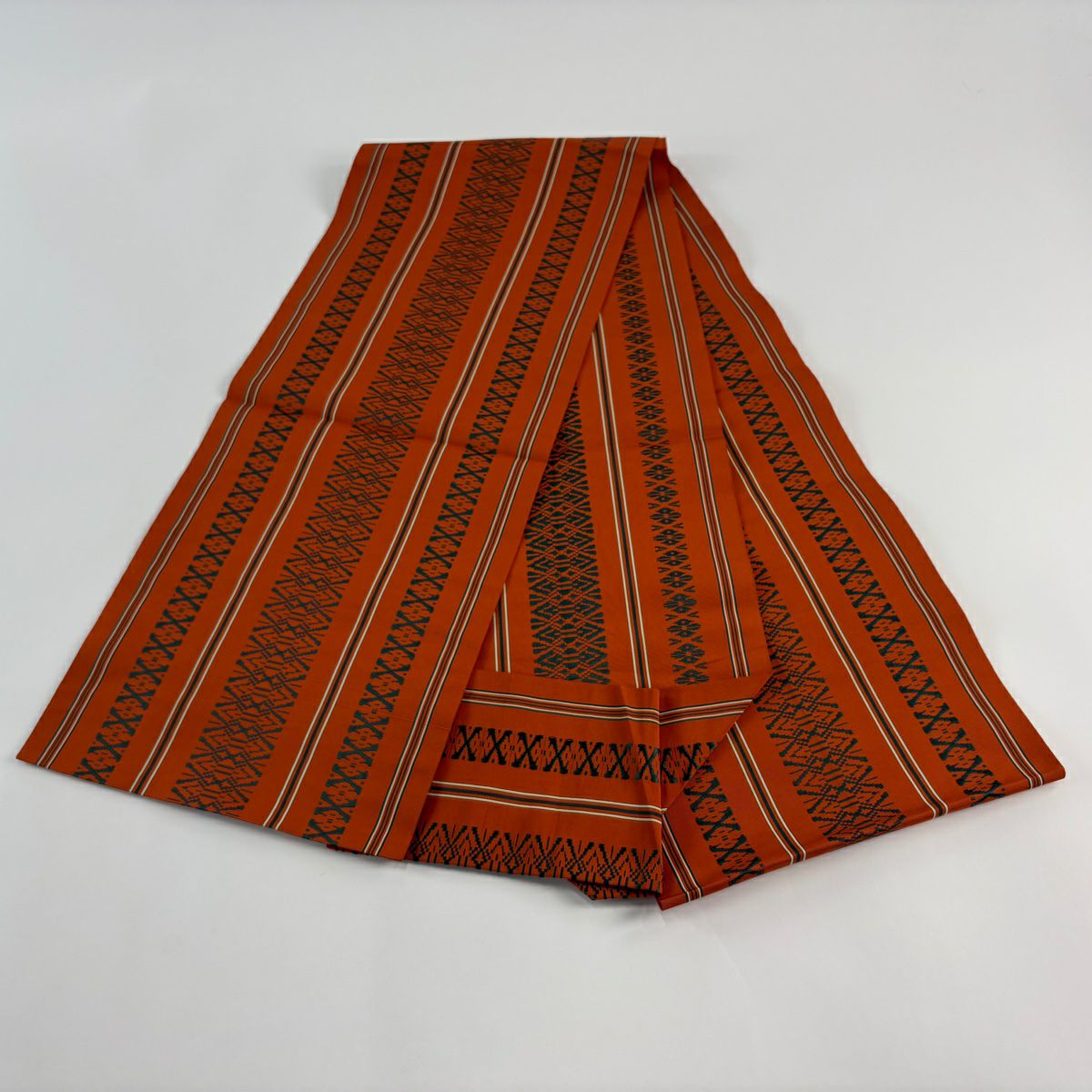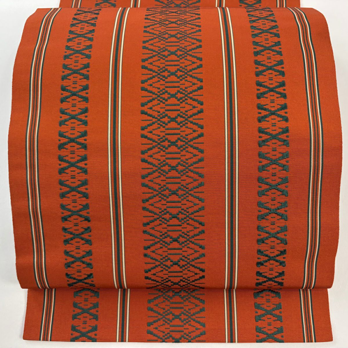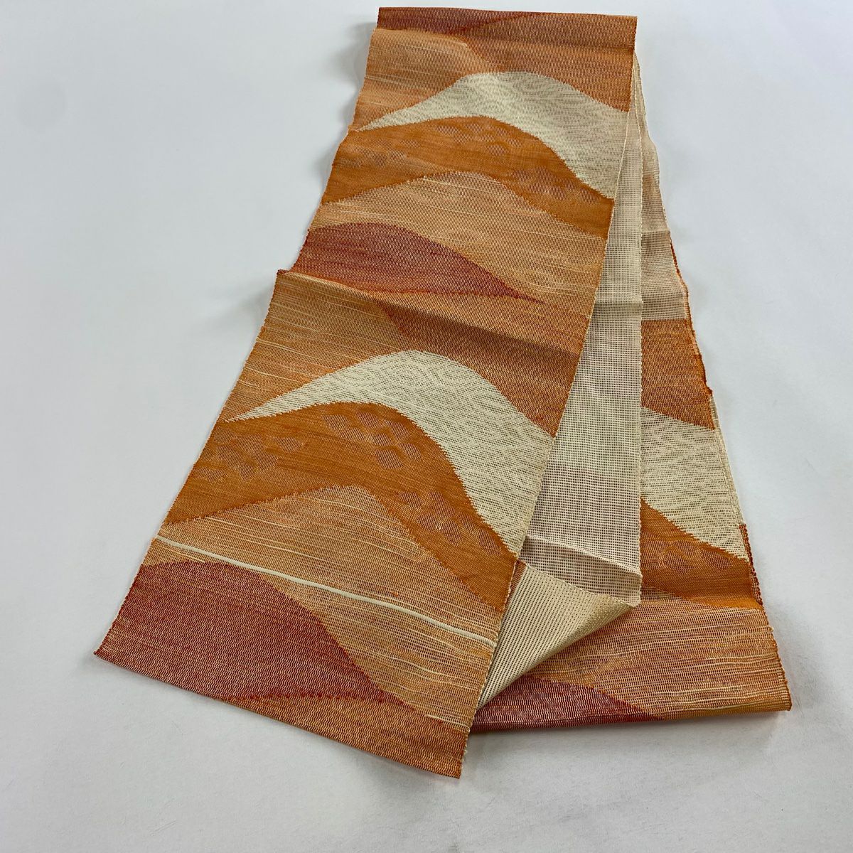 【在庫一掃】 名古屋帯 優品 夏帯 八寸名古屋帯 松葉仕立て 山並み オレンジ 正絹