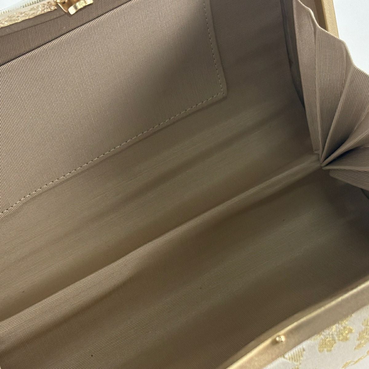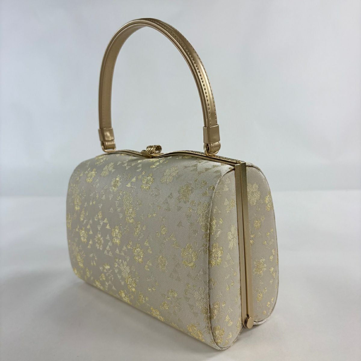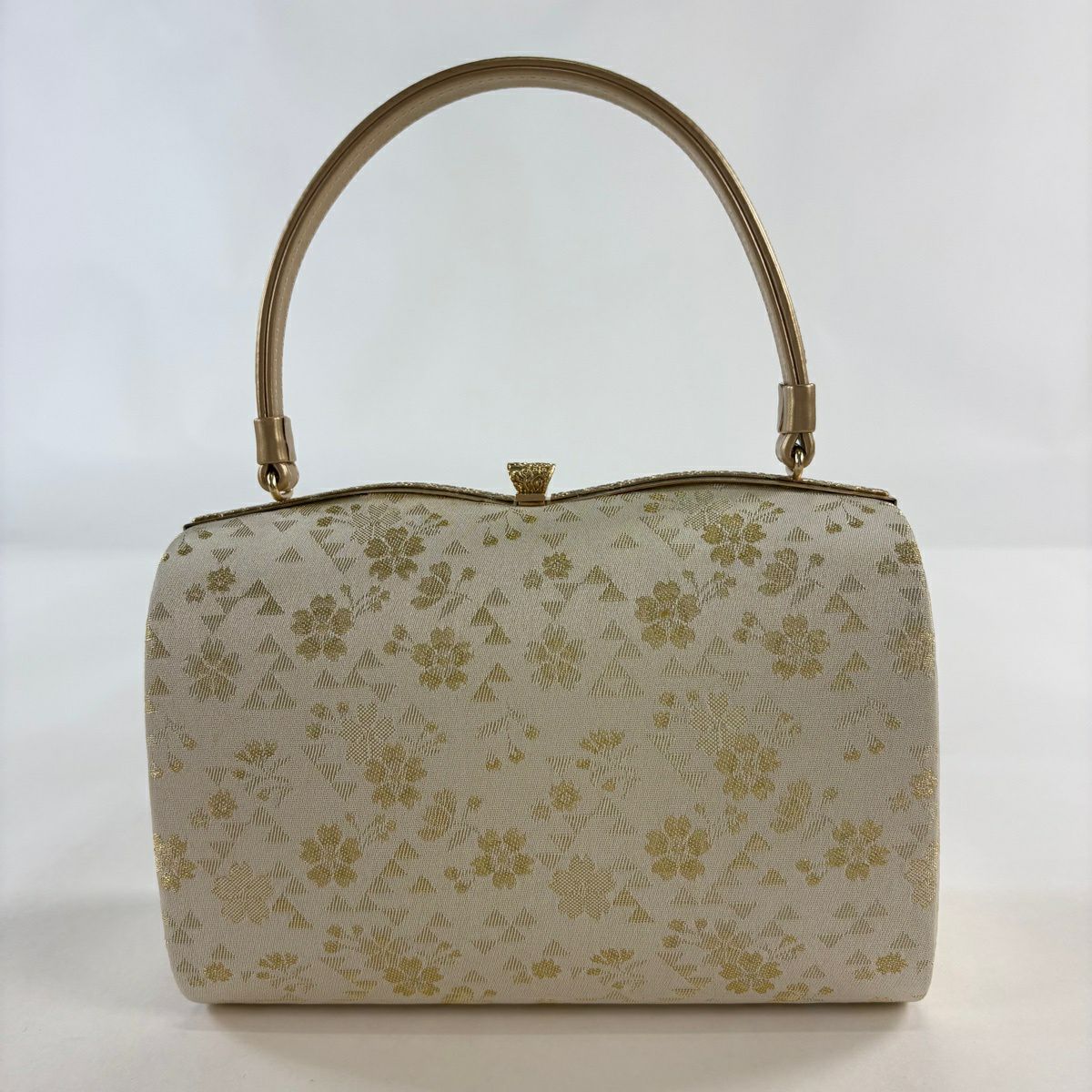 【美品】和装バッグ 優品 セミフォーマル 桜 鱗 金糸 ベージュ 和装小物