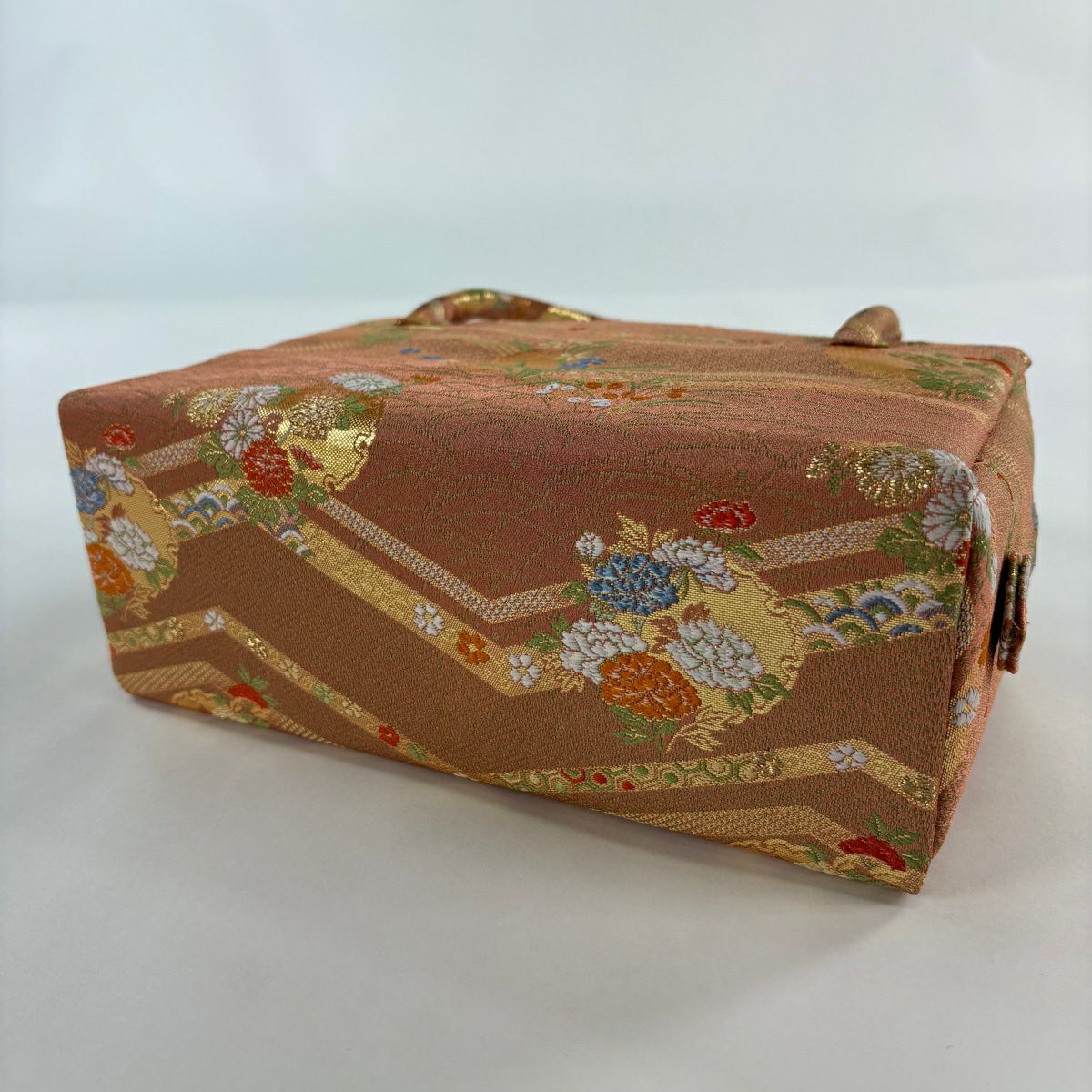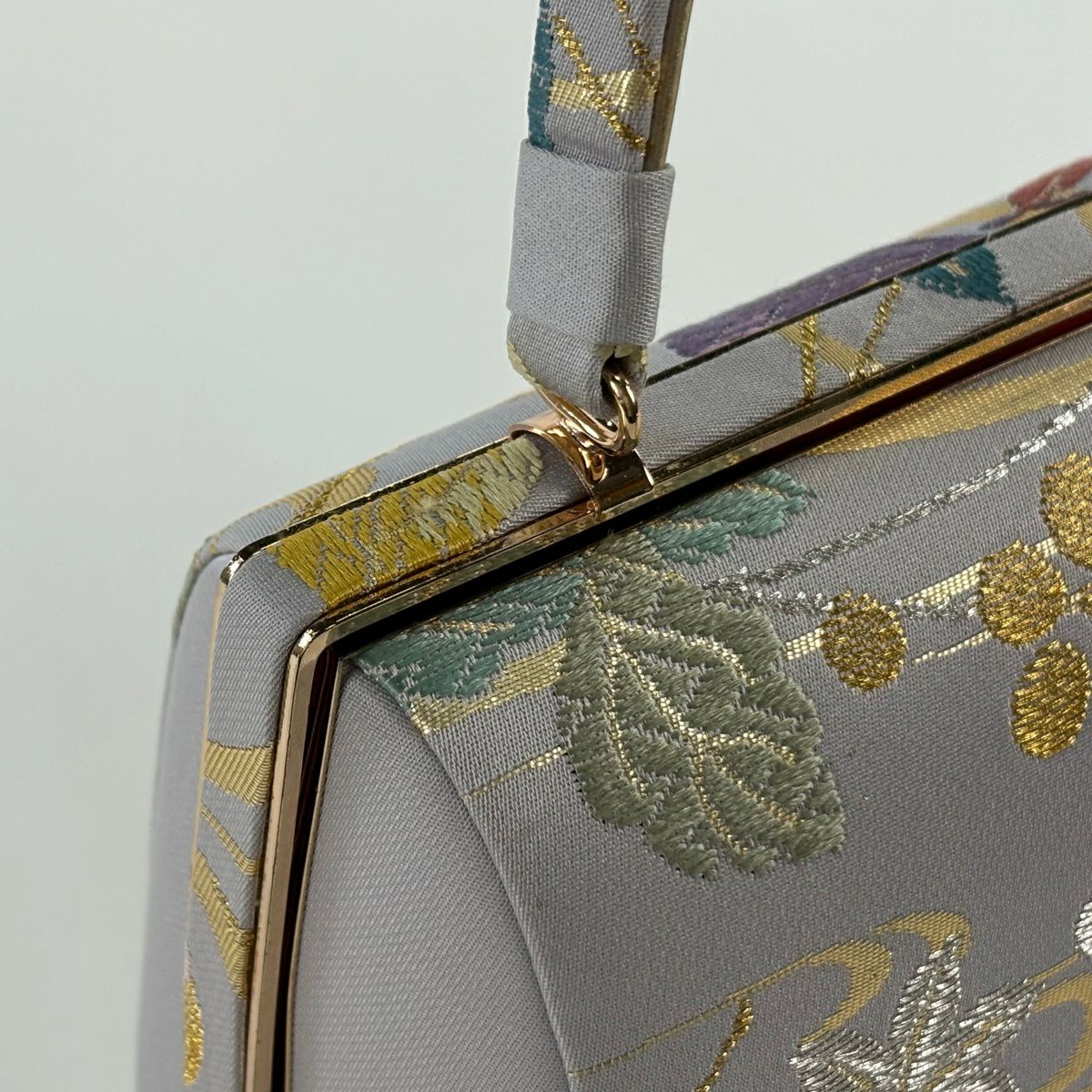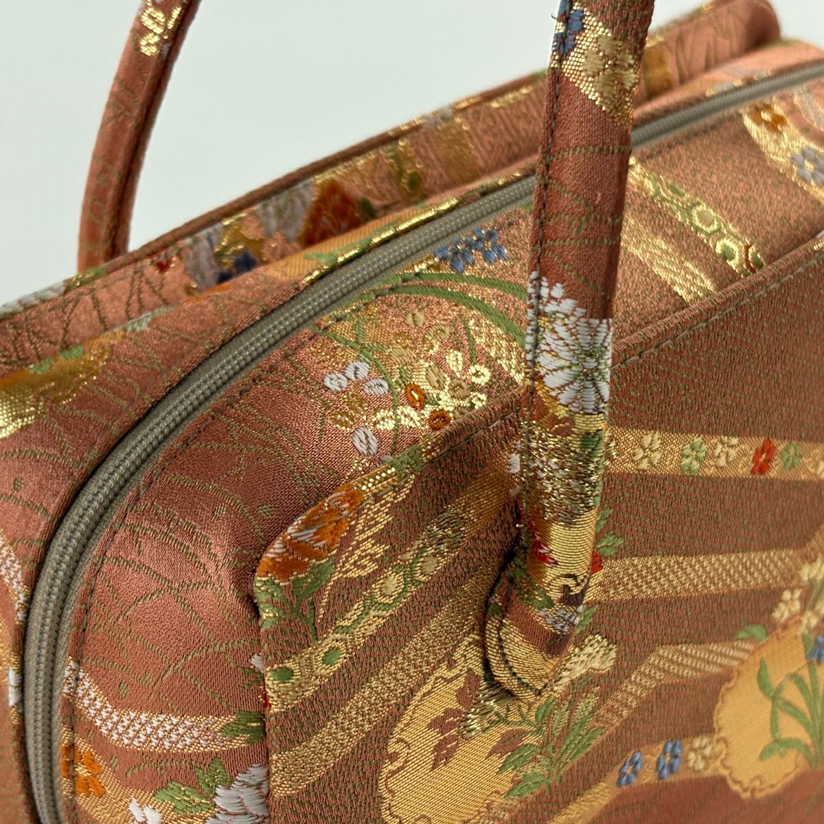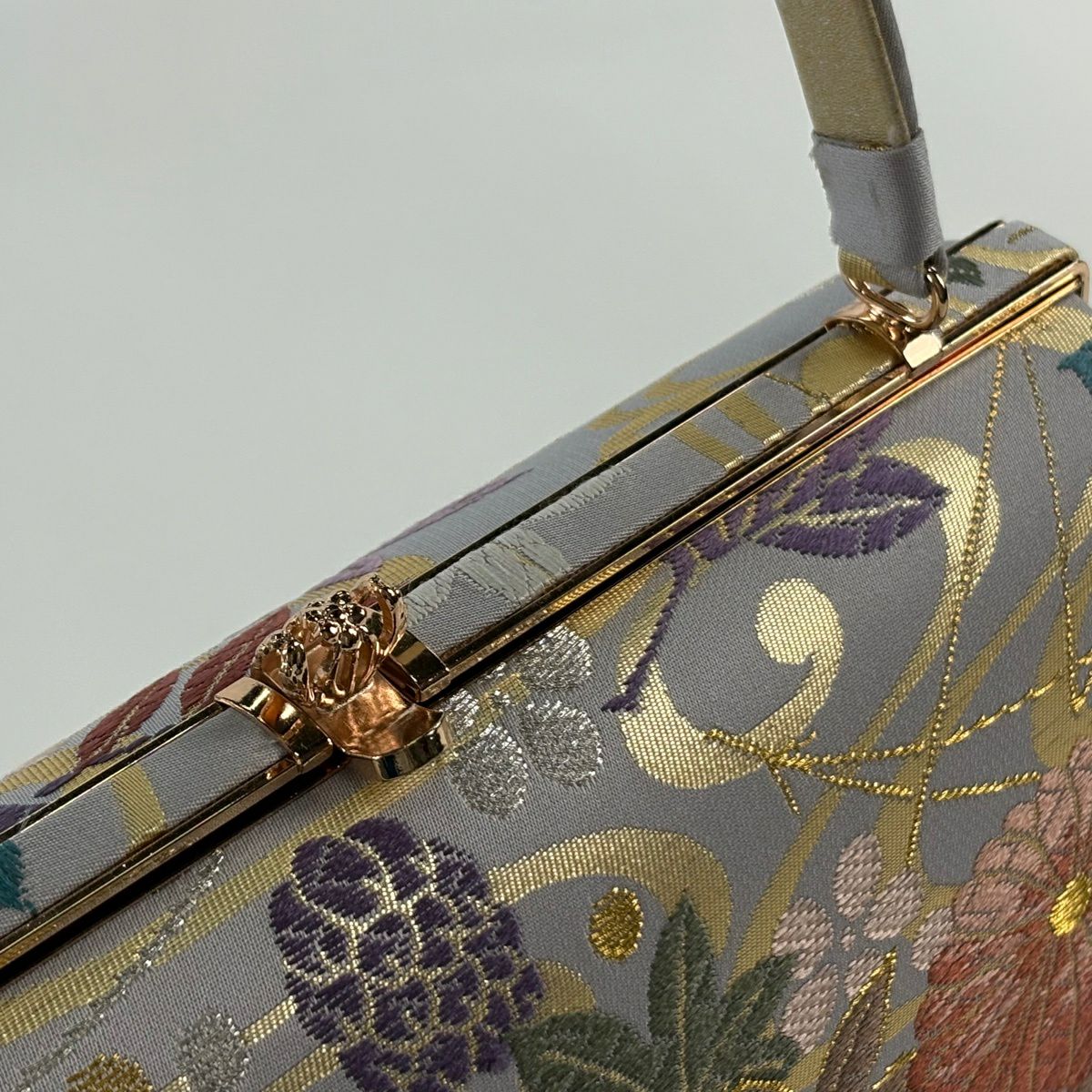【美品】和装バッグ 優品 セミフォーマル 桜 鱗 金糸 ベージュ 和装小物