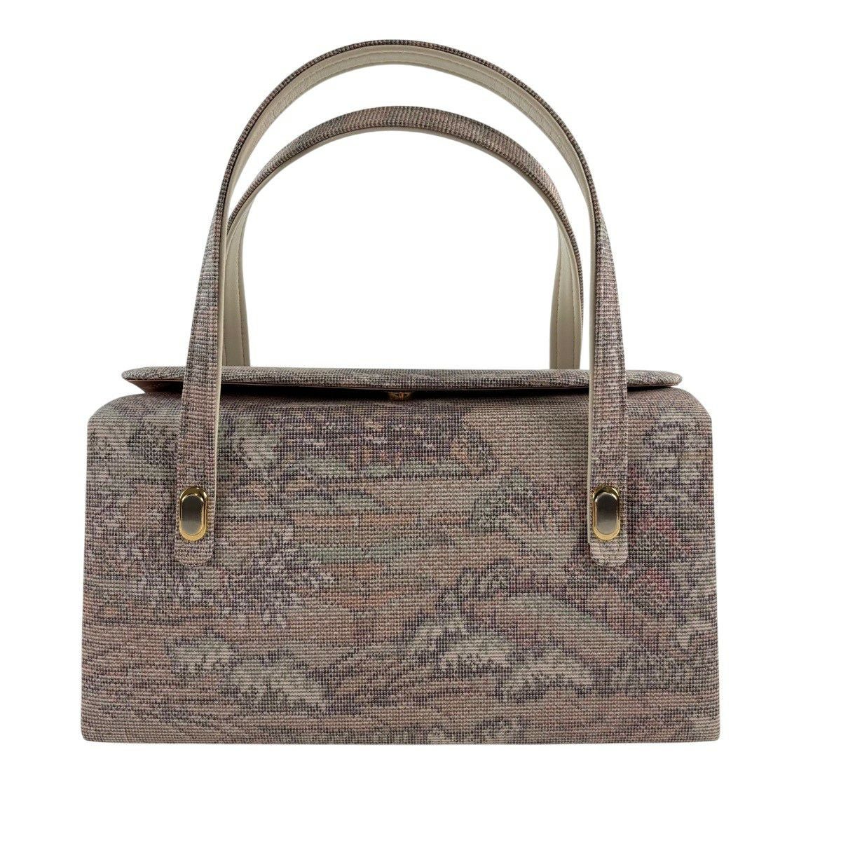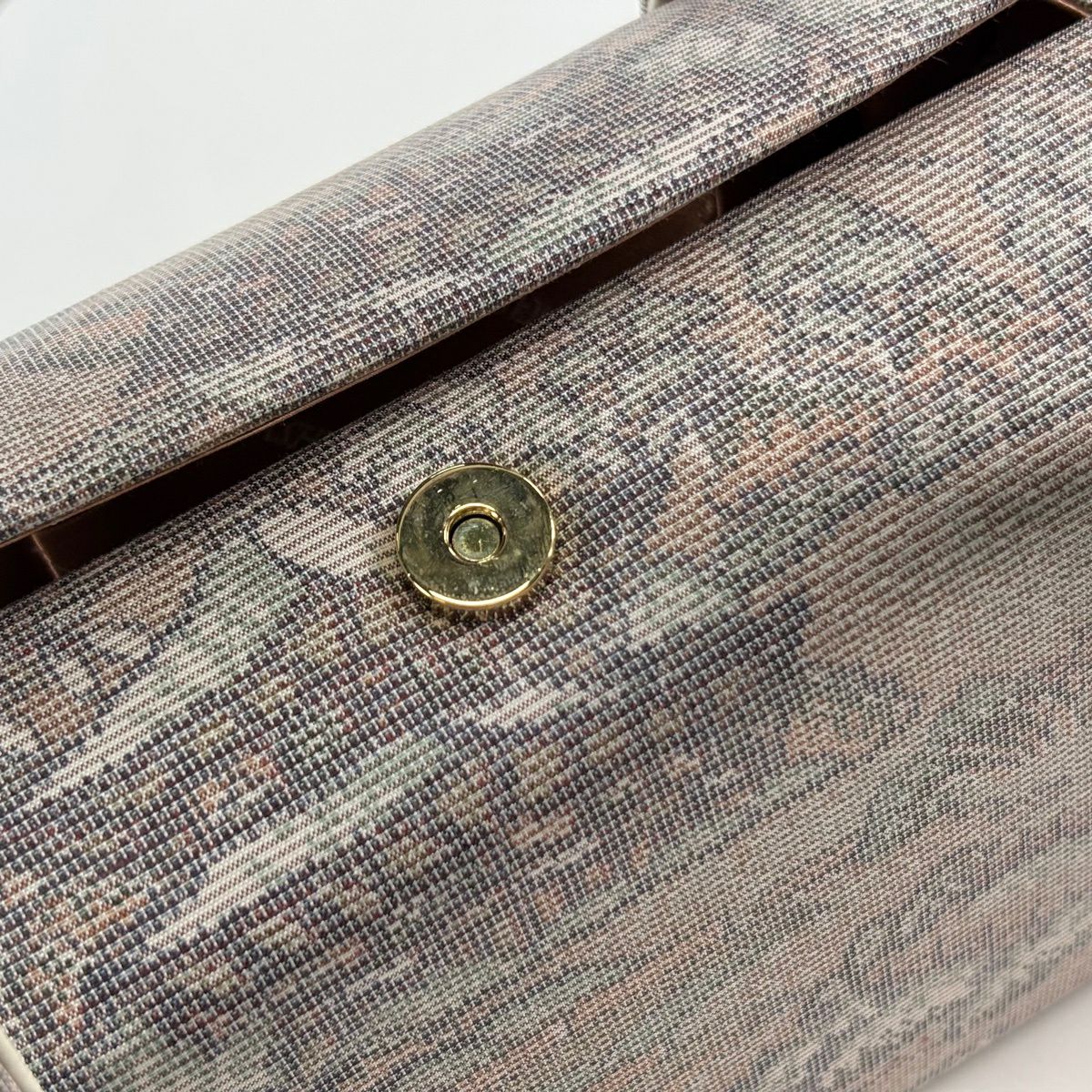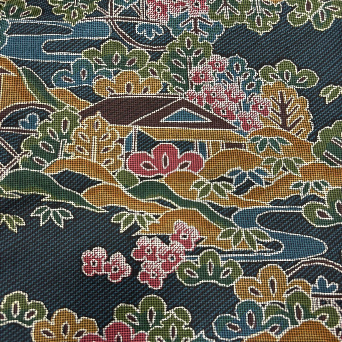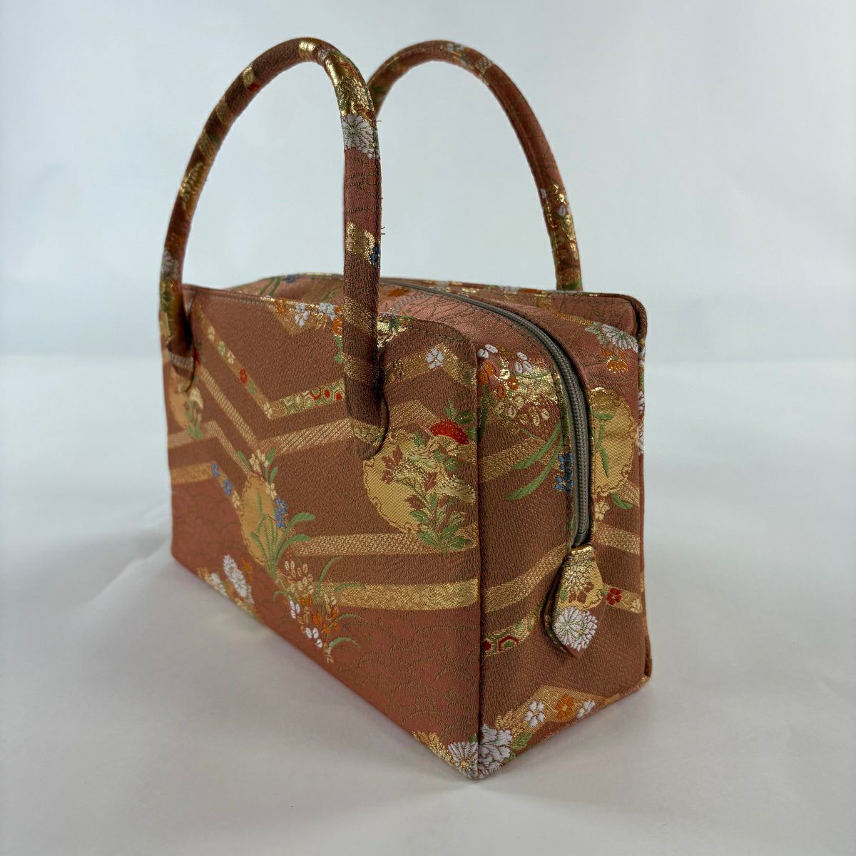 【美品】和装バッグ 優品 金鷲 カジュアル 風景 樹木 茶紫 正絹 和装小物